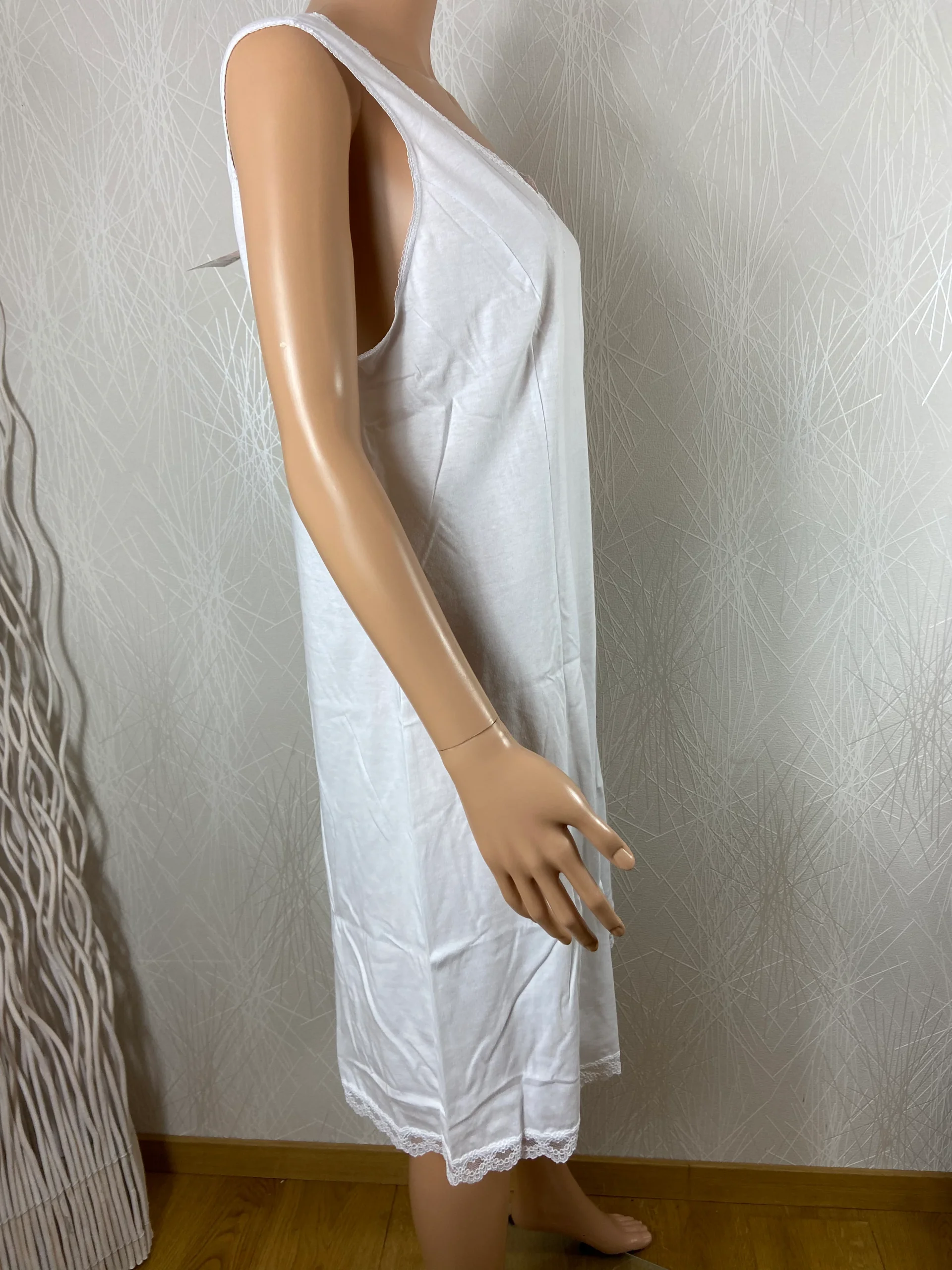 Nuisette longue coton blanc dentelle sans manches Tricotage Toulousain