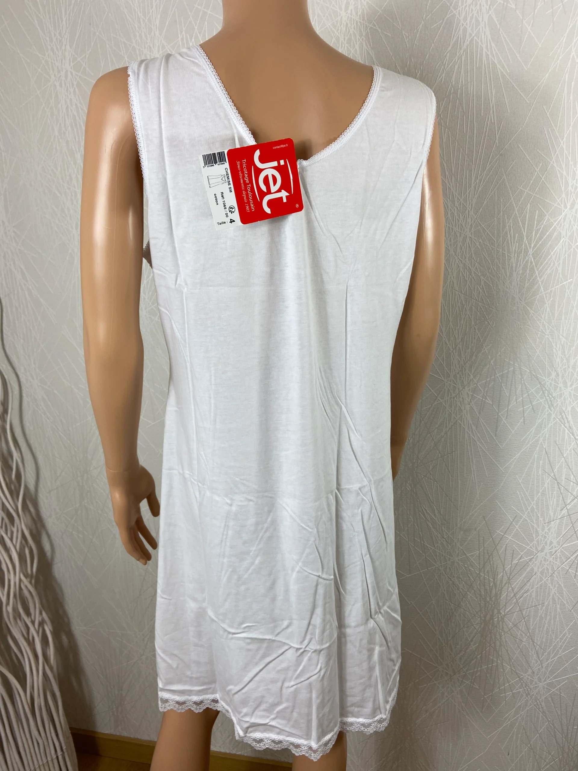 Nuisette longue en coton blanc de la marque Jet Tricotage Toulousain.