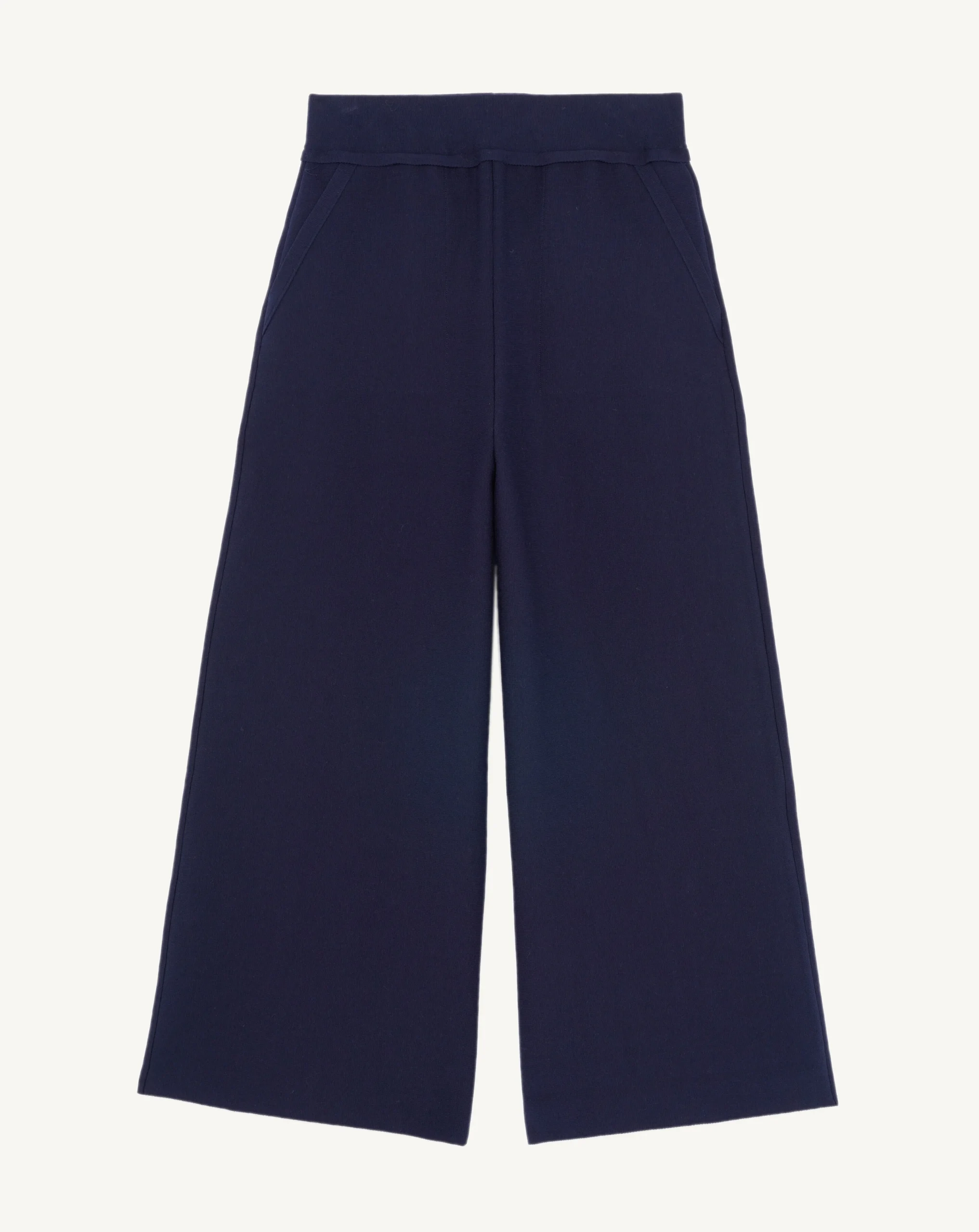 Pantalon à coupe ample et courte. Modèle en maille de coton légère. – Pantalon 100% coton– Pantalon pour femme– Coupe ample– Longueur 7/8ème (95 cm)– Se porte à la taille– Ceinture élastiquée – Tricot en maille Milano, dense et structuré – 2 poches avant – 2 poches plaquées arrière