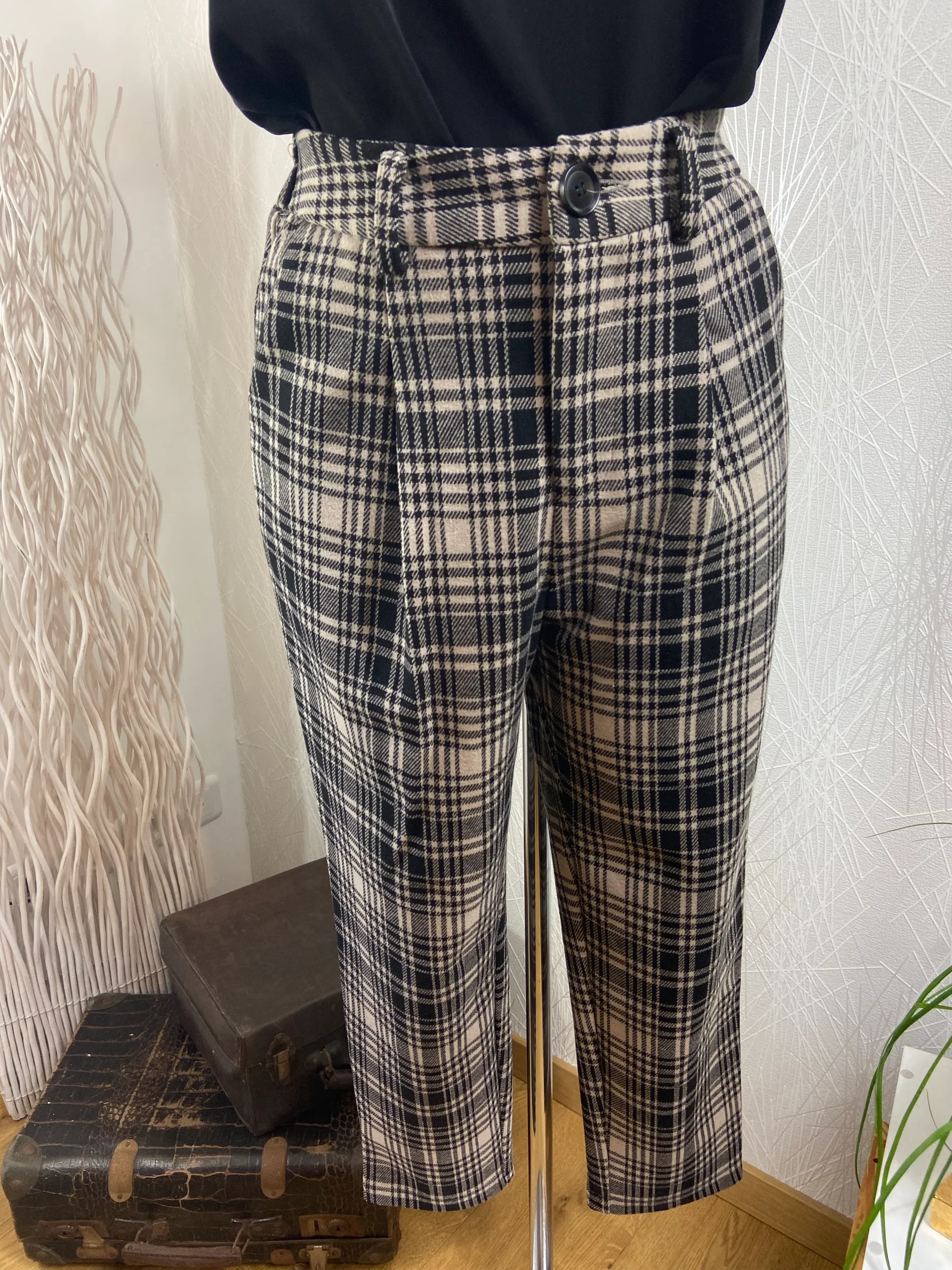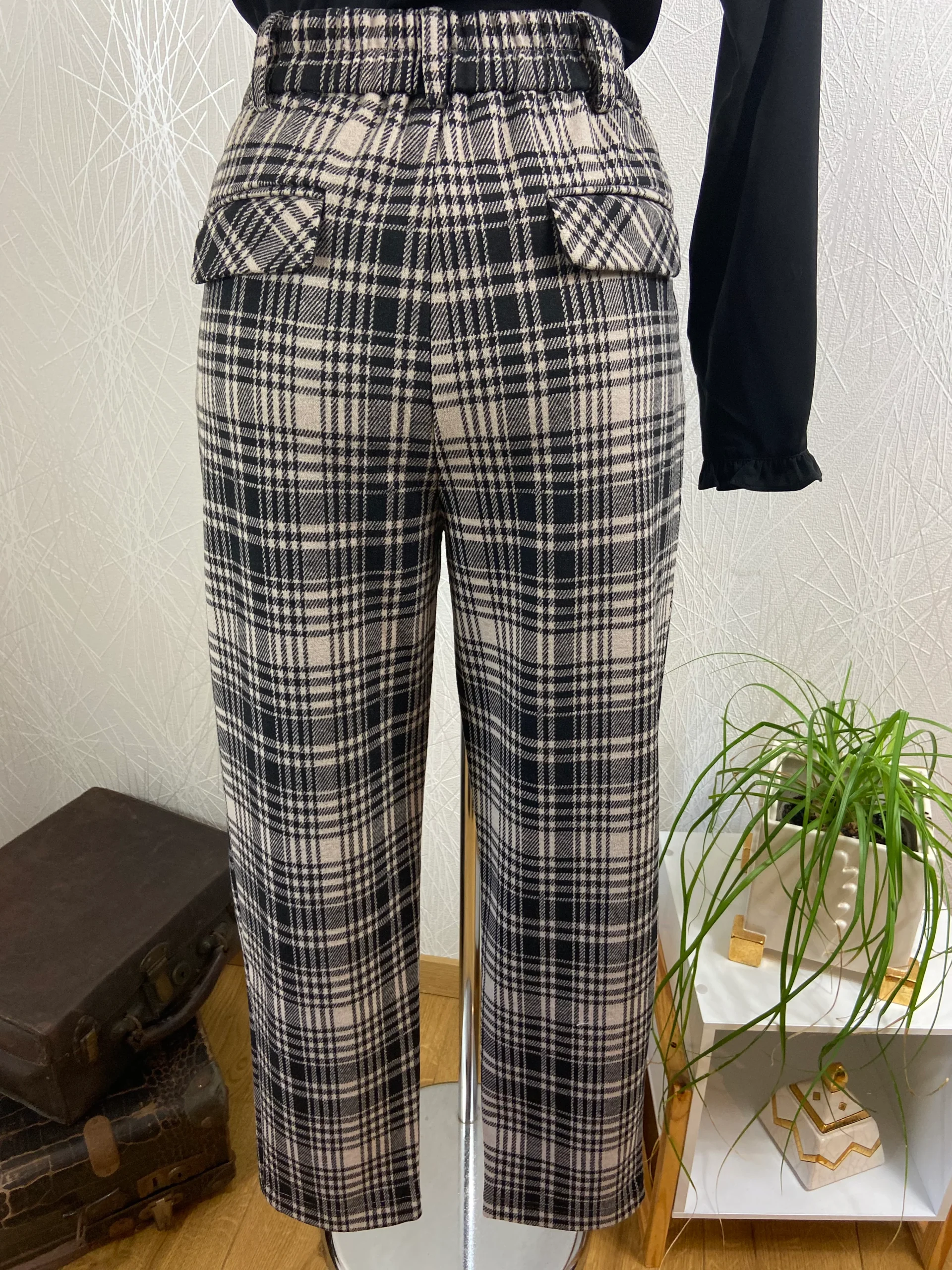 Pantalon pour femme 7/8eme taille haute de la marque See U Soon. Coupe droite, taille haute élastique, avec deux poches sur les côtés et deux fausses poches à rabats à l’arrière et passants pour ceinture. Largeur taille 37 cm, largeur hanche 49 cm, longueur 93cm, longueur de l’entrejambe 63 cm. 65 % coton – 30 […]