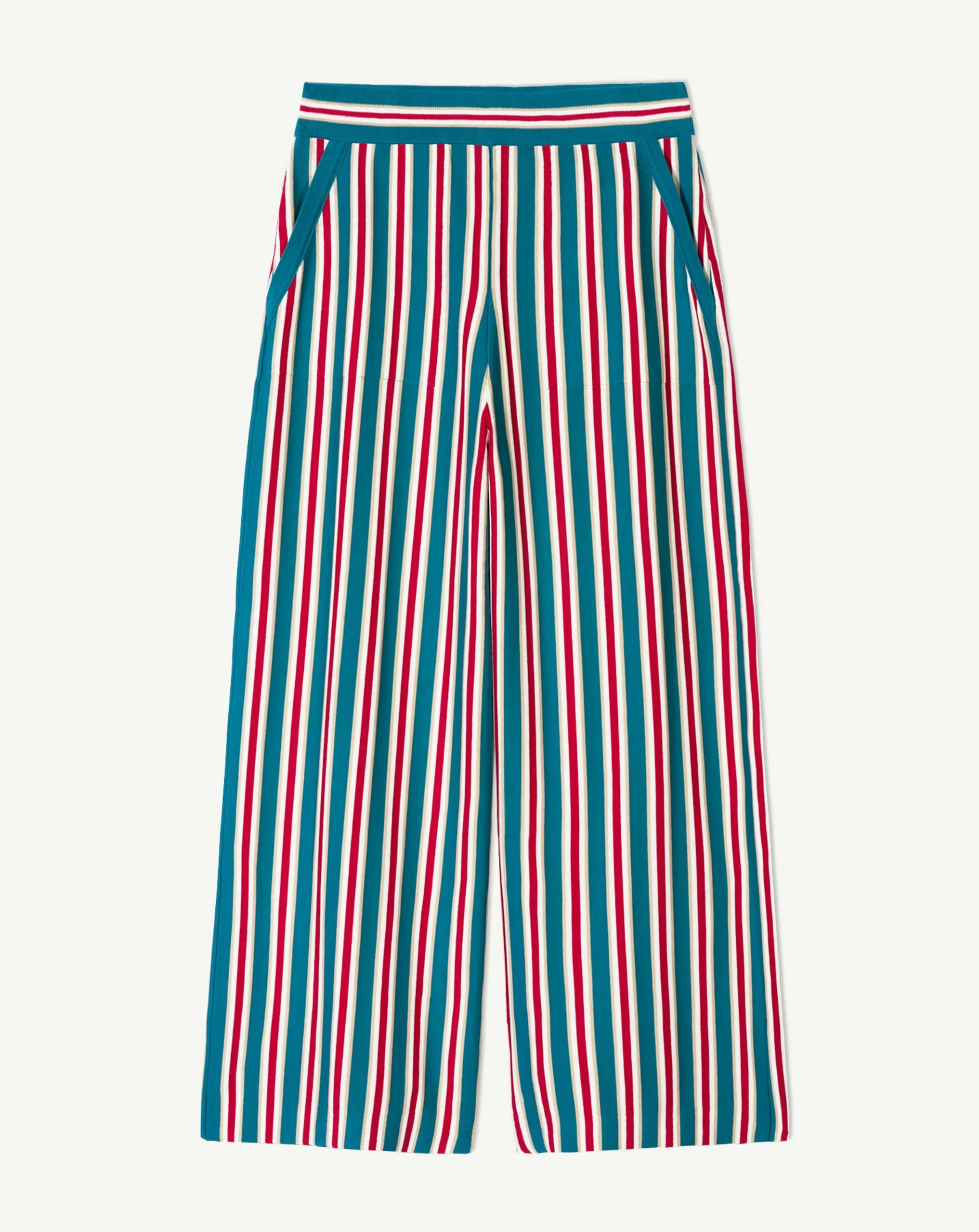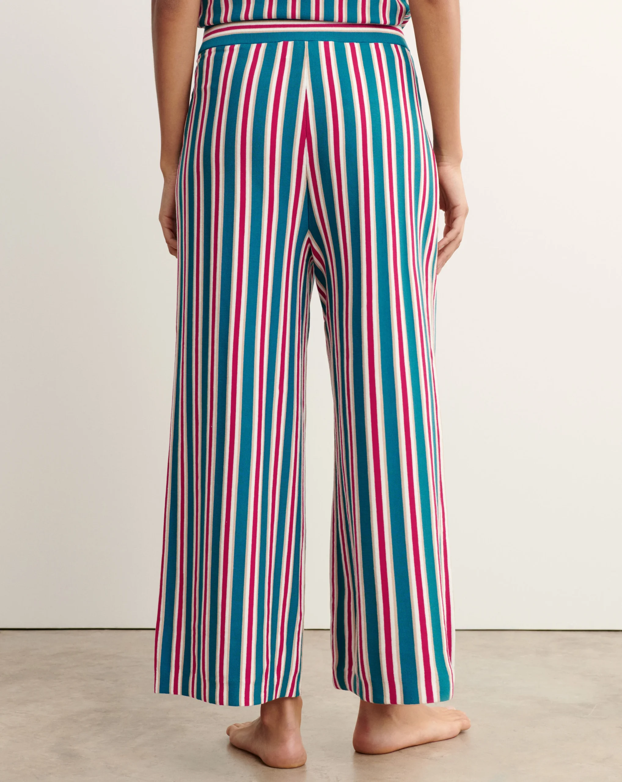 Pantalon en coton à rayures. Modèle à coupe droite et ample, longueur 7/8ème. -Pantalon 100% coton-Douceur naturelle et respirante, au toucher frais et léger, idéal pour un confort quotidien-Pantalon femme-Coupe droite et ample -Longueur 7/8ème -Se porte à la taille-Taille élastiquée-Motif à rayures bicolores