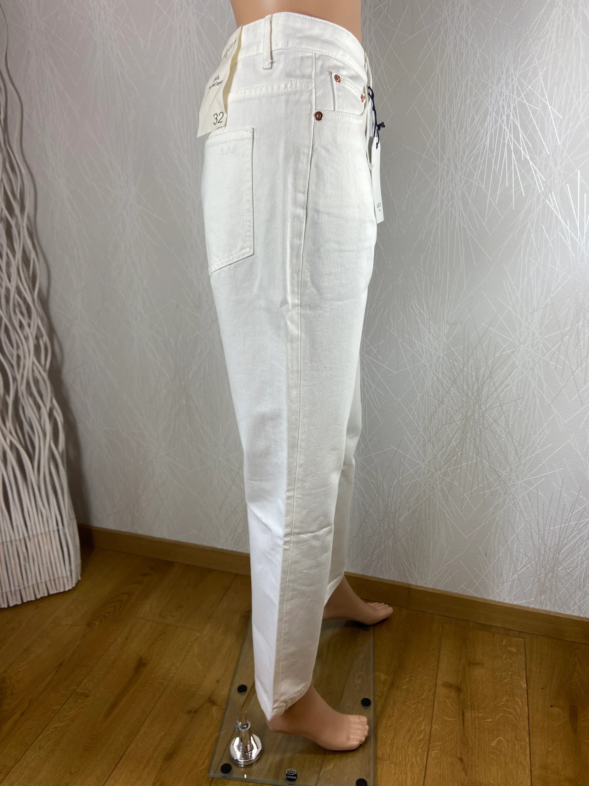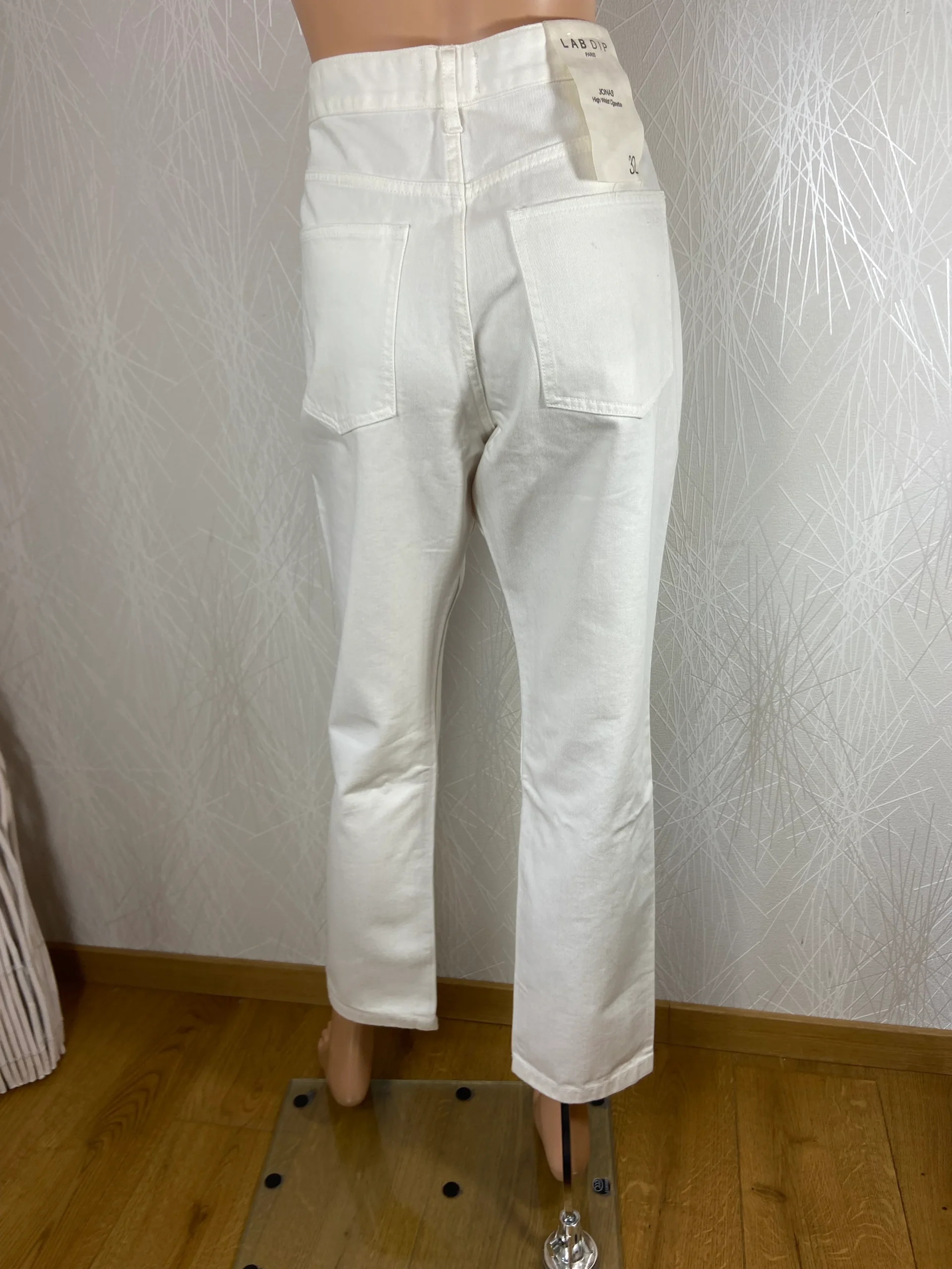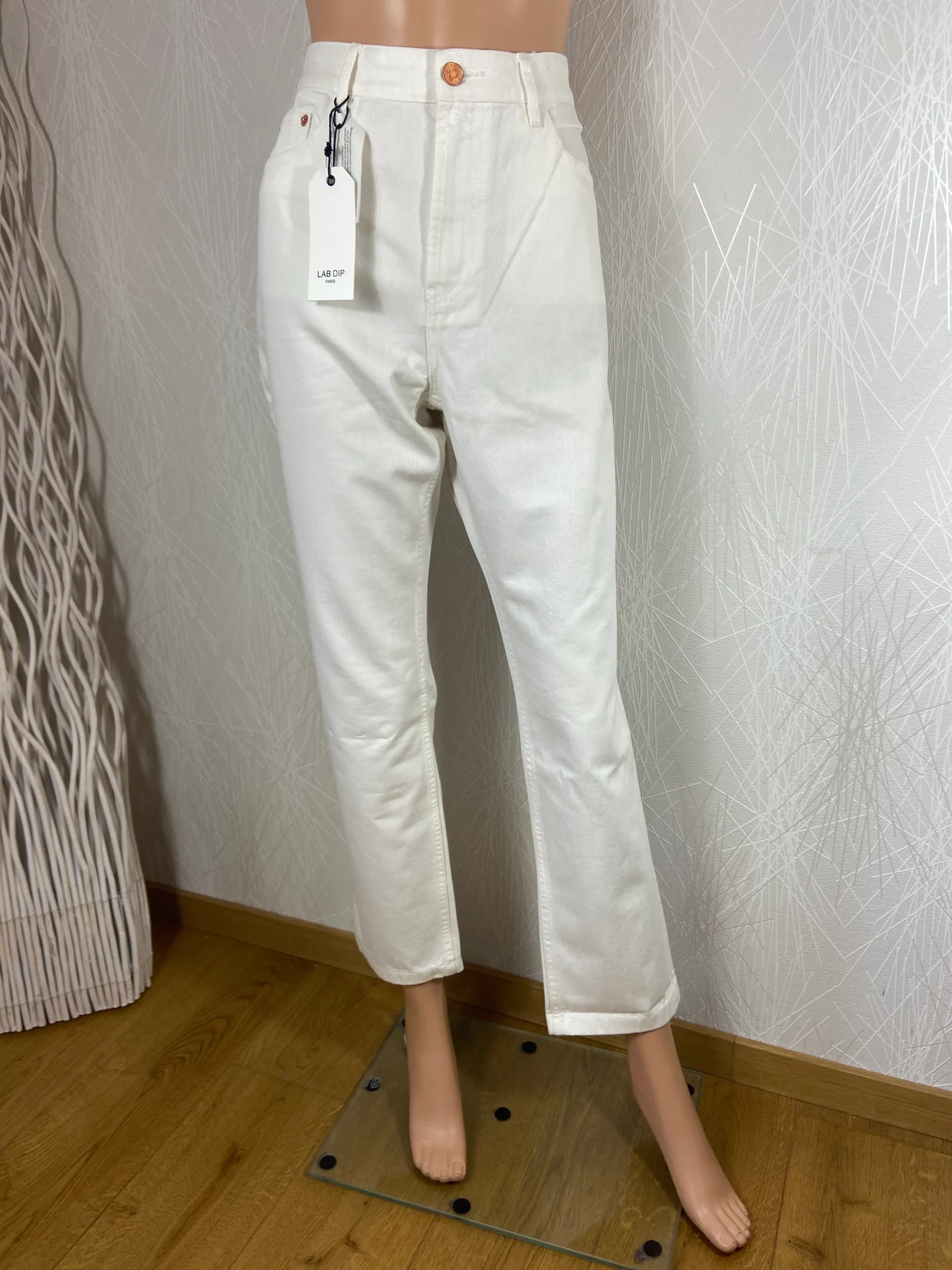 Pantalon coton denim blanc taille haute coupe droite modèle Jonas Argile Lab Dip