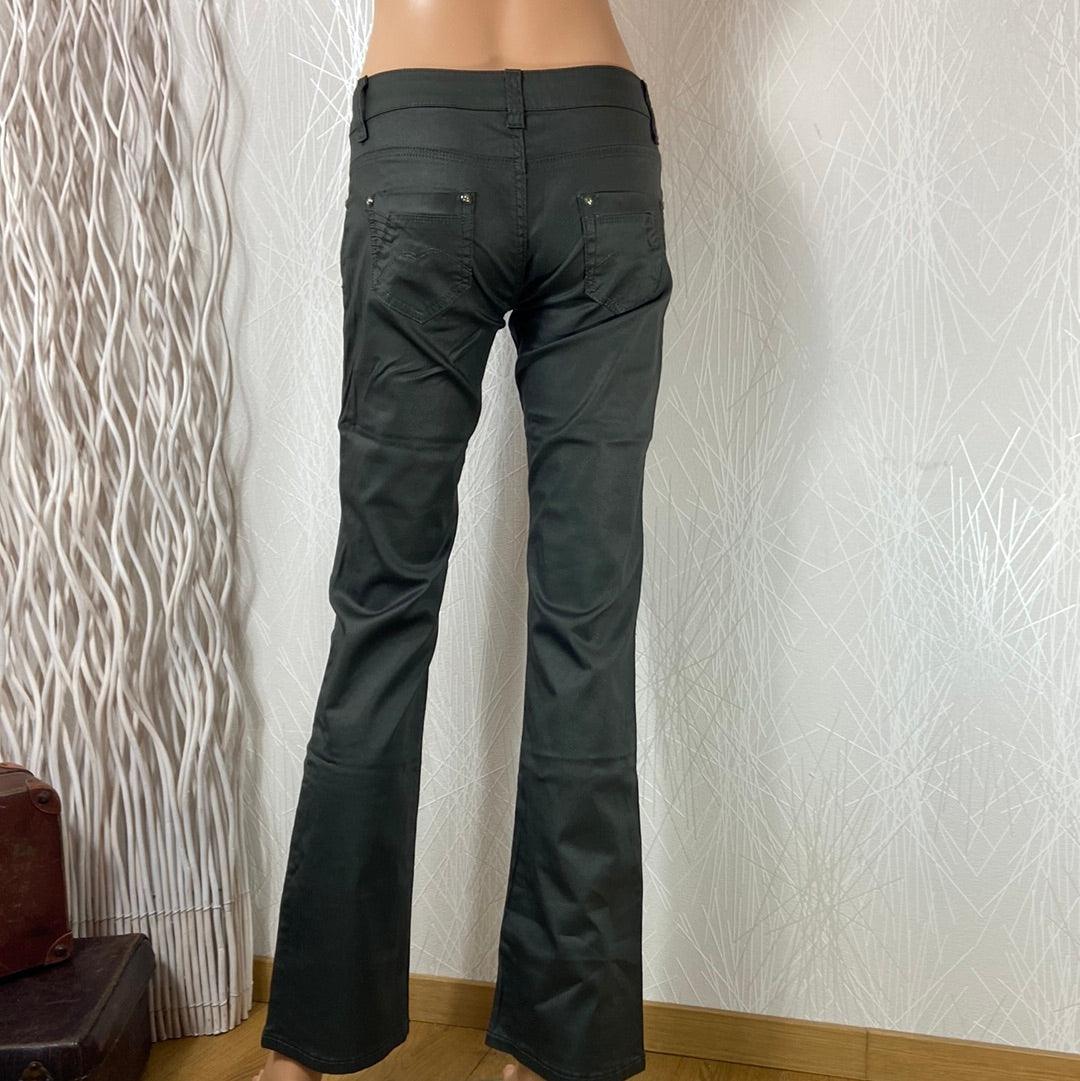 Dimensions Taille 34 : Tour de taille : 68 cm ; longueur entrejambe : 79 cm ; longueur : 100 cm ; largeur bas de jambe : 21 cm.