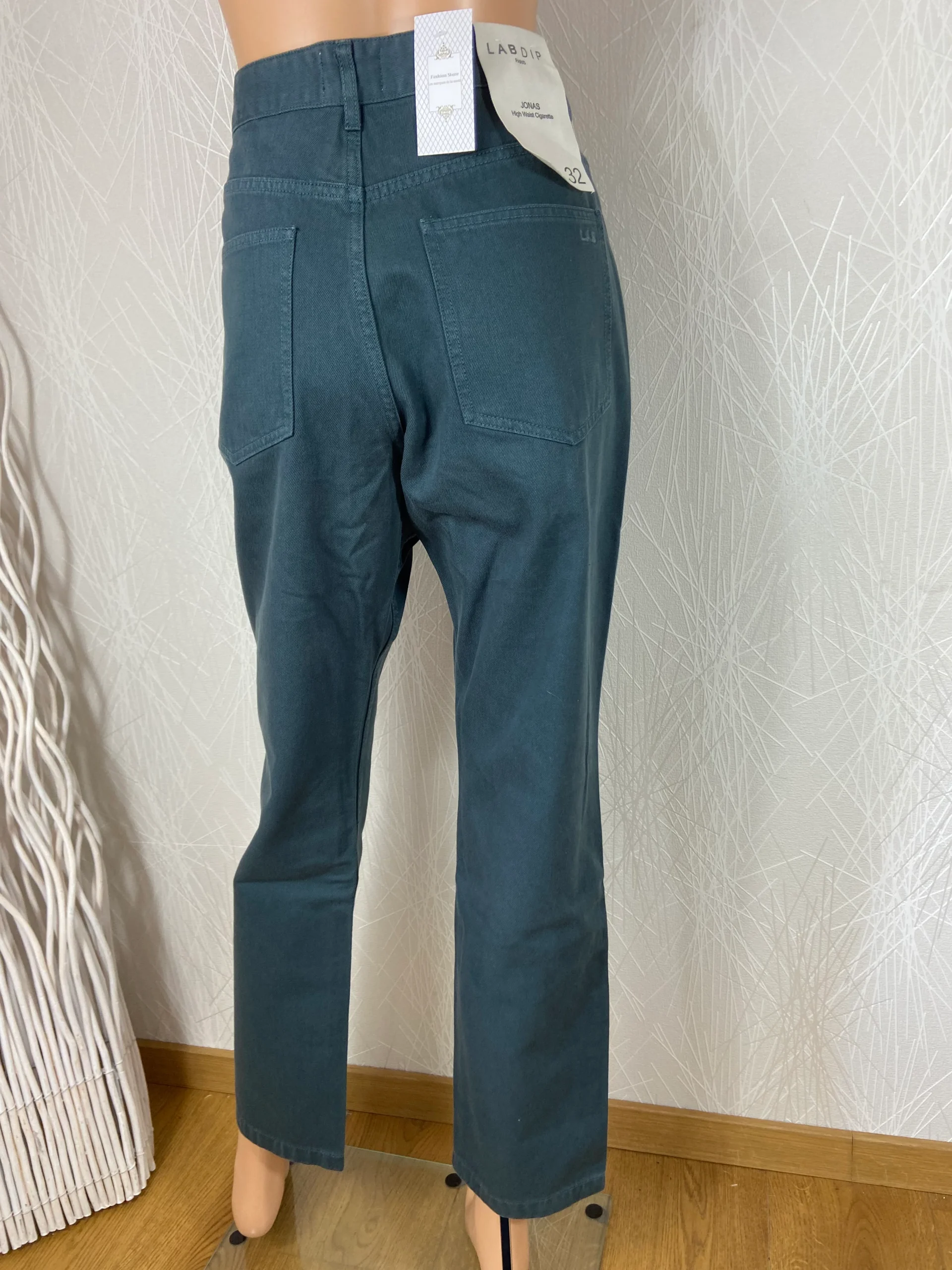 Pantalon coton vert mastic taille haute coupe droite modèle Jonas Lab Dip