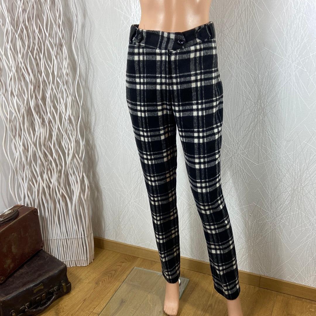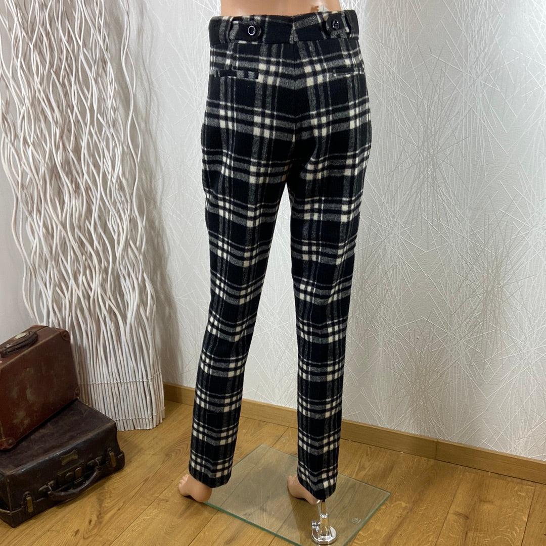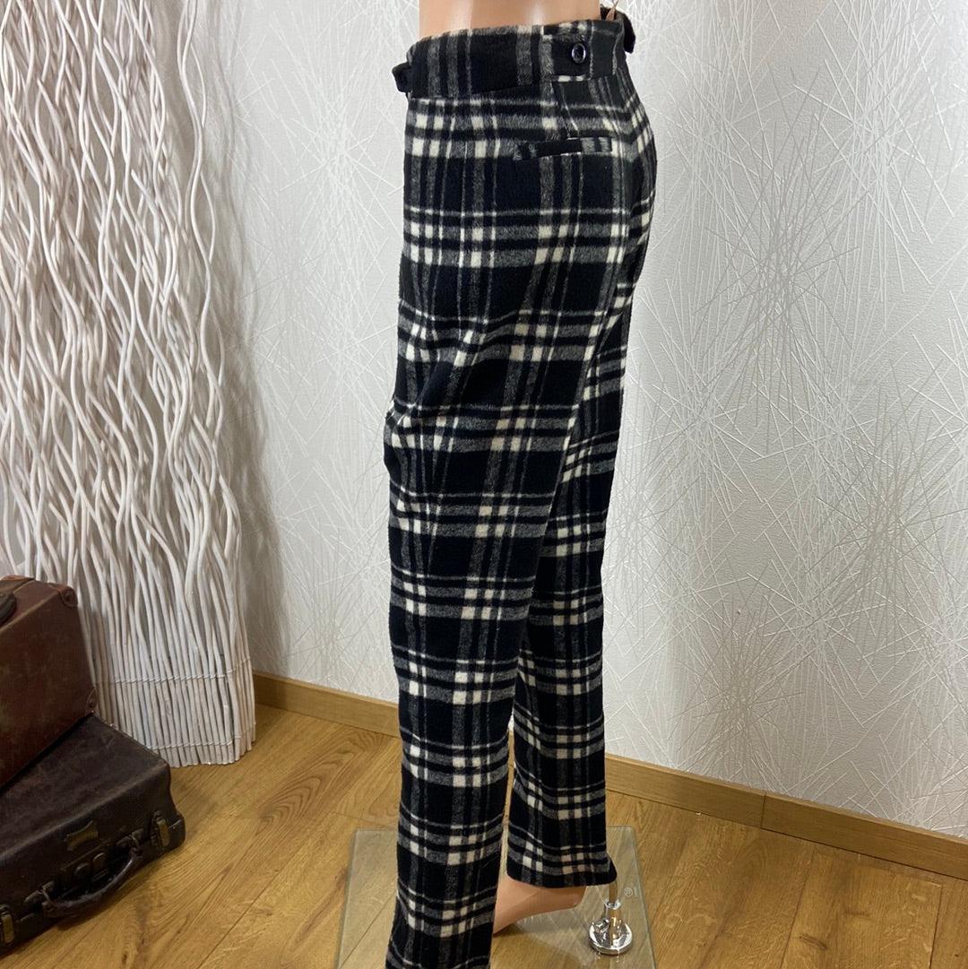 Pantalon de créateur laine cachemire doublée carreaux Tabala Paris