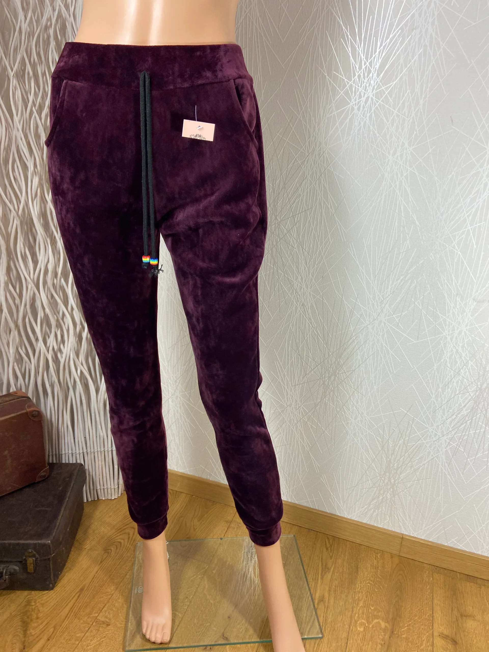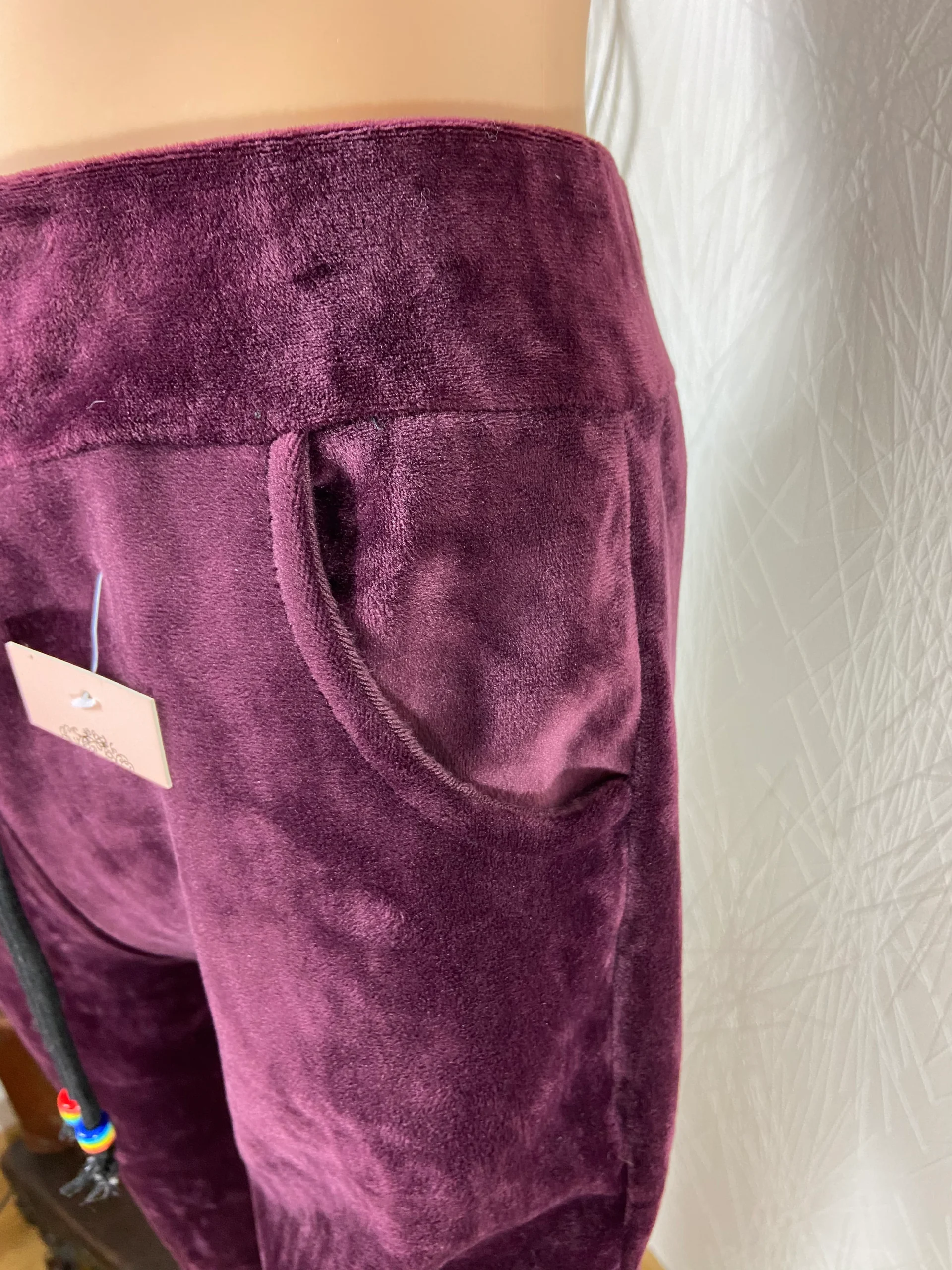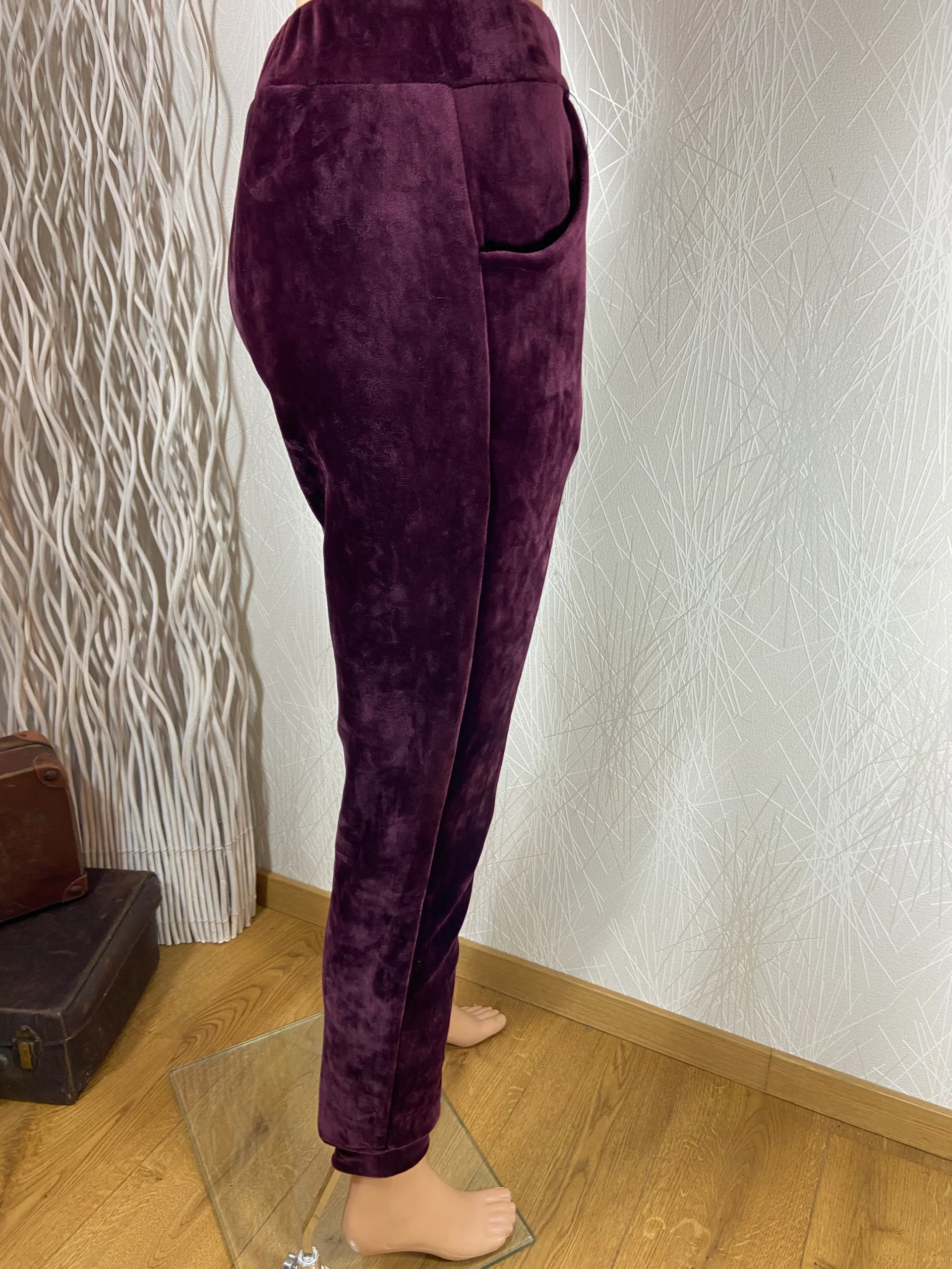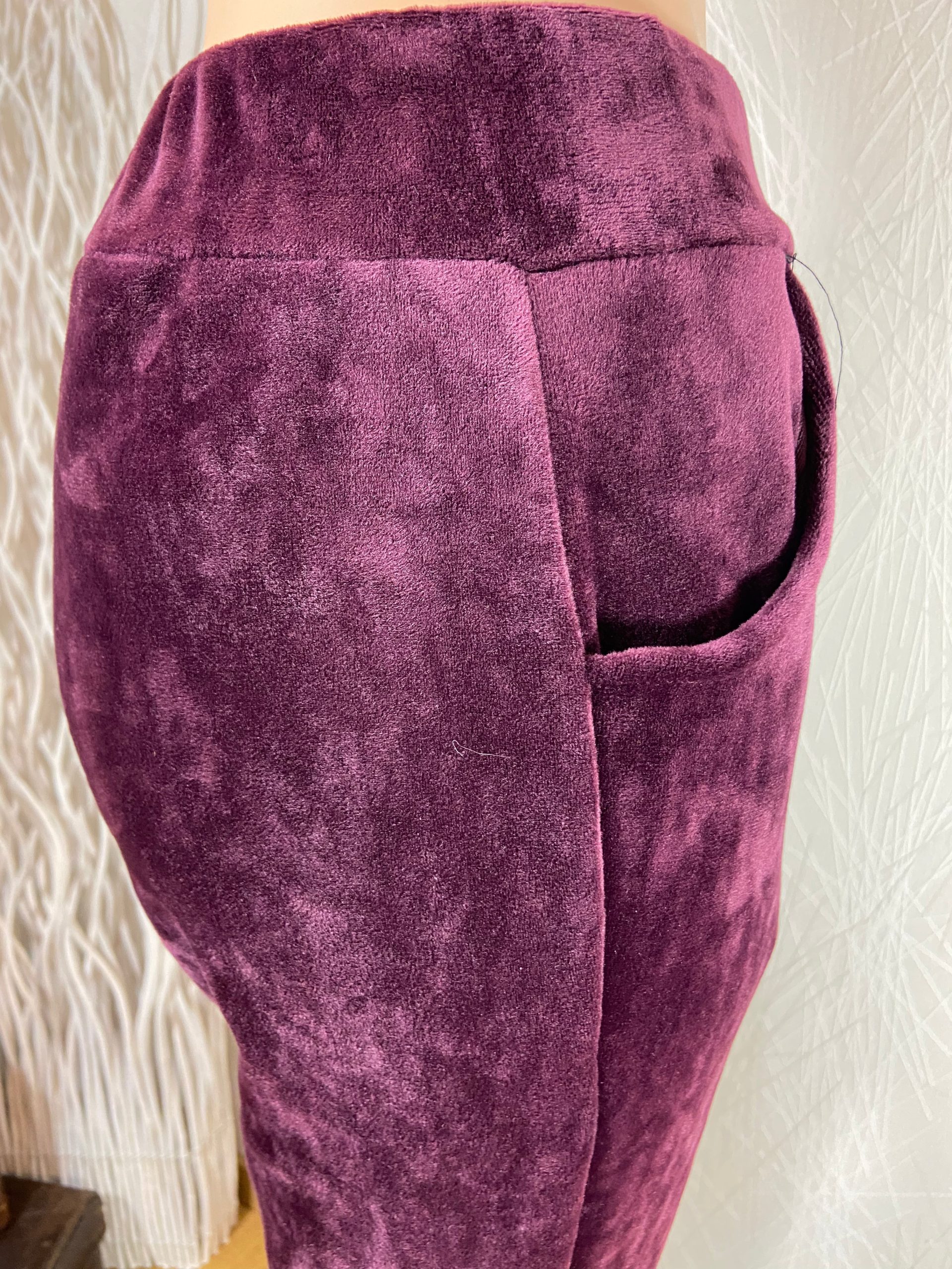 Pantalon détente velours lisse rouge bordeaux taille élastique