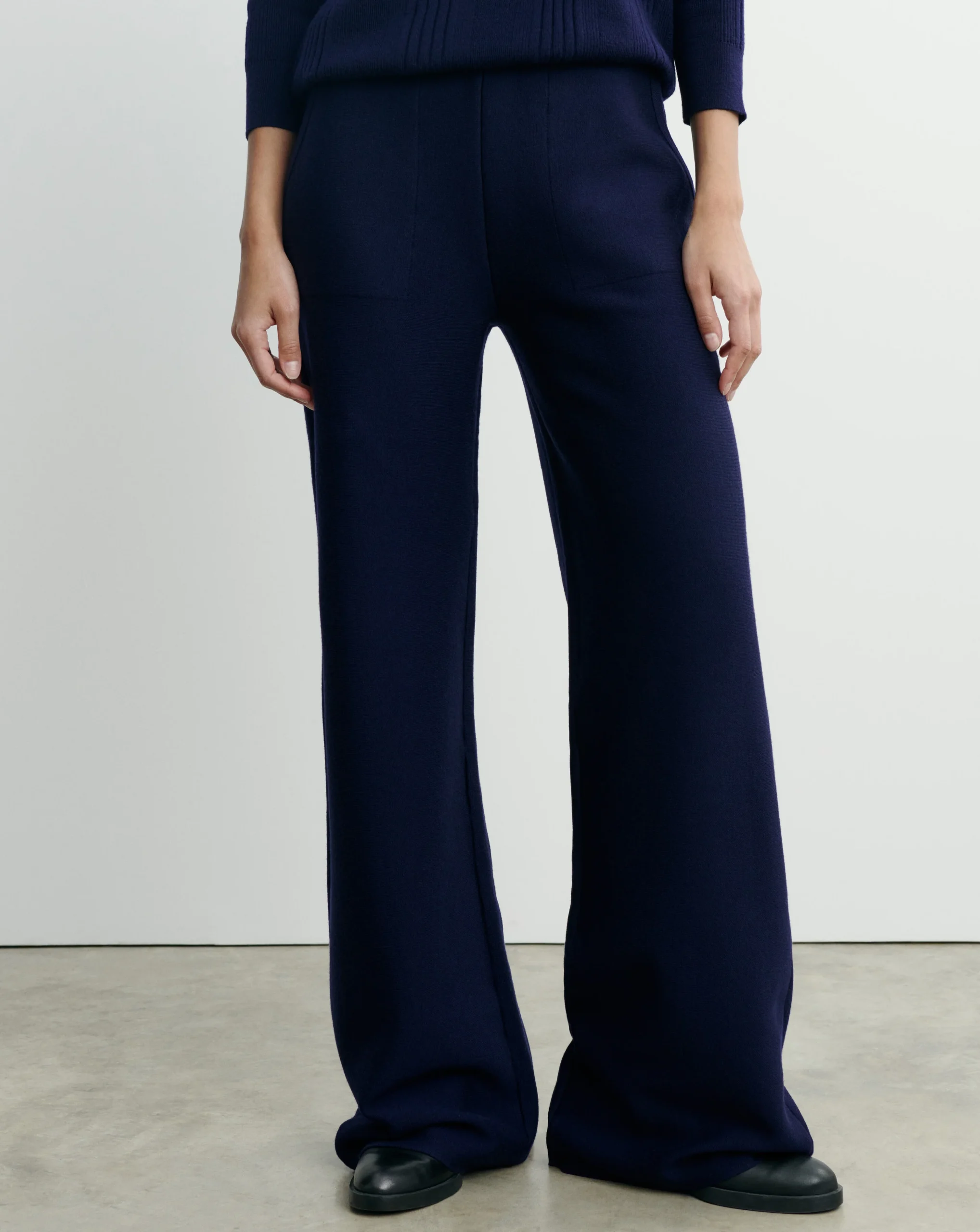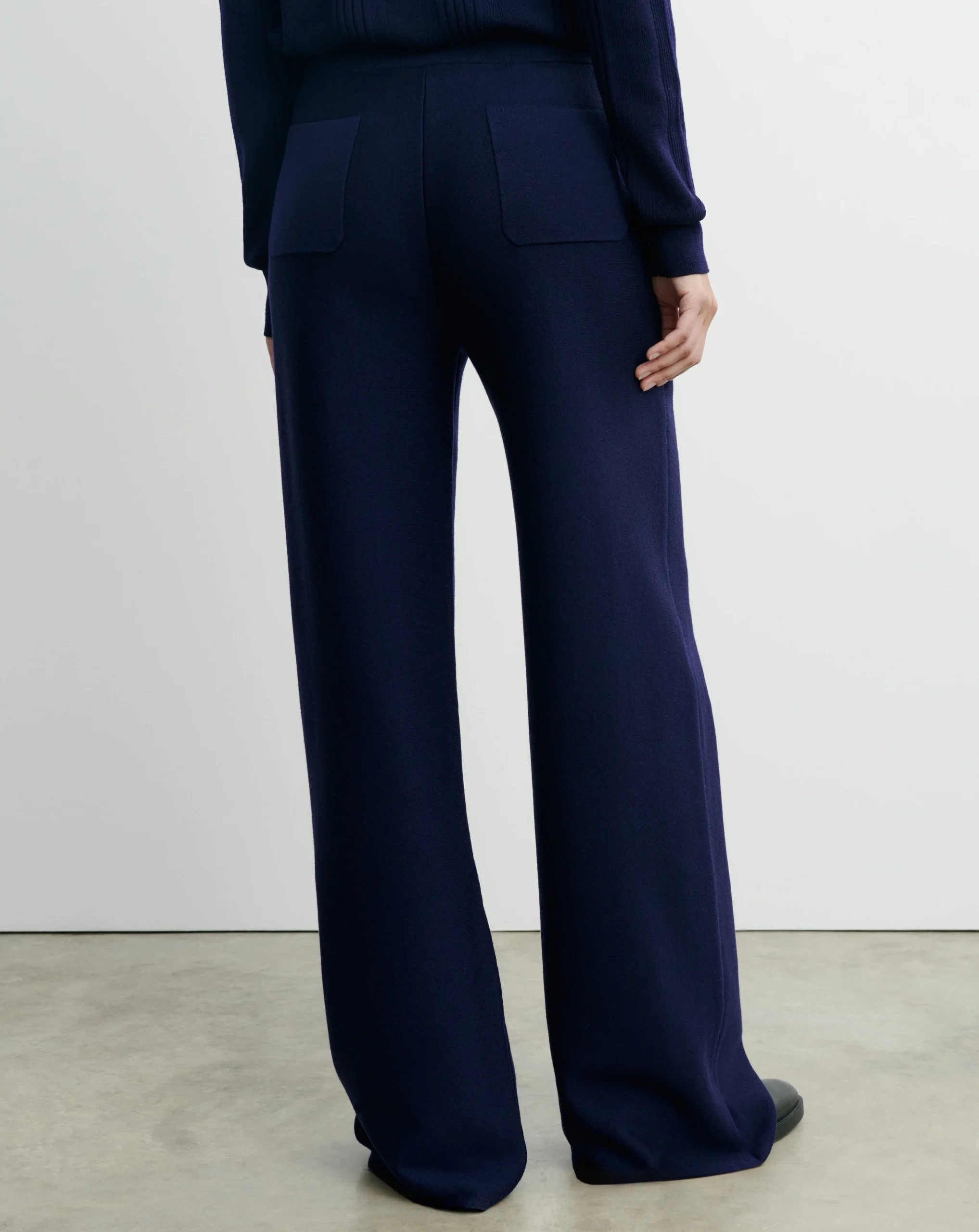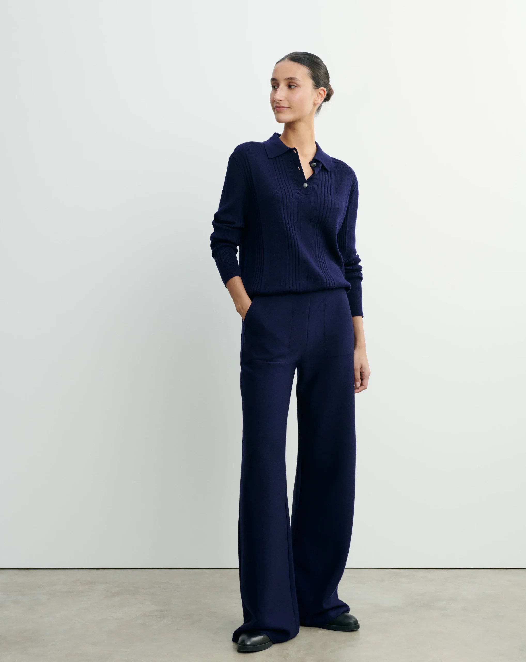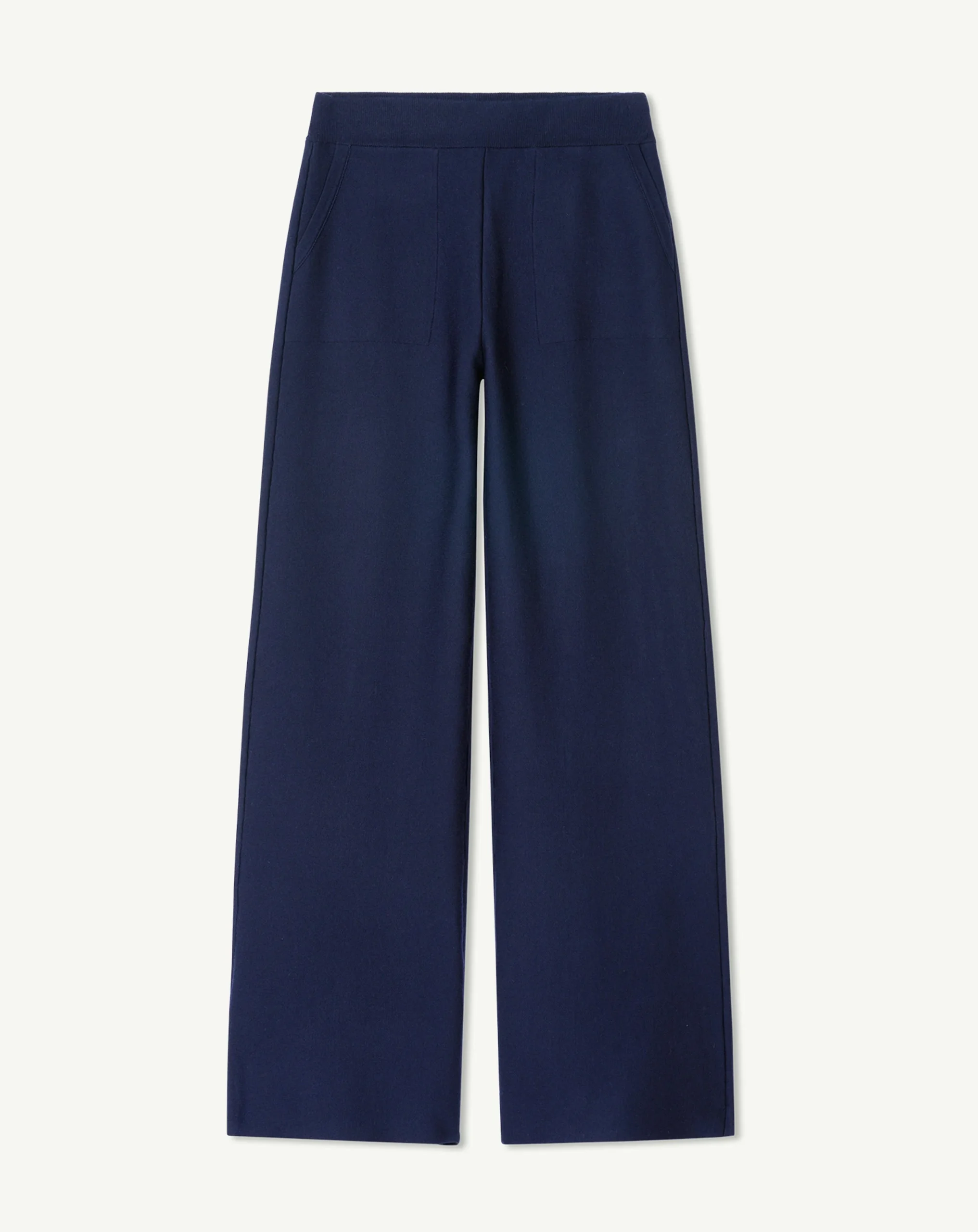 Pantalon ample en maille double face. Coupe droite et ample, portée à la taille.