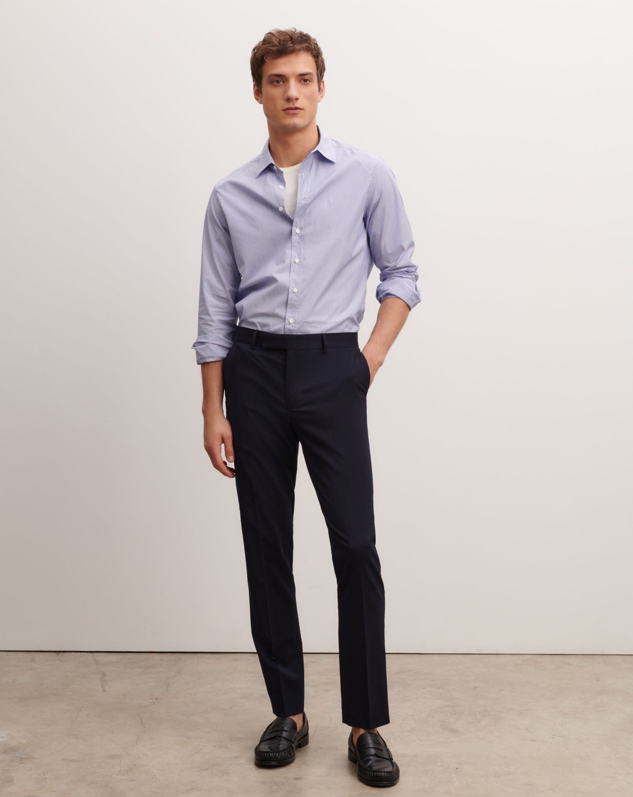 Pantalon en laine italienne ultrafine. Modèle à coupe droite intemporelle.