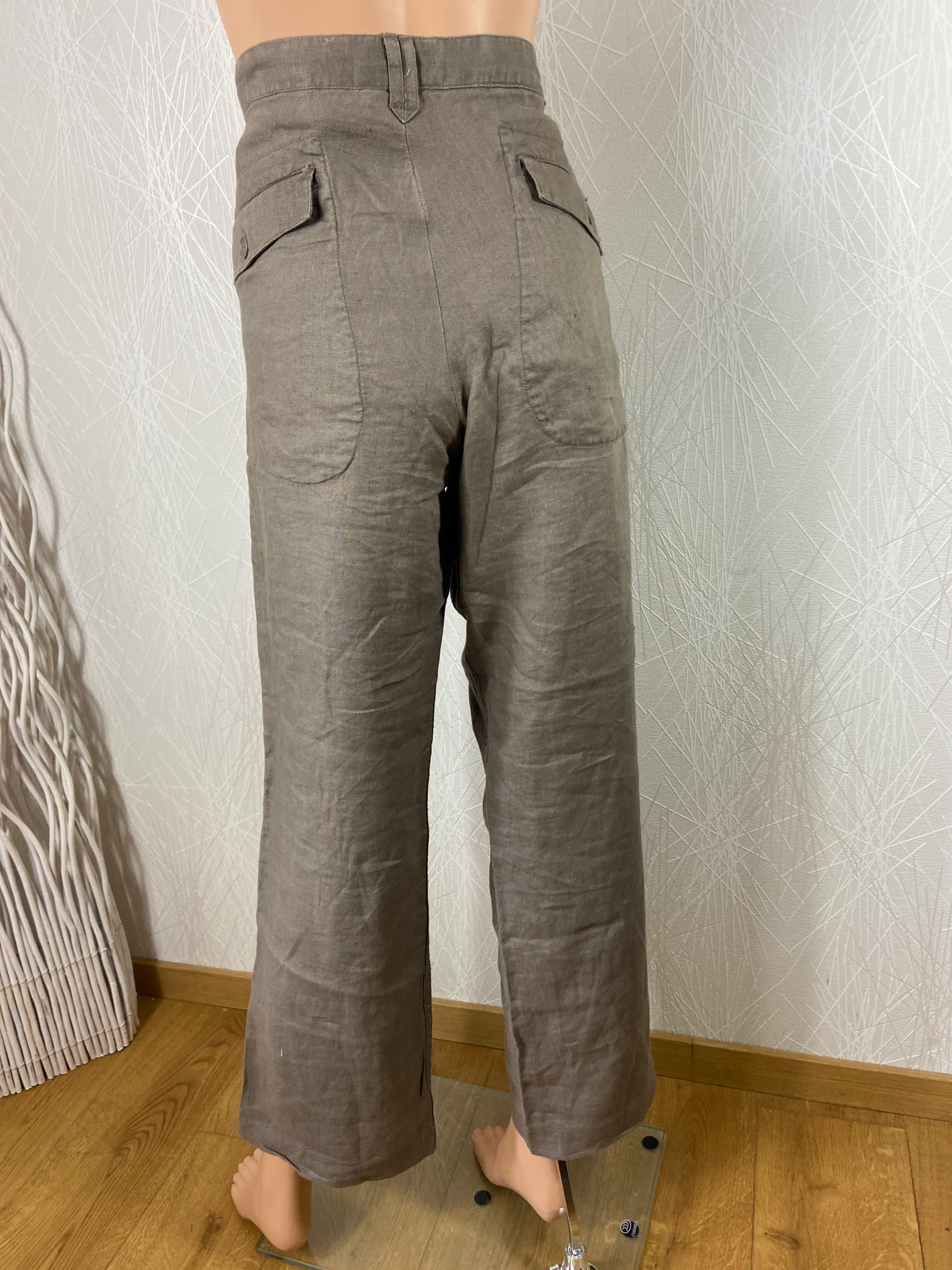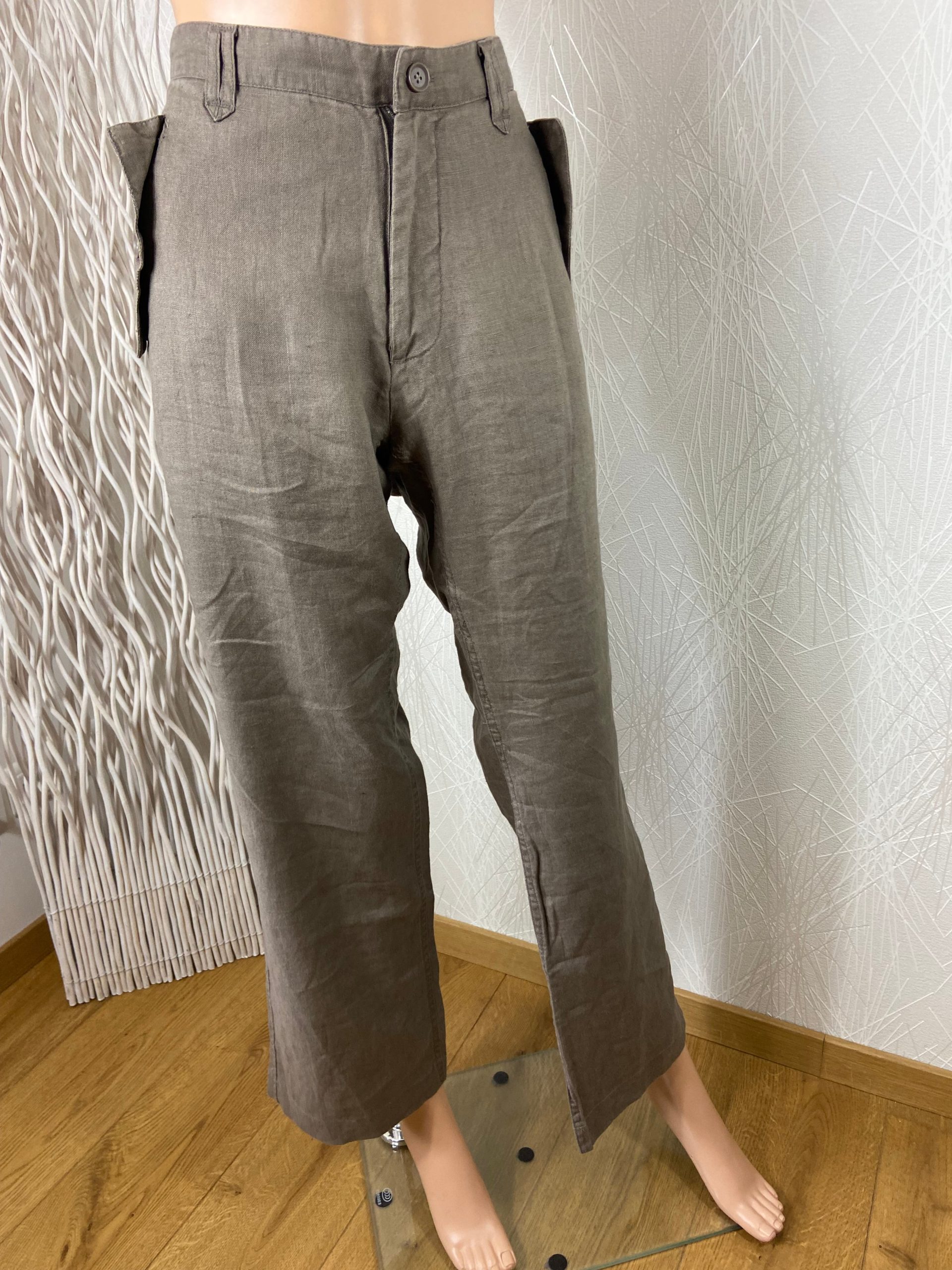 Pantalon large pour femme de la marque H&M. Taille mi-haute, coupe large, 2 poches à rabats à l’avant, 2 poches à l’arrière avec rabats, fermeture bouton et zip. Matière : 100% lin Couleur : Marron Marque : H&M Taille 3XL / 46 – Réf : 46SP5841 Dimensions : Tour de taille : 94 cm ; […]
