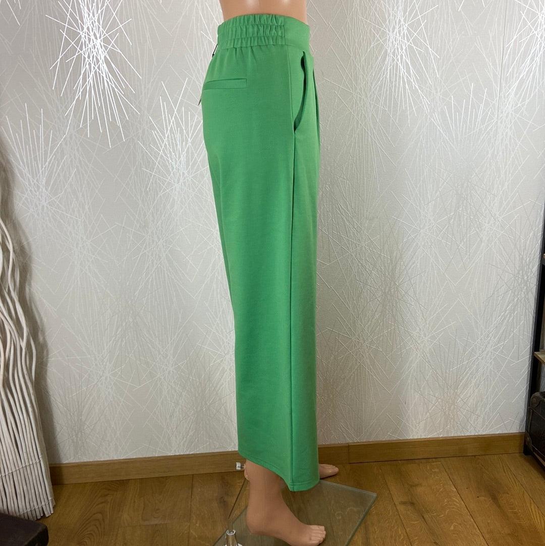 Pantalon femme vert 7/8 jambes larges taille haute élastique Ihkate Wide Ichi