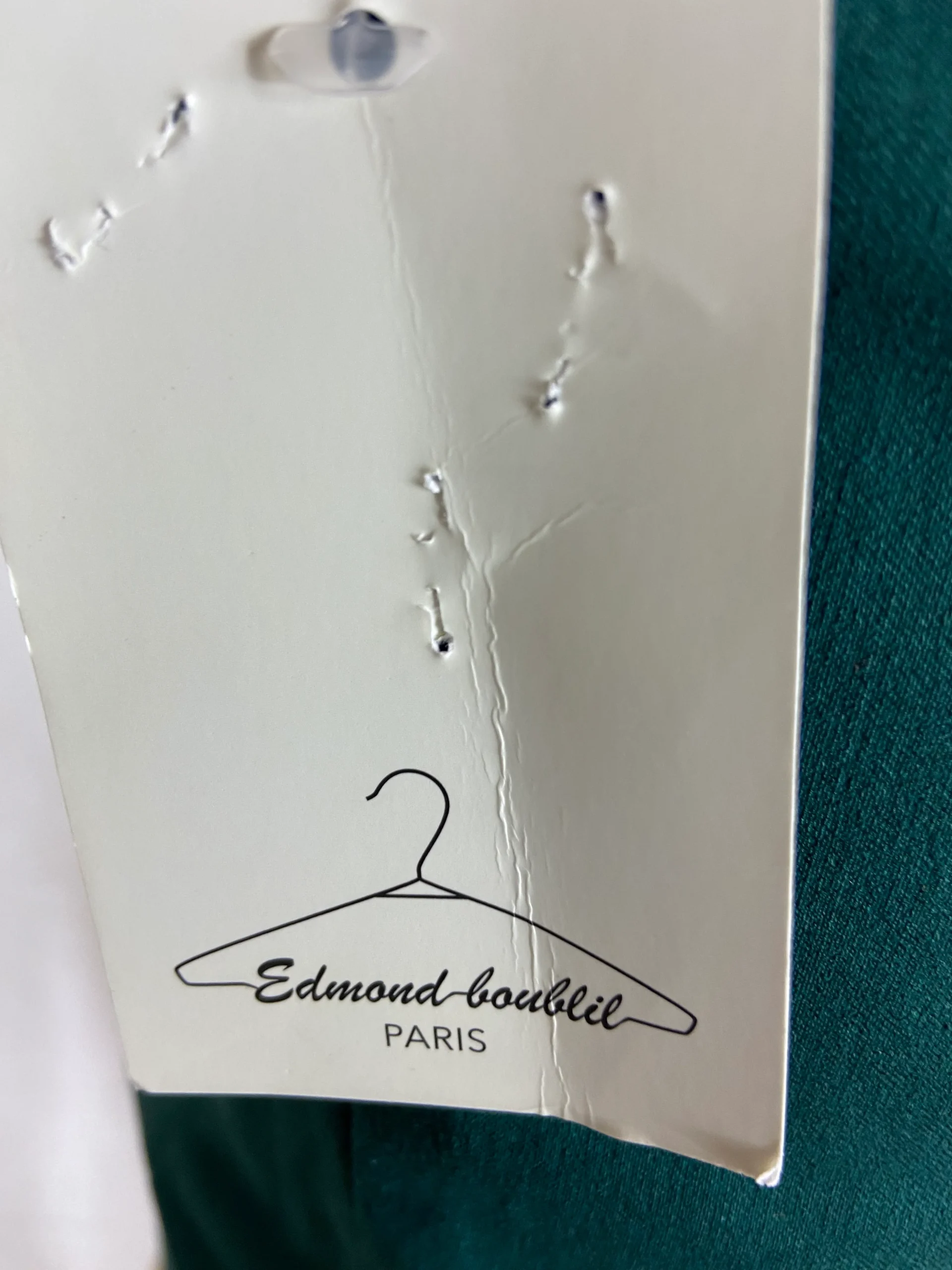 Pantalon vert foncé pour femme de marque Edmond Boublil. Taille haute élastique, 2 poches à l’avant, 2 poches à l’arrière et coupe près du corps. Belle confection. Fabriqué en France. Matière : 85% polyamide – 15% élasthanne Couleur : Vert Marque : Edmond Boublil Dimensions Taille 44 : Tour de taille : de 80 à […]