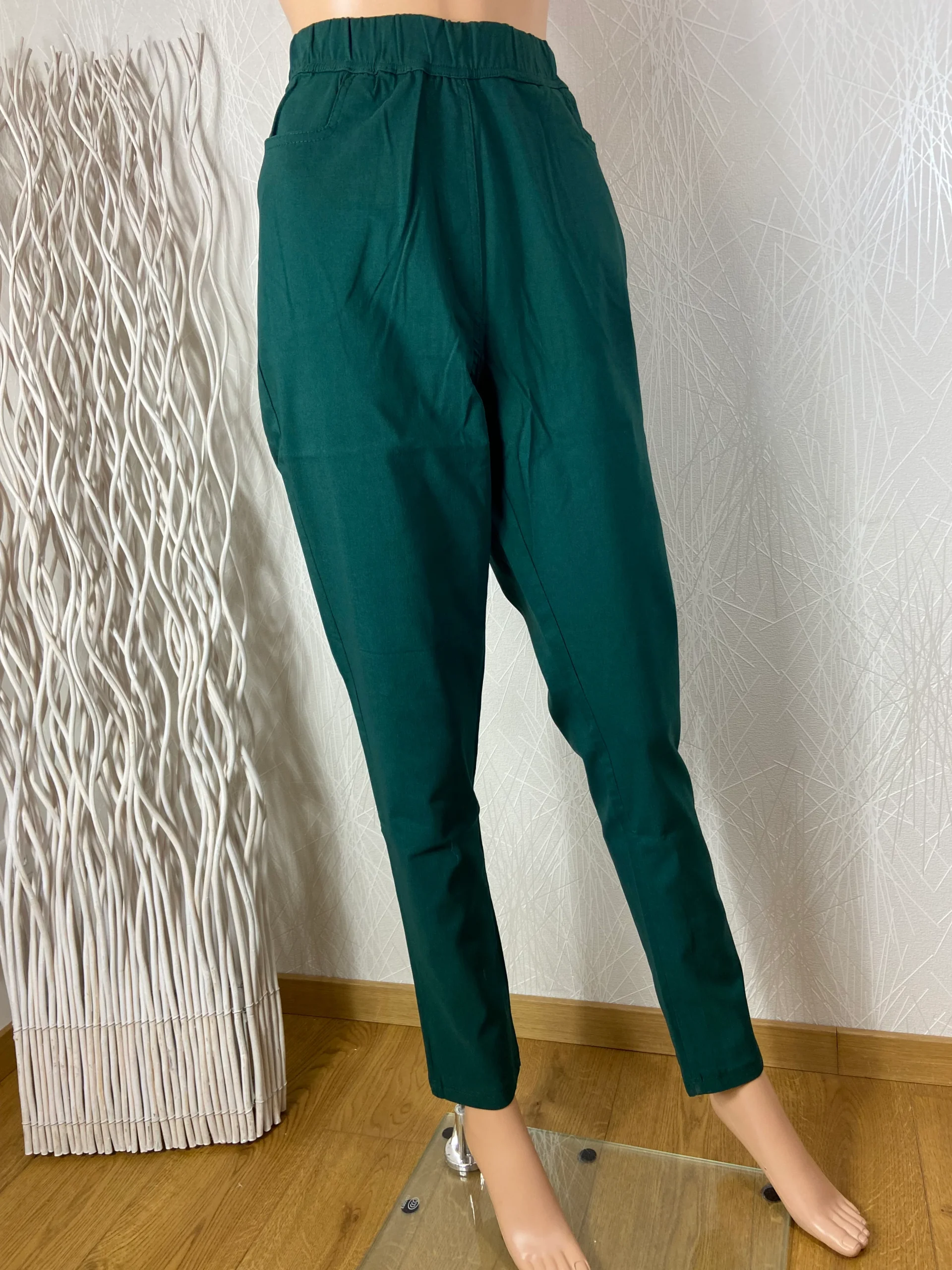 Pantalon femme vert foncé taille haute élastique Edmond Boublil