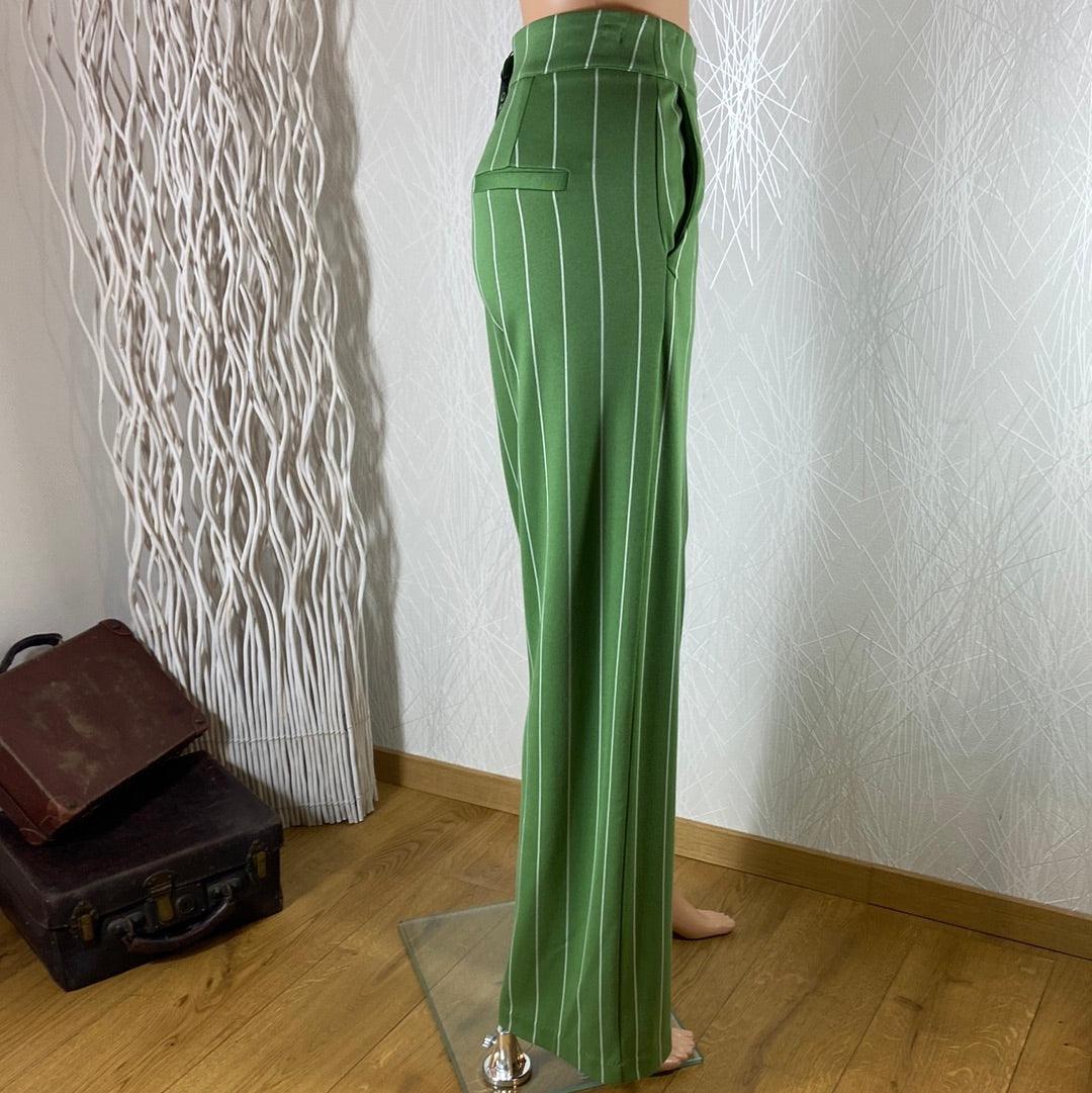 Pantalon femme vert rayé taille haute coupe ample Ihruti Wide Ichi