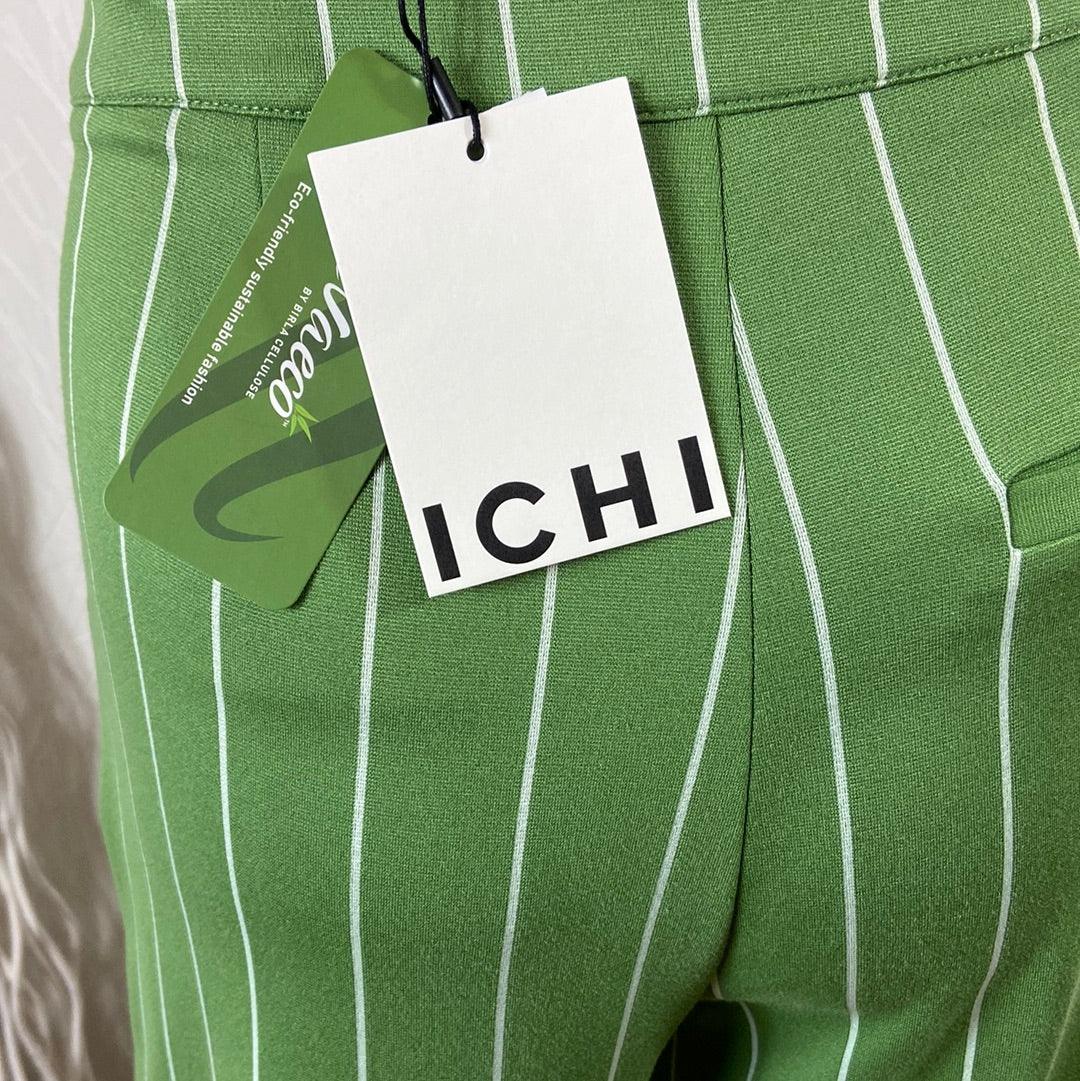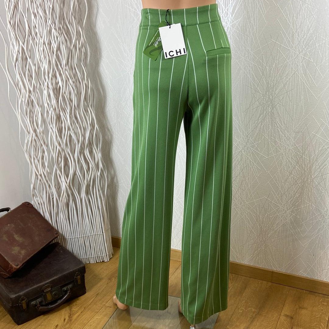 Pantalon pour femme, rayé vert et blanc, modèle Ihruti Wide Pa12 de la marque Ichi.
