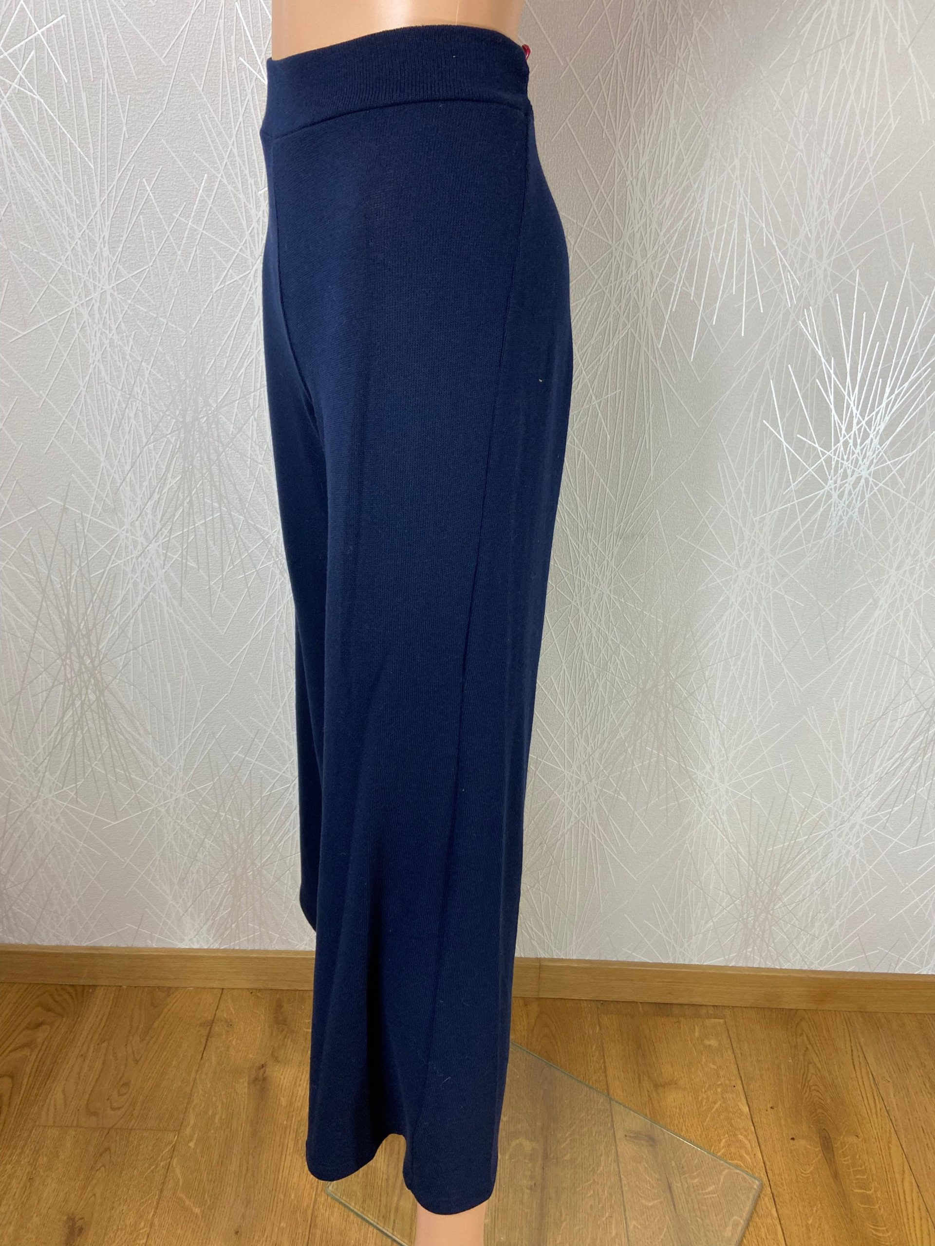 Pantalon fluide élastique tissu jersey bleu marine jambes larges Le singe de Julie
