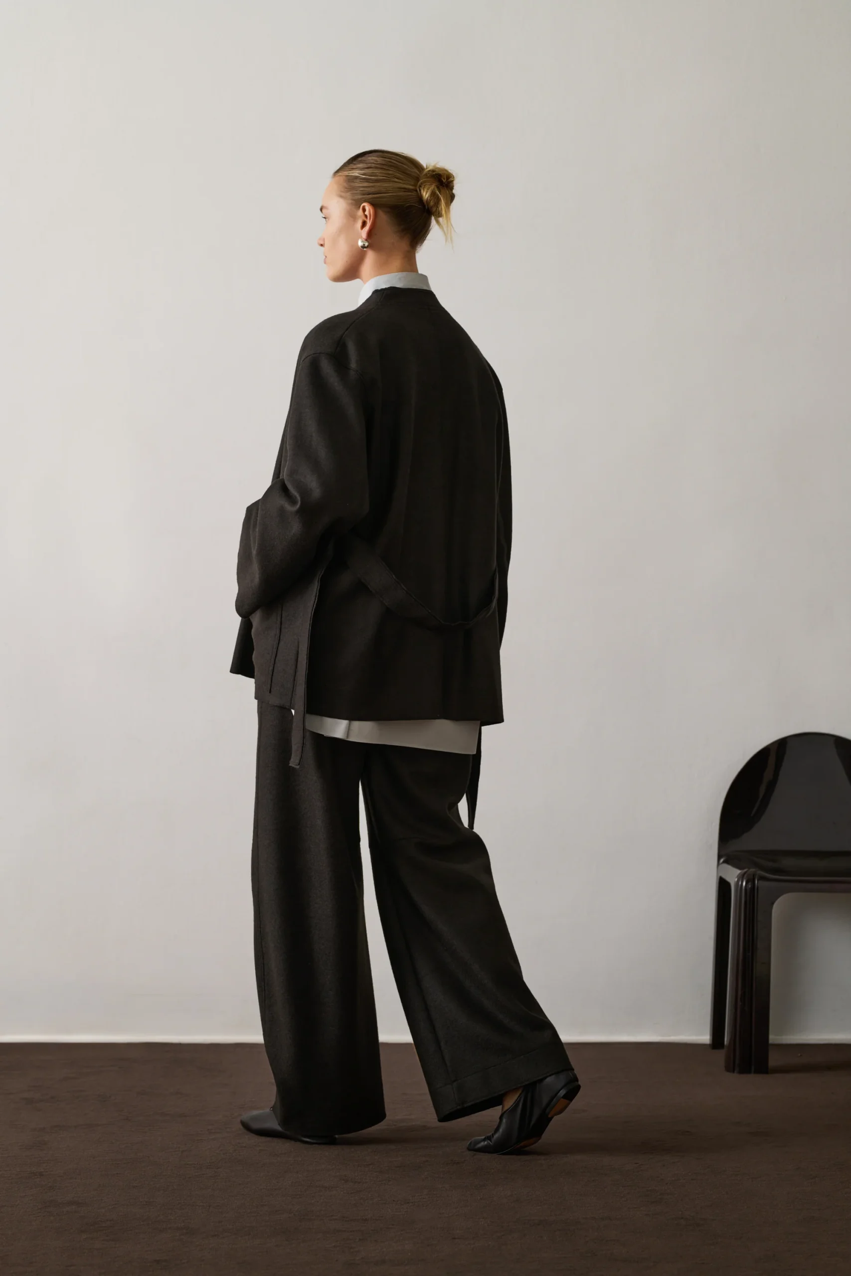 GIBSON est un pantalon en laine bouillie vert ébène, à la coupe ample et arrondie. Ses poches italiennes et passepoilées, ainsi que ses pinces aux genoux, soulignent son style. La laine dense et souple assure une silhouette élégante. – Coupe ample – Forme ronde et longue– Ouverture boutonnée et braguette– Deux poches italiennes devant, deux […]