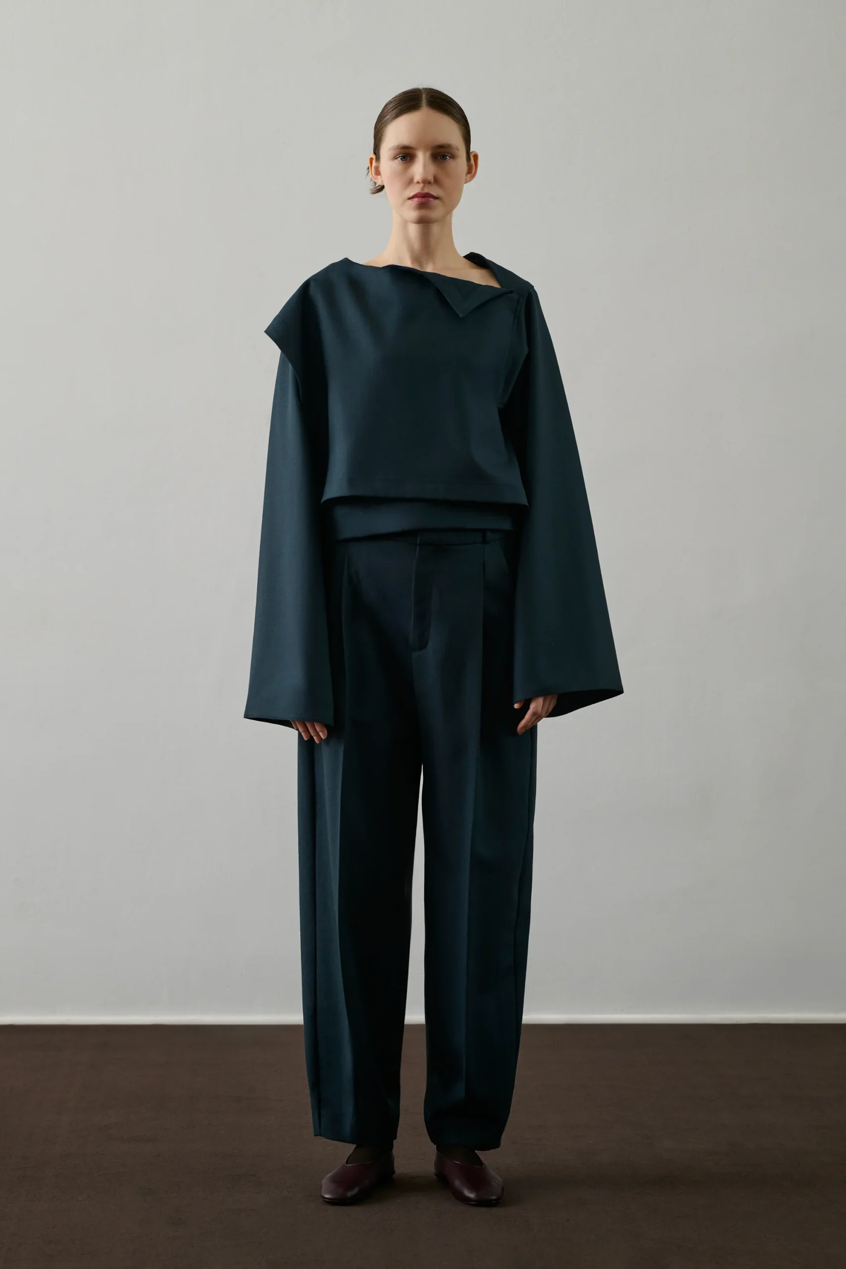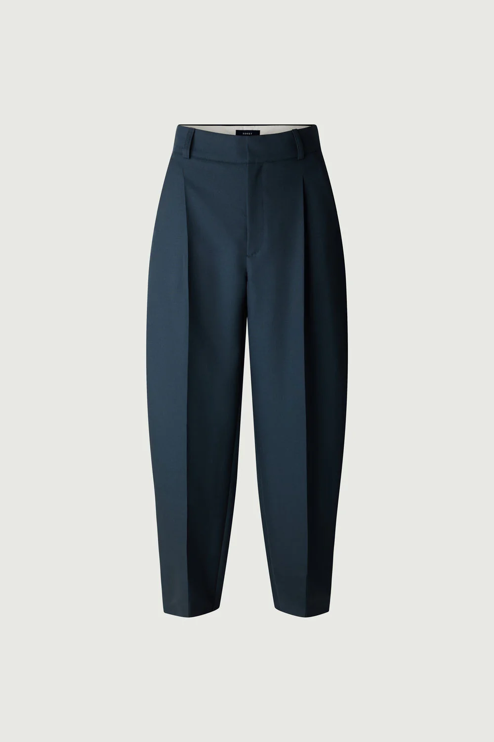 GRAHAM est un pantalon de tailleur en toile de laine vierge. Sa coupe ajustée et sa longueur cheville soulignent une silhouette élégante. Taille mi-haute, fermeture par crochet et zip. Deux poches italiennes, une passepoilée.