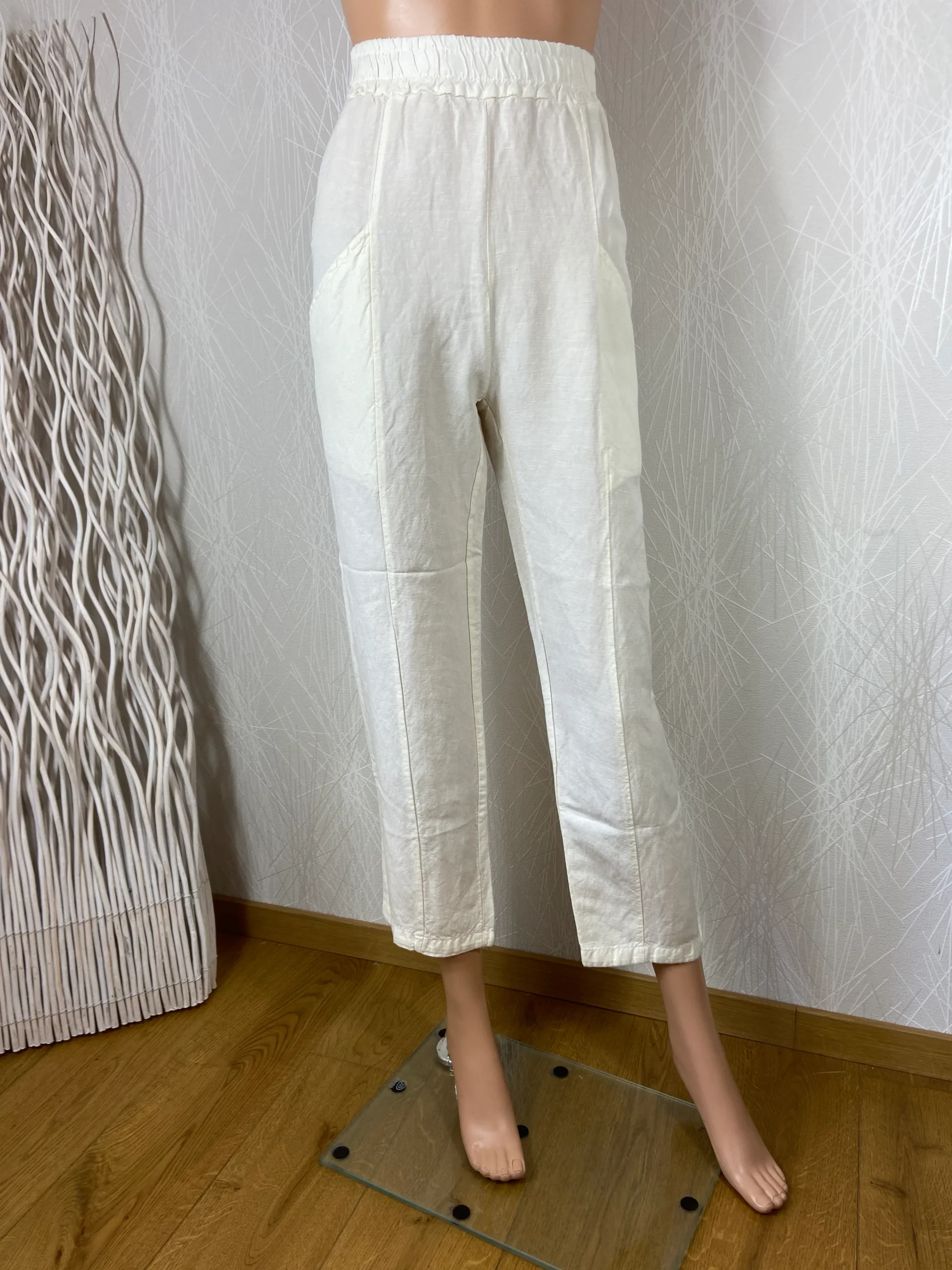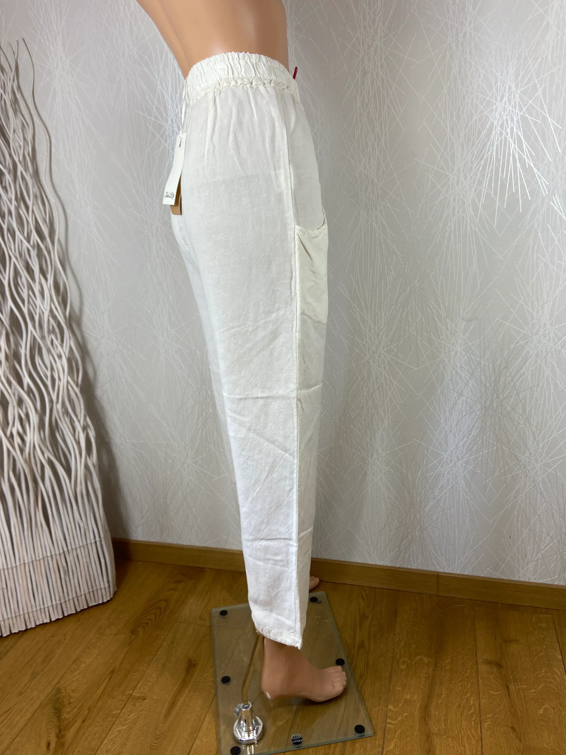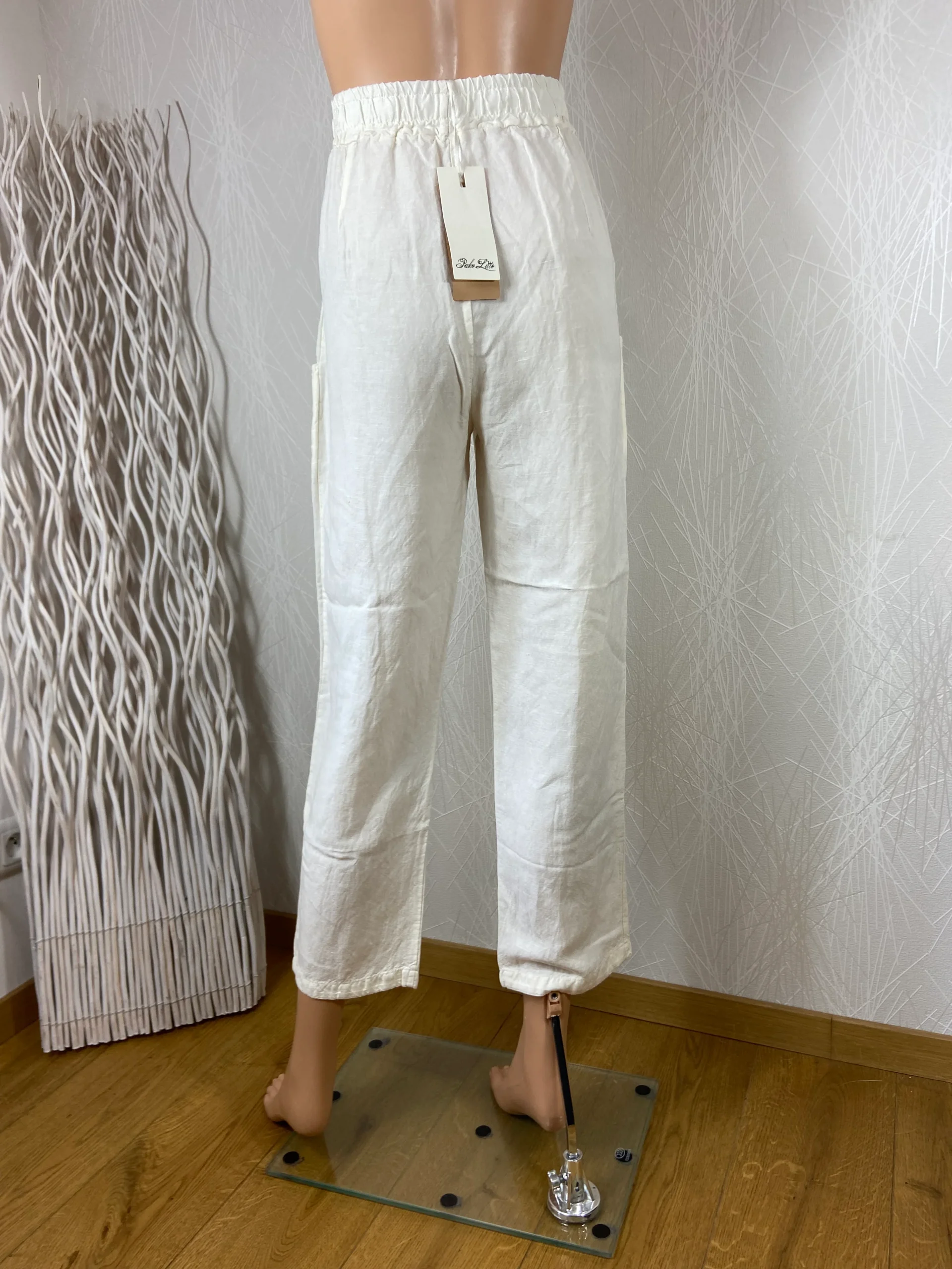 Pantalon léger et fluide de la marque Pako Litto. Légèrement transparent, coupe droite, taille élastique et 2 poches à l’avant. Matière : 52% lin – 48% rayon. Couleur : Blanc crème. Dimensions Taille 38 : Tour de taille : de 74 à 86 cm ; longueur : 95 cm ; longueur entrejambe : 64 cm. […]