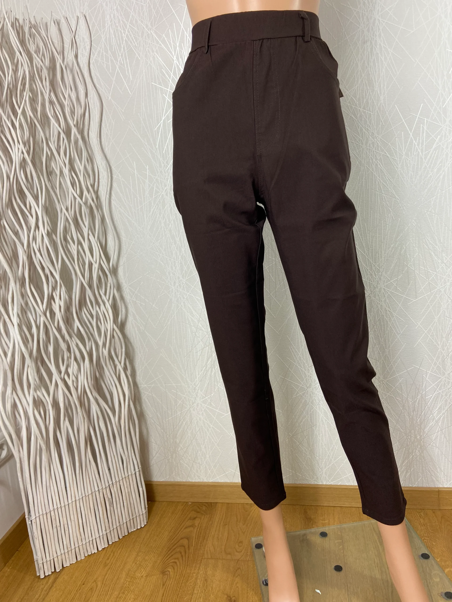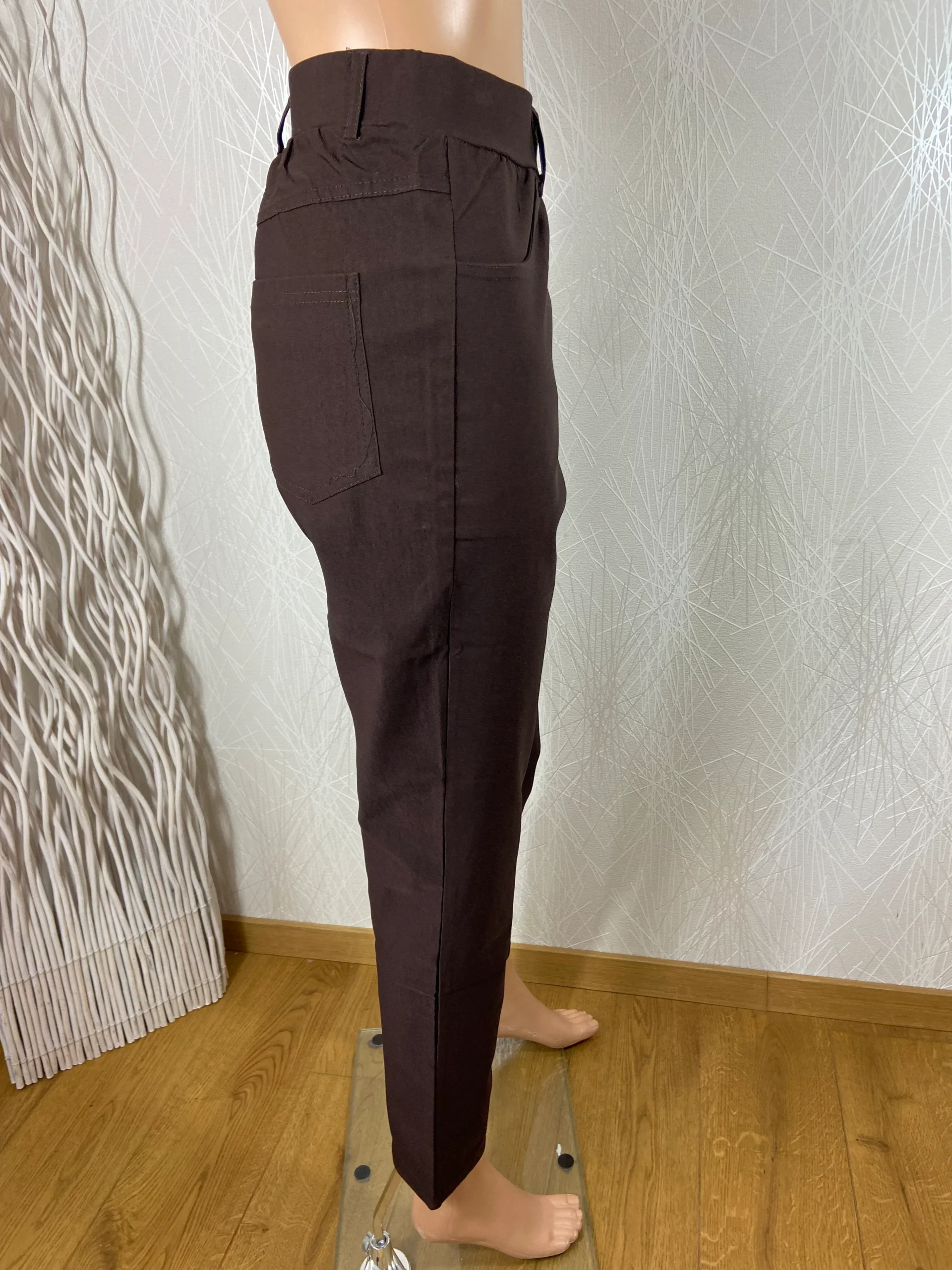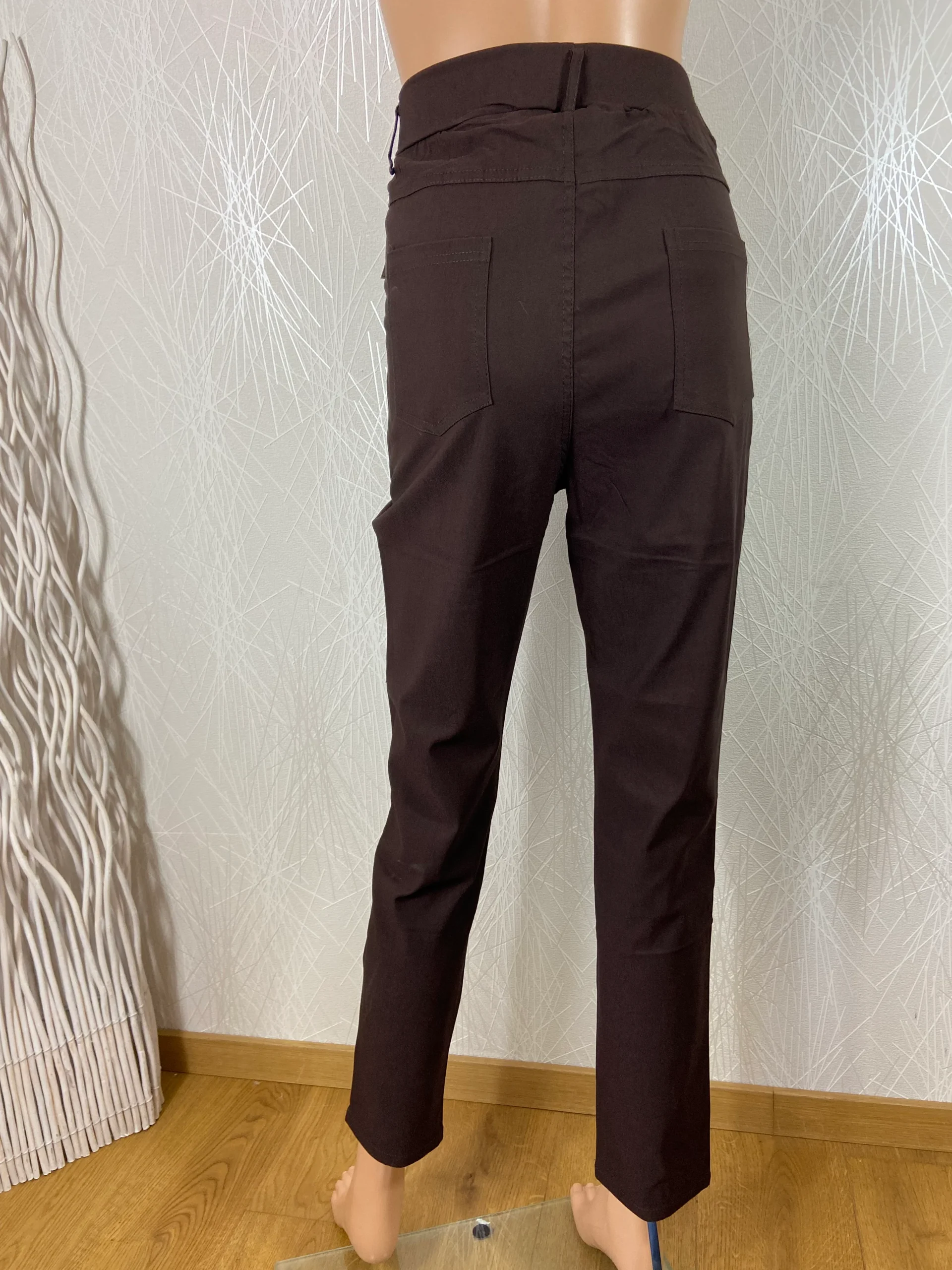 Pantalon marron stretch taille haute élastique Edmond Boublil