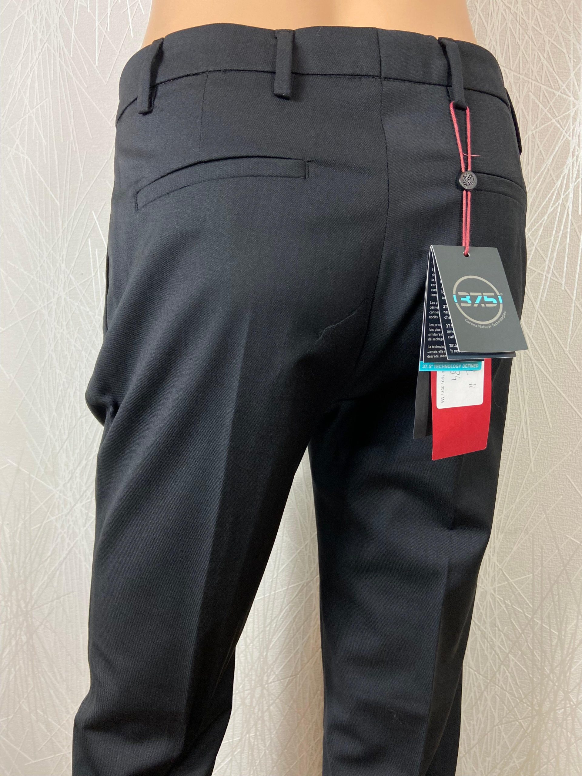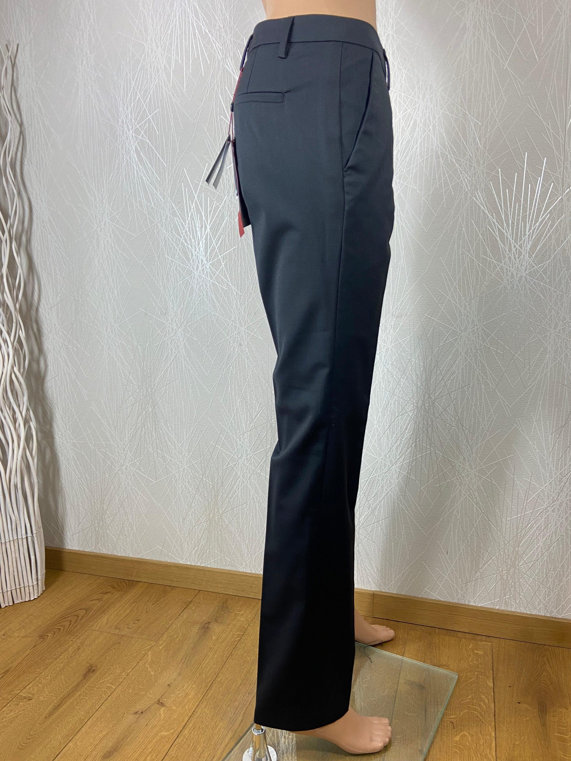 Pantalon noir habillé pour femme, de style business, modèle Regular Fit, de la marque haut de gamme allemande GREIFF. Pantalon doublé à l’avant, taille basse, coupe droite, 2 poches latérales, 2 poches passepoilées décoratives à l’arrière, fermeture avec crochet, zip et 2 boutons. Très belle qualité de confection, avec des matières nobles. Nous avons différentes […]