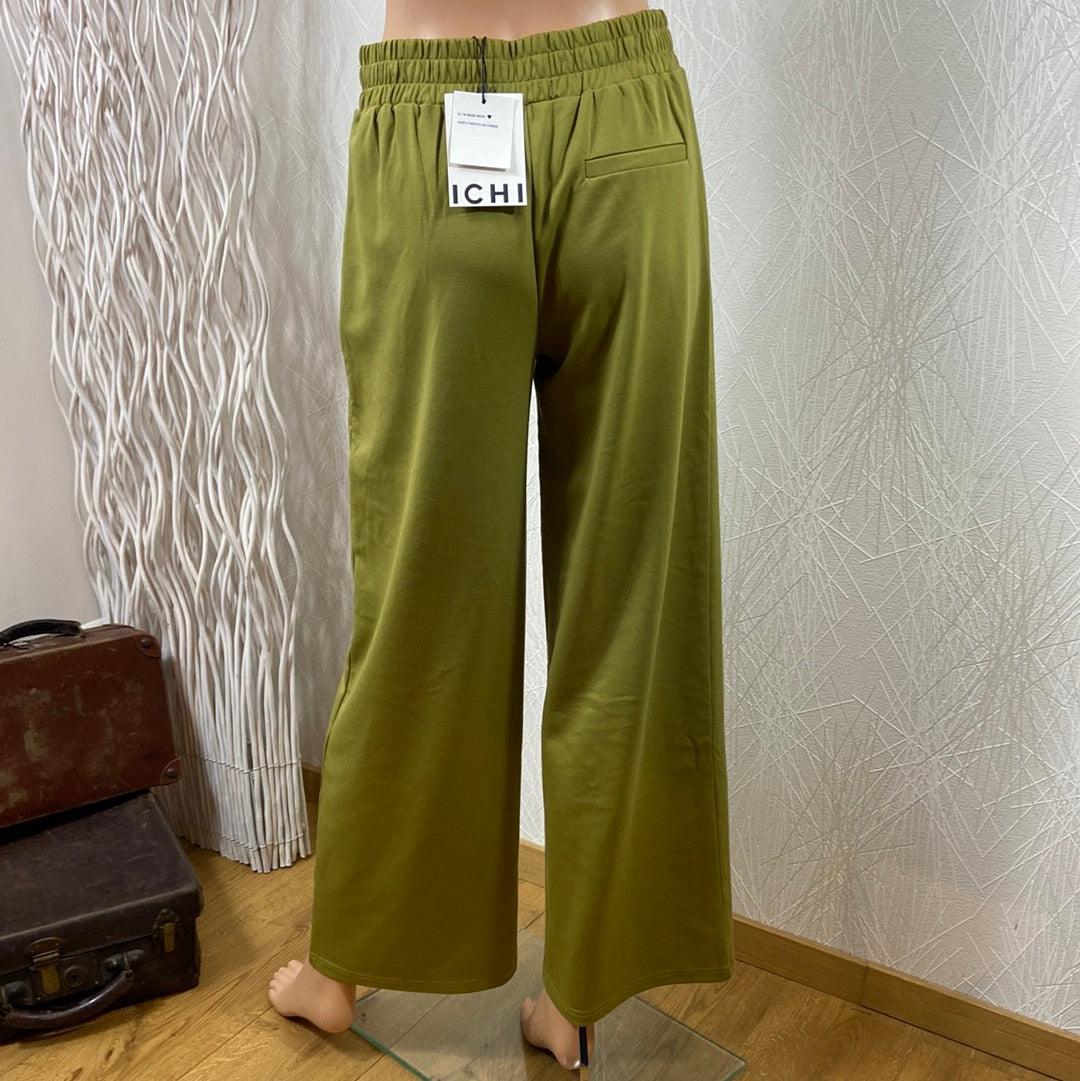 Pantalon vert pour femme modèle Ihkate Sus Long Wide Pa2 de la marque Ichi.