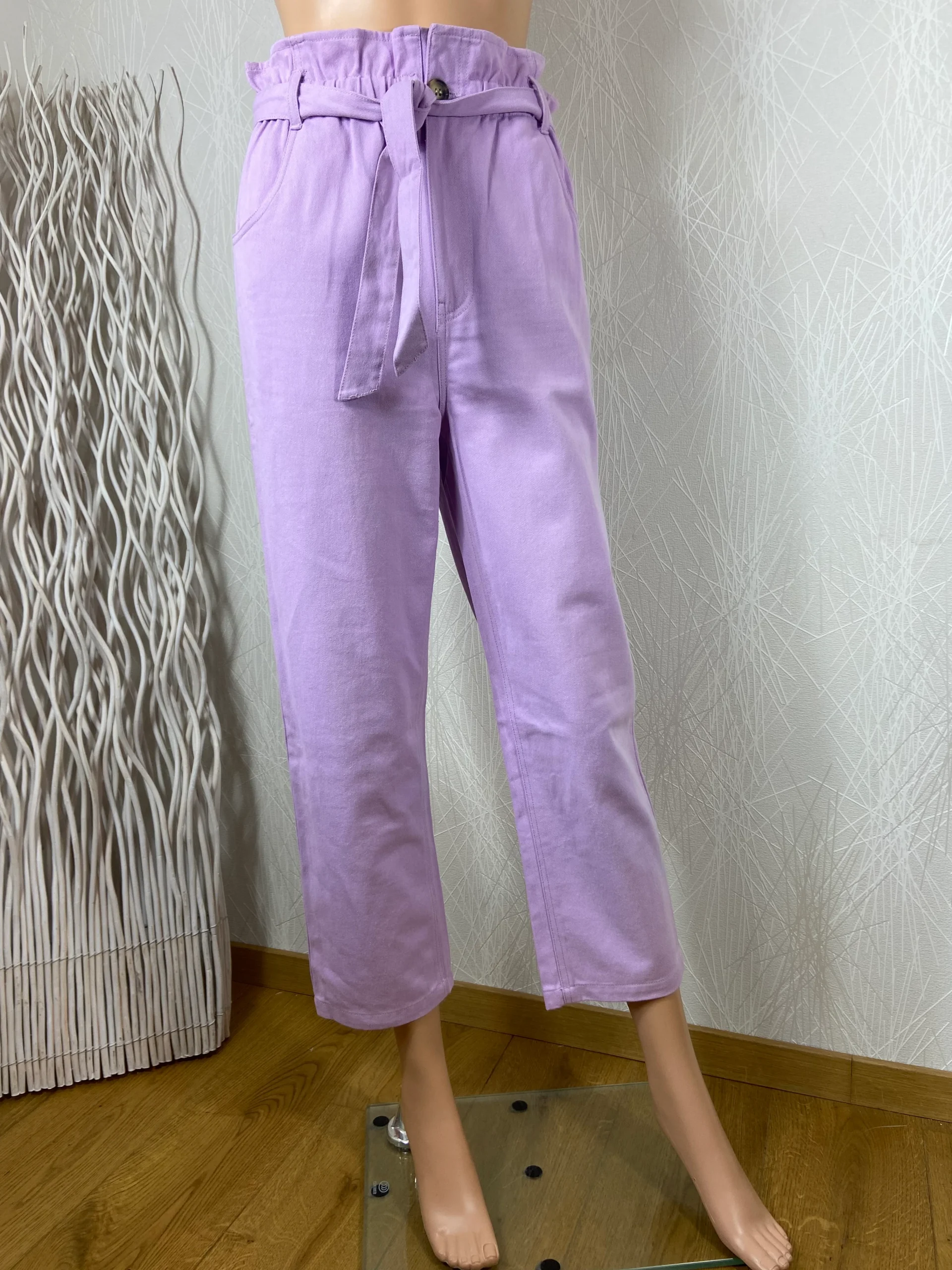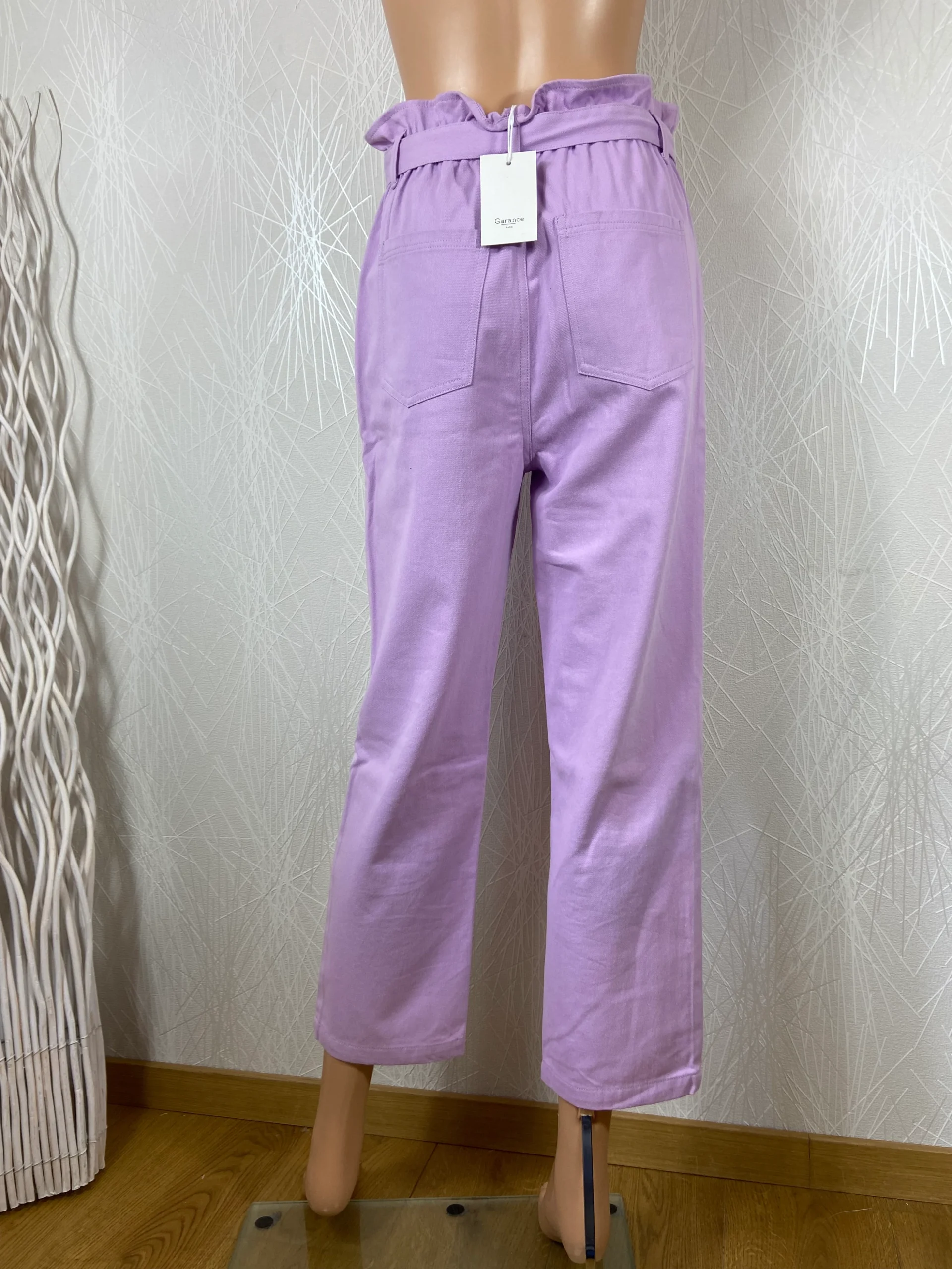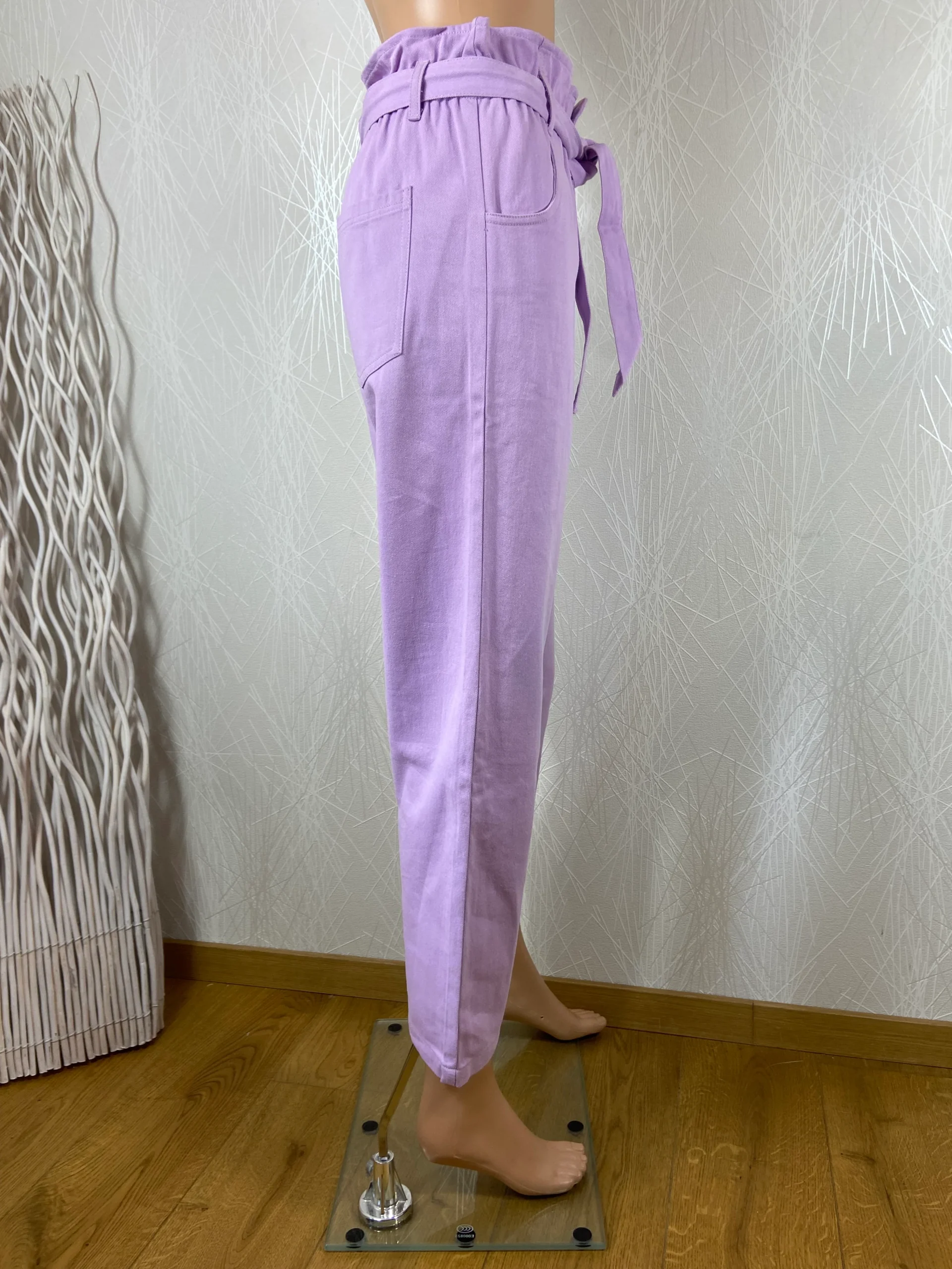 Taille haute élastique avec ceinture , 2 poches à l’avant, 2 poches à l’arrière et coupe droite.