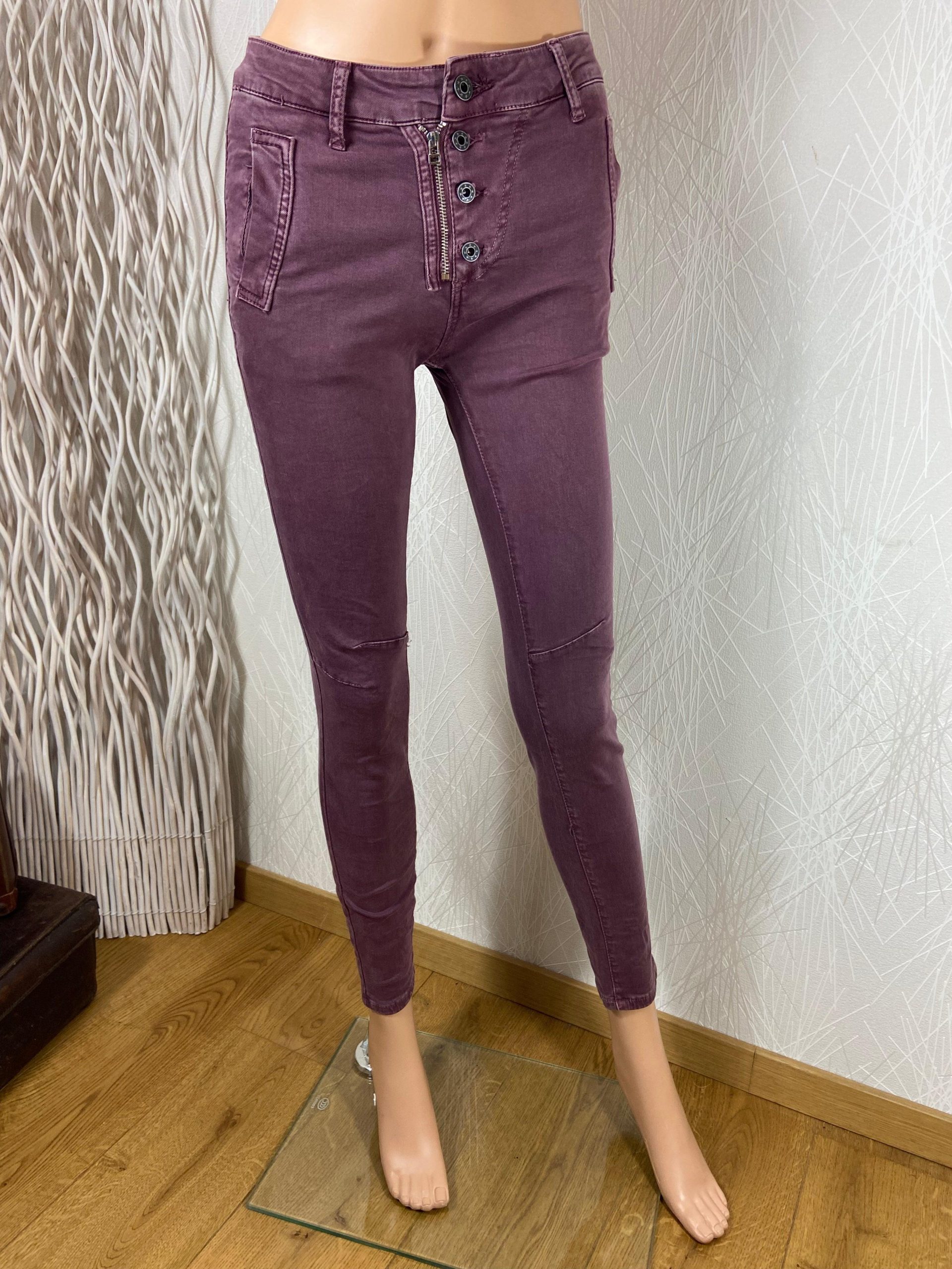 Pantalon violet en coton pour femme. Taille mi-haute, coupe près du corps, 2 poches à l’avant, 2 poches à l’arrière, fermeture avec boutons et zip. Matière : 98% coton – 2% élasthanne Couleur : Violet Taille S / 36 – Réf : 36QP3057 Dimensions : Tour de taille : 70 cm ; longueur entrejambe : […]