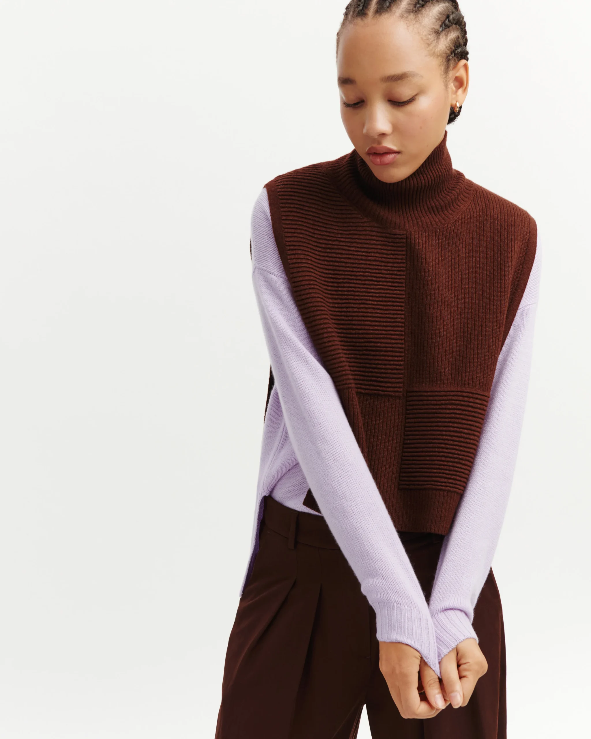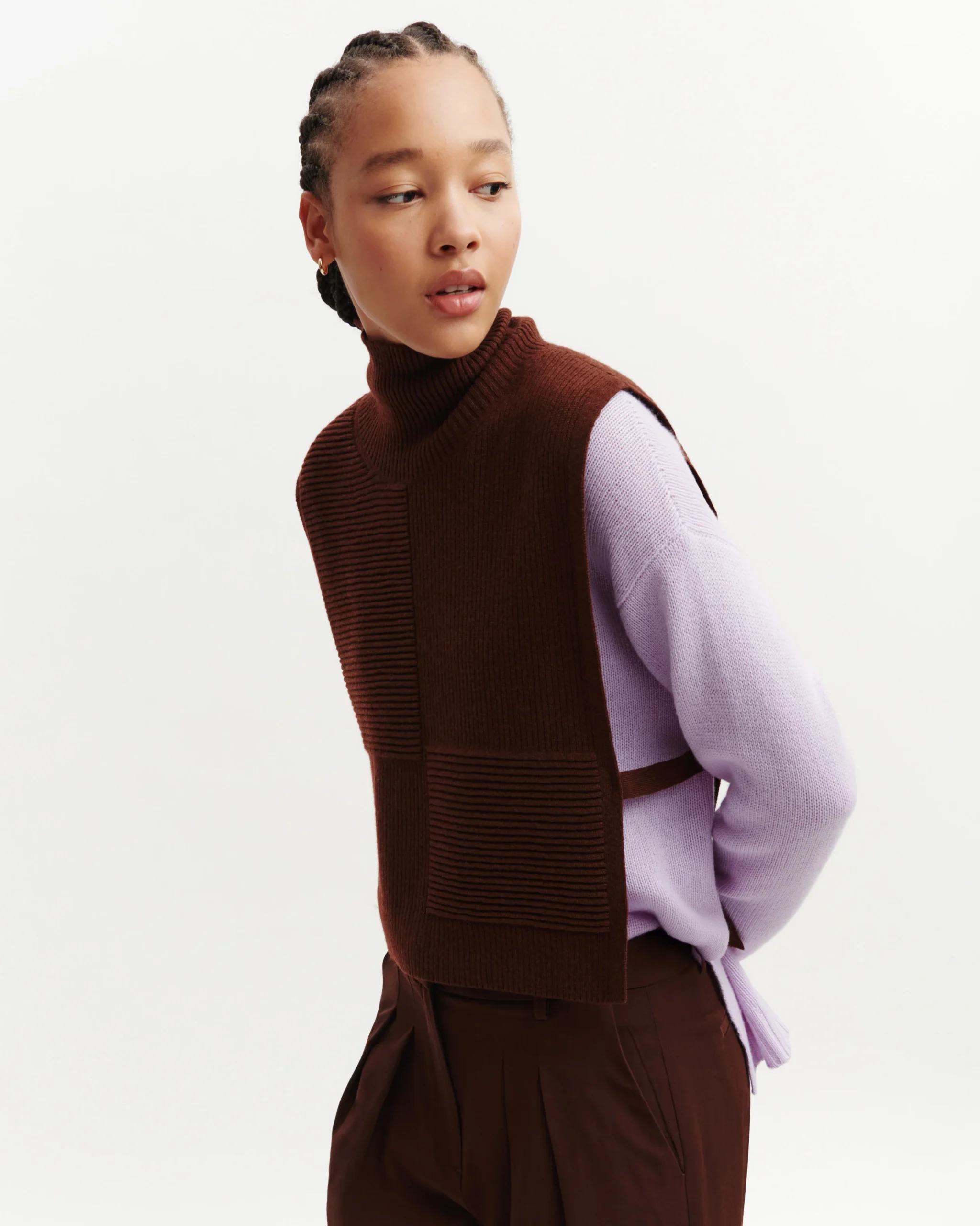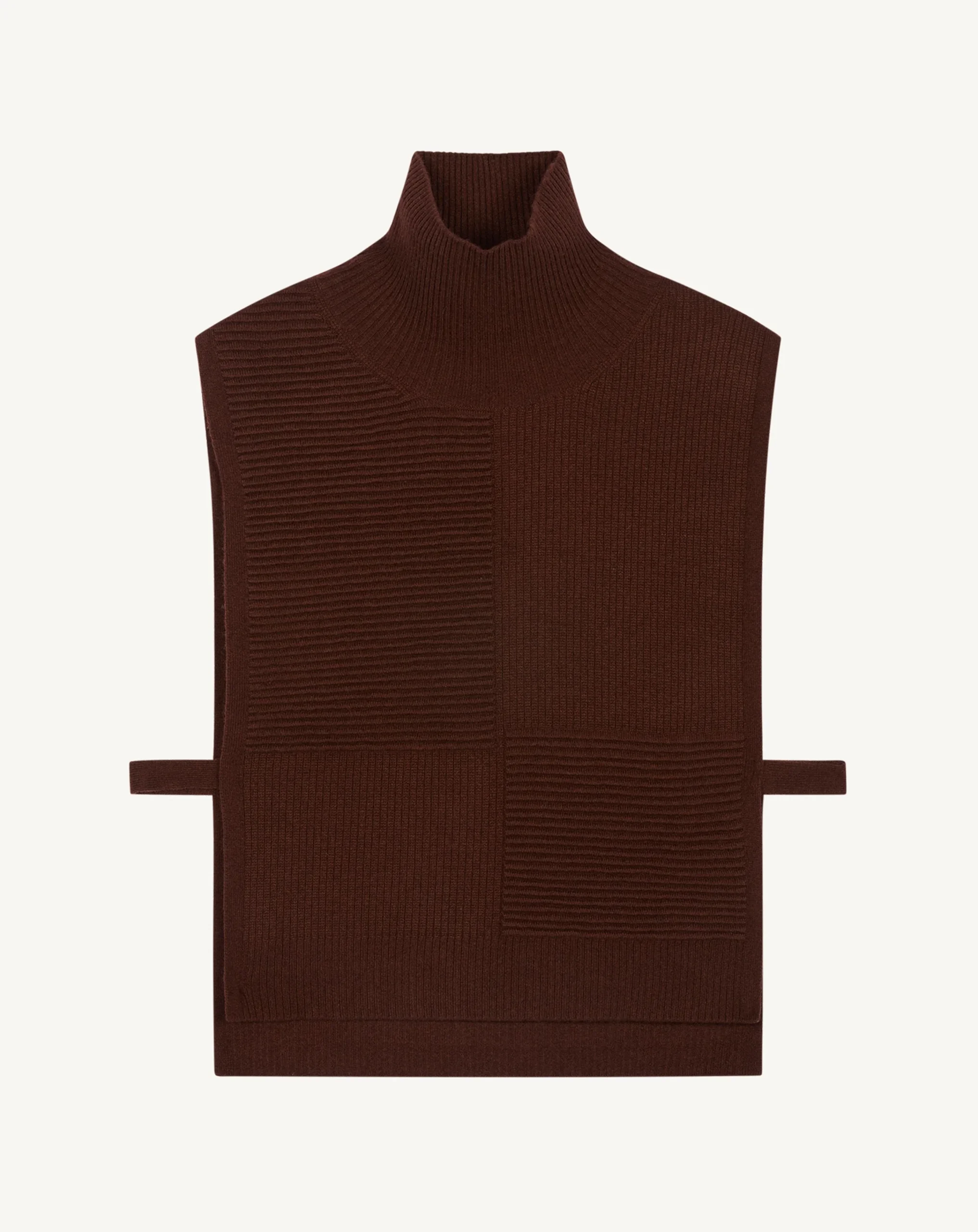 Alliance d’élégance et de modernité, ce plastron en cachemire joue sur les textures avec un subtil contraste de côtes ottoman et côtes classiques.