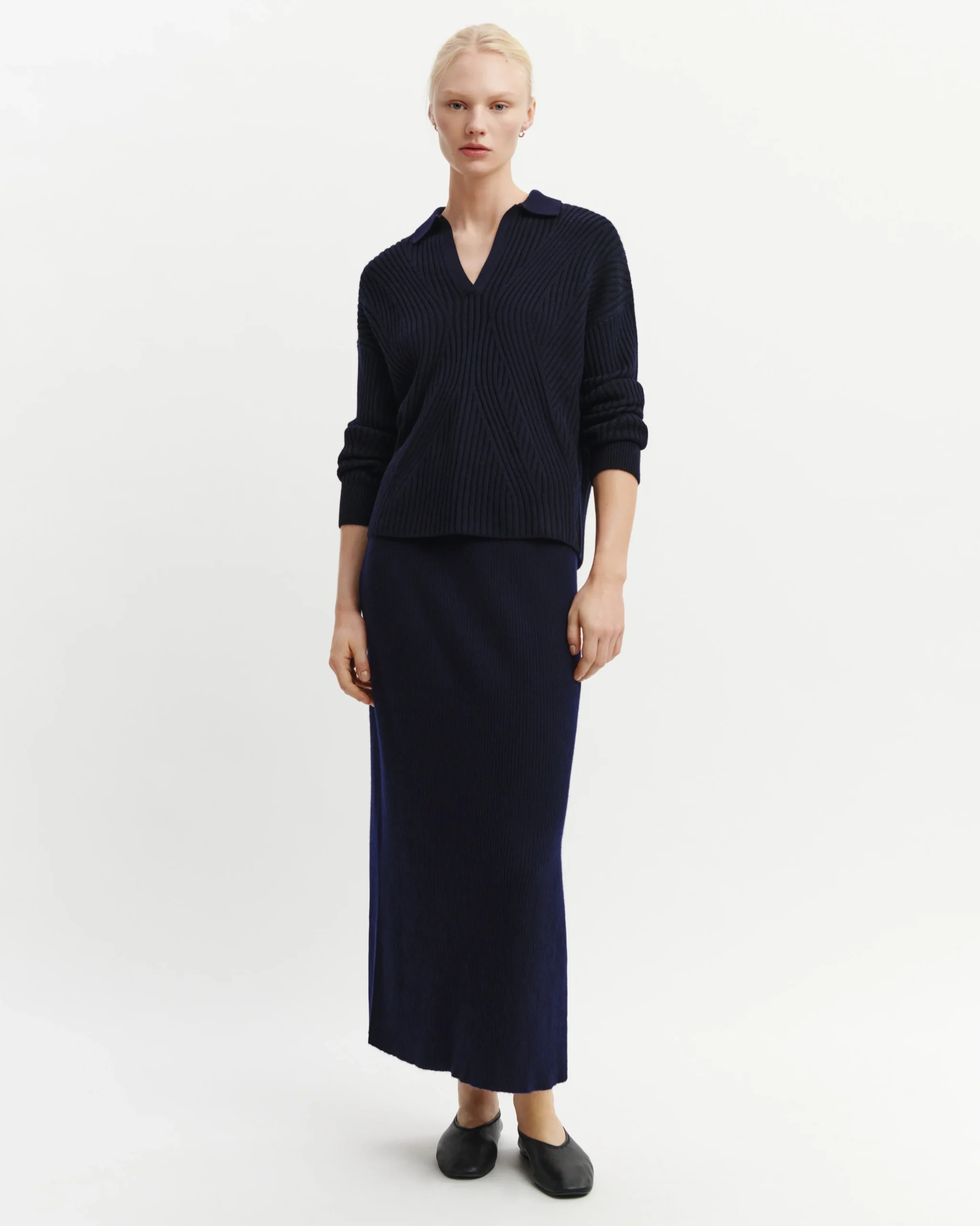 -Jeu de côtes vanisées à retrouver sur le ras de cou sans manches et manches longues ainsi que sur la jupe assortie