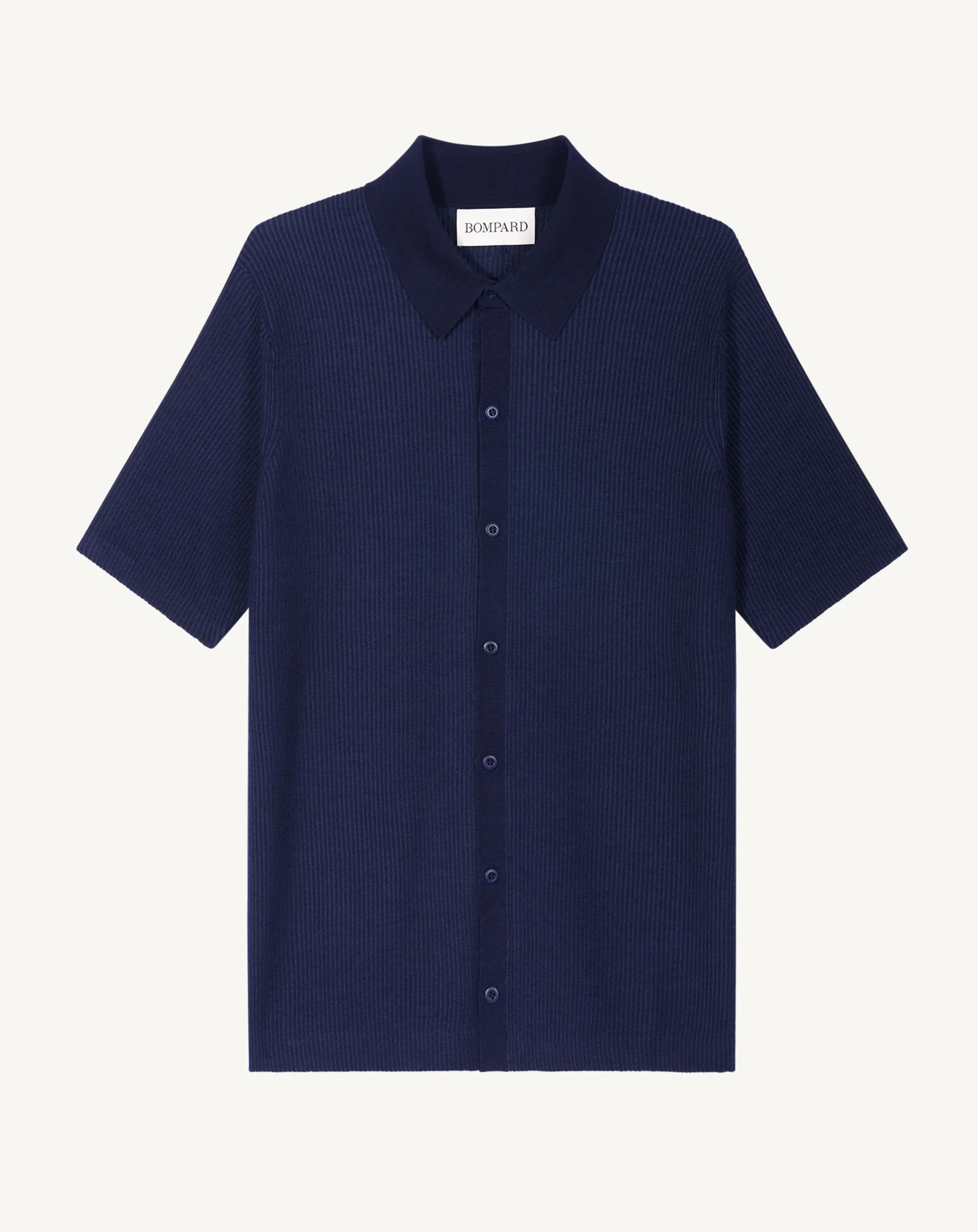 Polo à l’esprit chemise, rehaussé d’un col raffiné et d’un subtil effet micro rayures sur l’encolure. Élégance discrète et allure contemporaine.