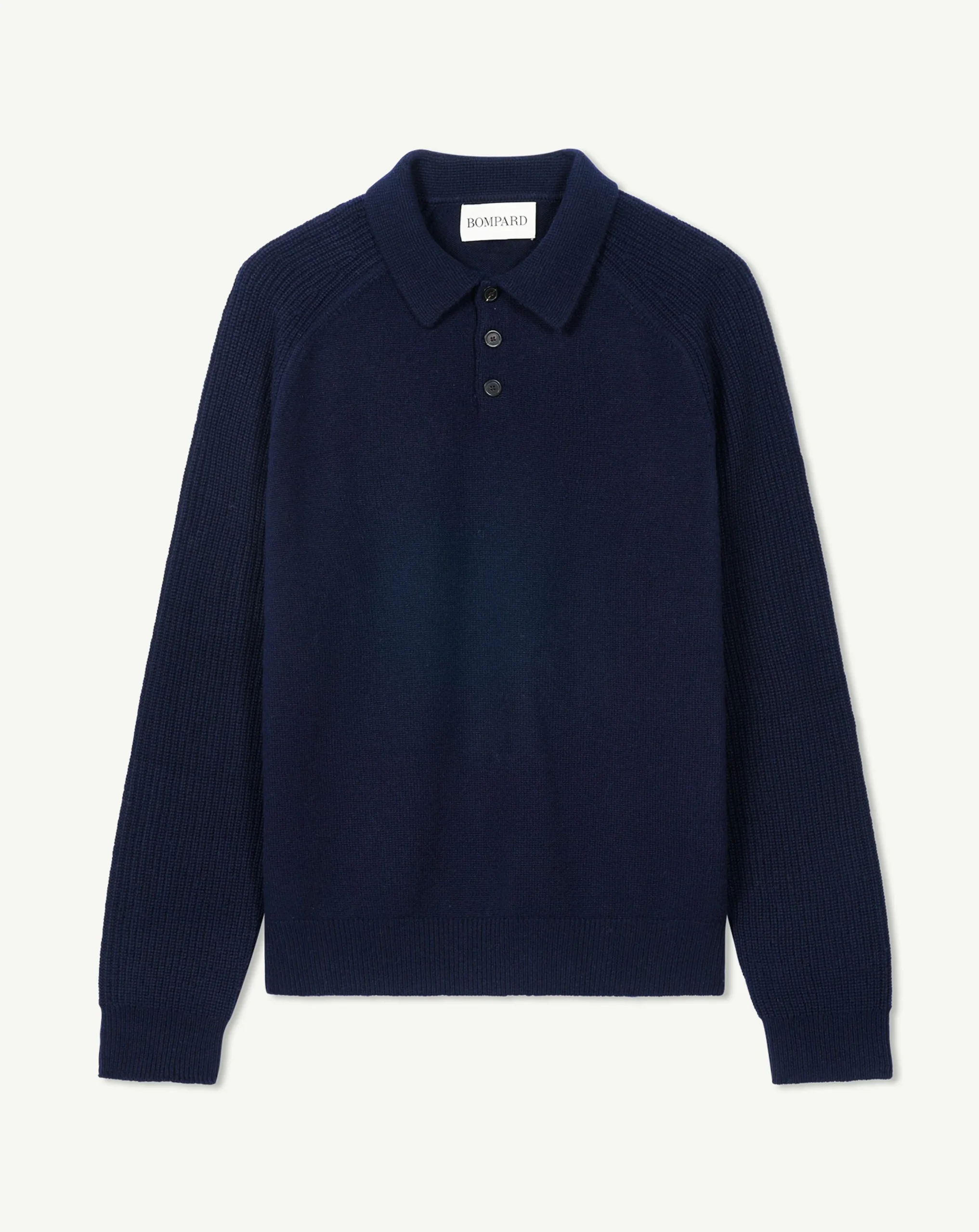 Polo à manches longues en cachemire et soie. Coupe droite intemporelle et emmanchures raglan pour un confort souple et une allure casual chic.