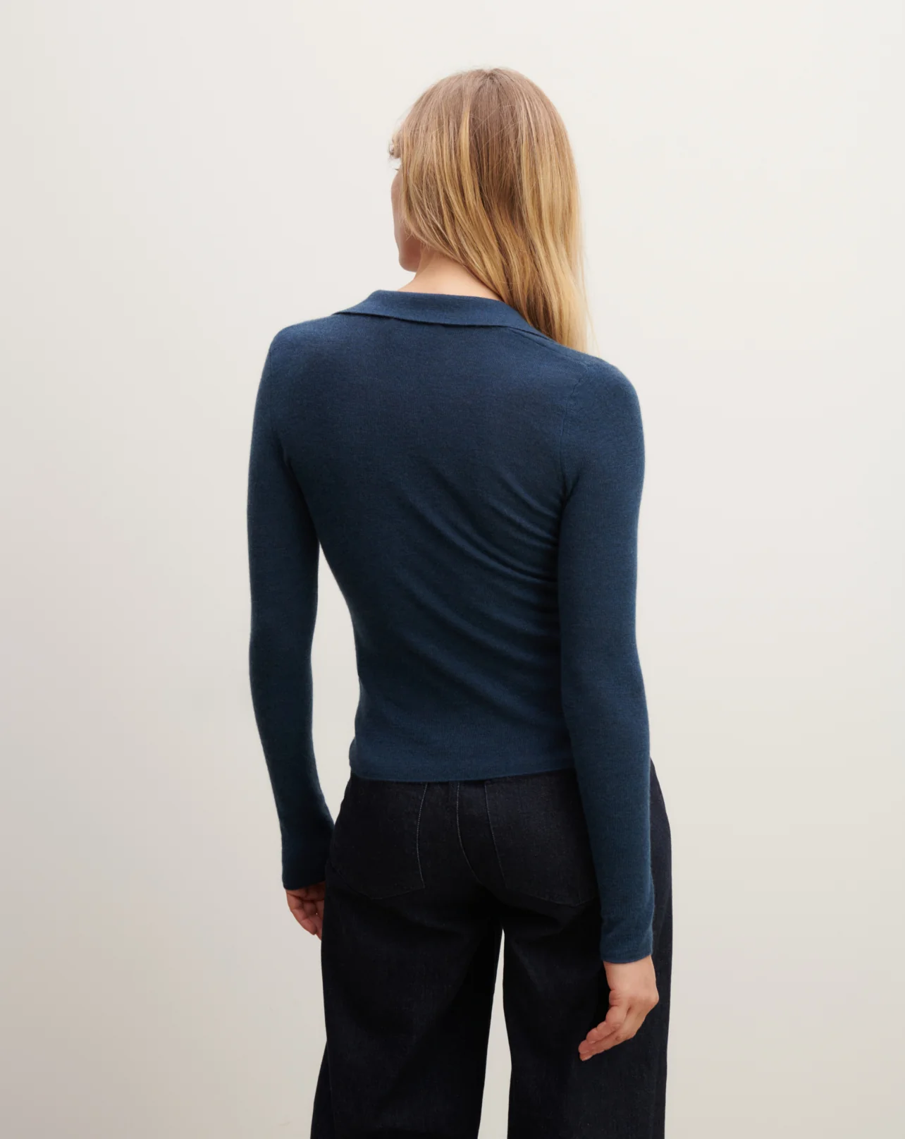 Polo en maille ultrafine pour femme. -Coupe ajustée -Taillé long-Emmanchure droite-Manches longues