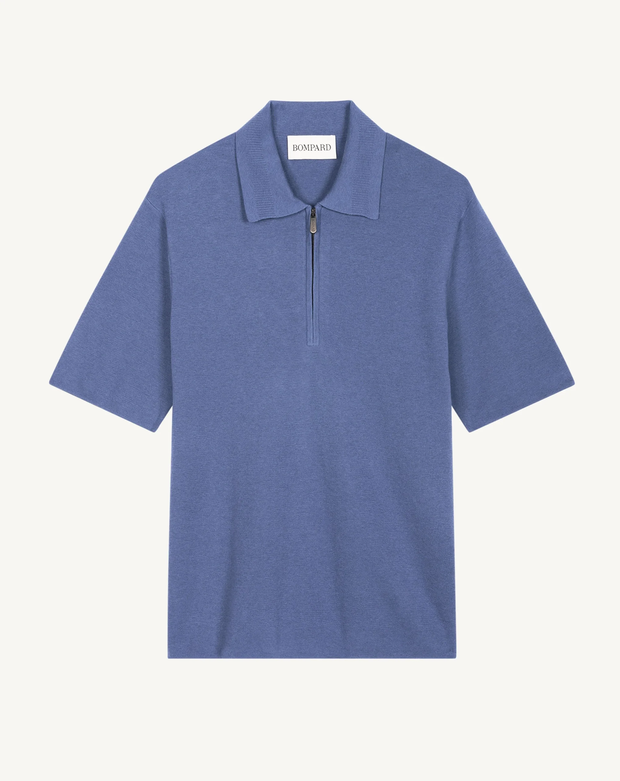 Polo à col zippé, alliance de modernité et minimalisme, confectionné en maille milano au tombé structuré. -Polo à col zippé homme-Emmanchure droite, manches courtes-Coupe droite, longueur classique-Tricotage milano, dense et élégant-Finitions minimalistes sans bords rapportés aux manches et à la base