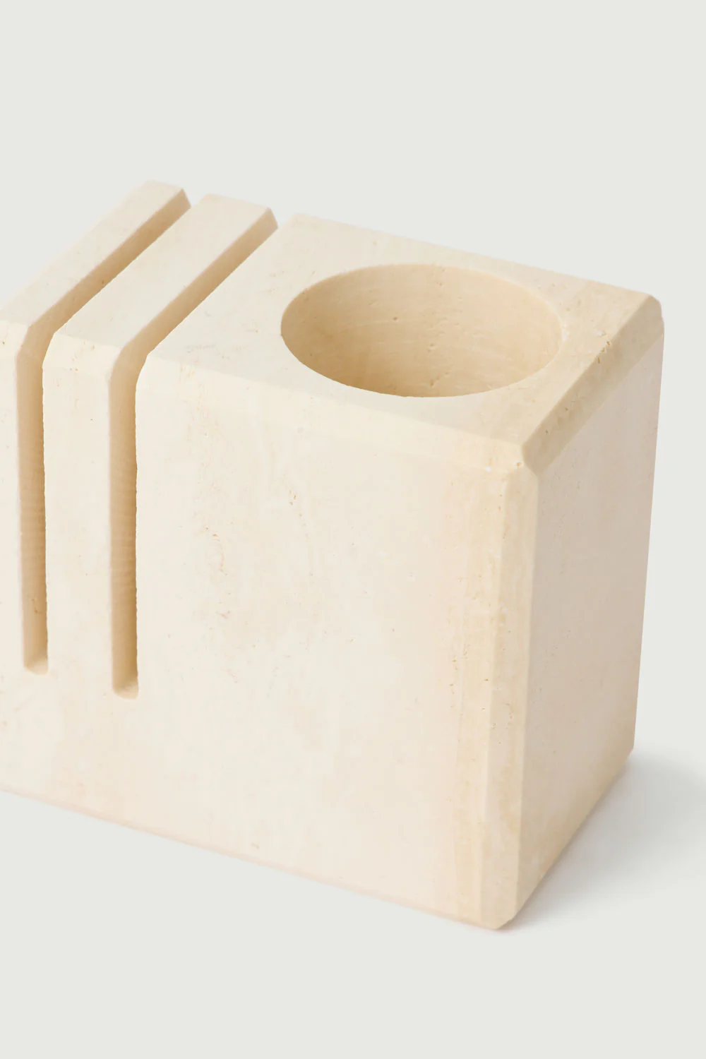 – Porte-stylos en travertin– Couleur : beige – Pays d’origine : Italie – Période : 1970– Bon état : peut présenter des traces minimes d’utilisation et/ou de légères restaurations– Dimensions : hauteur 10,5cm ; longueur 11,5cm ; profondeur 7cm
