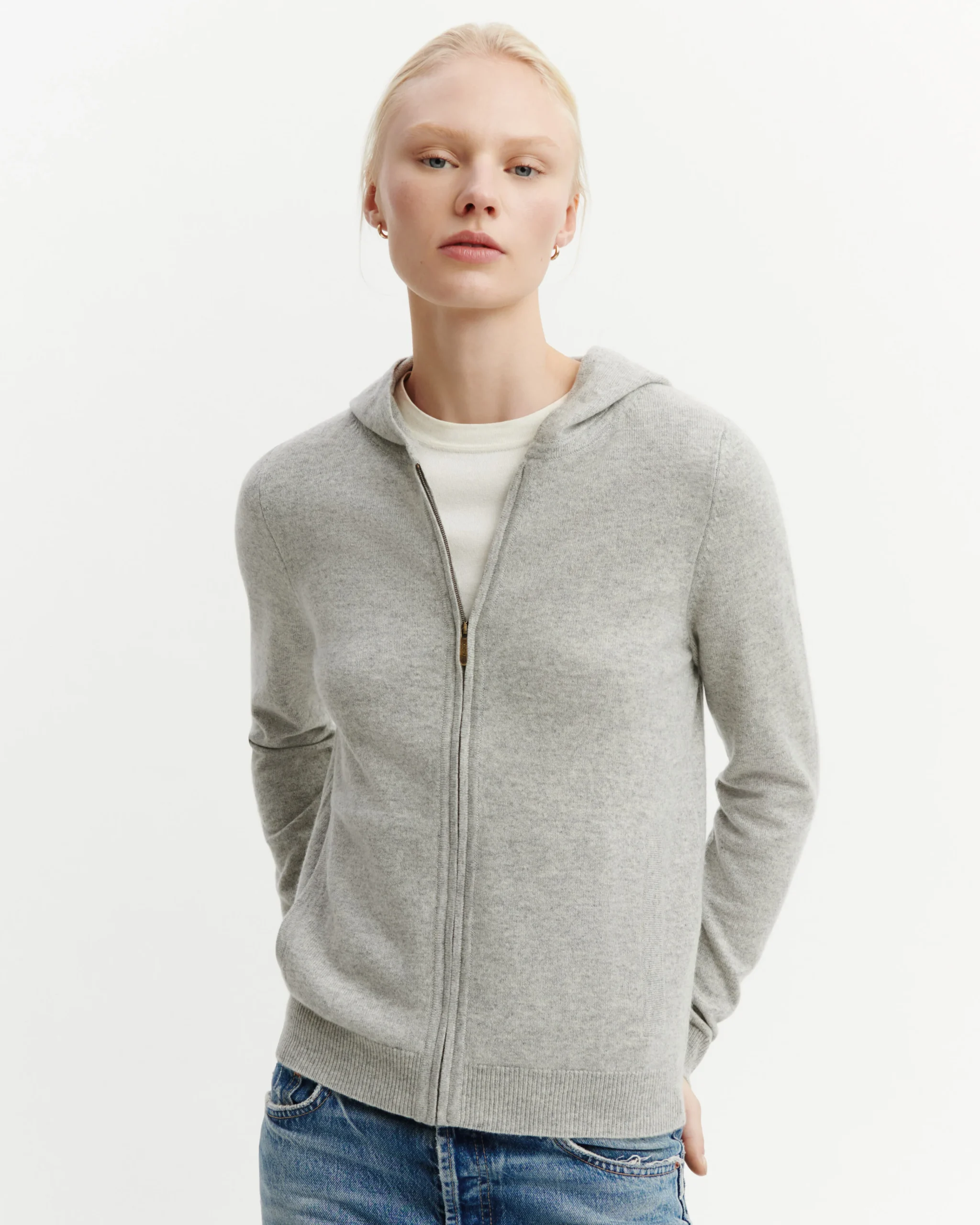 Parfait équilibre entre sportswear et raffinement, le hoodie en cachemire est un allié du quotidien. -Ouverture zippée-Coupe cintrée-Manches longues -2 poches plaquées avant