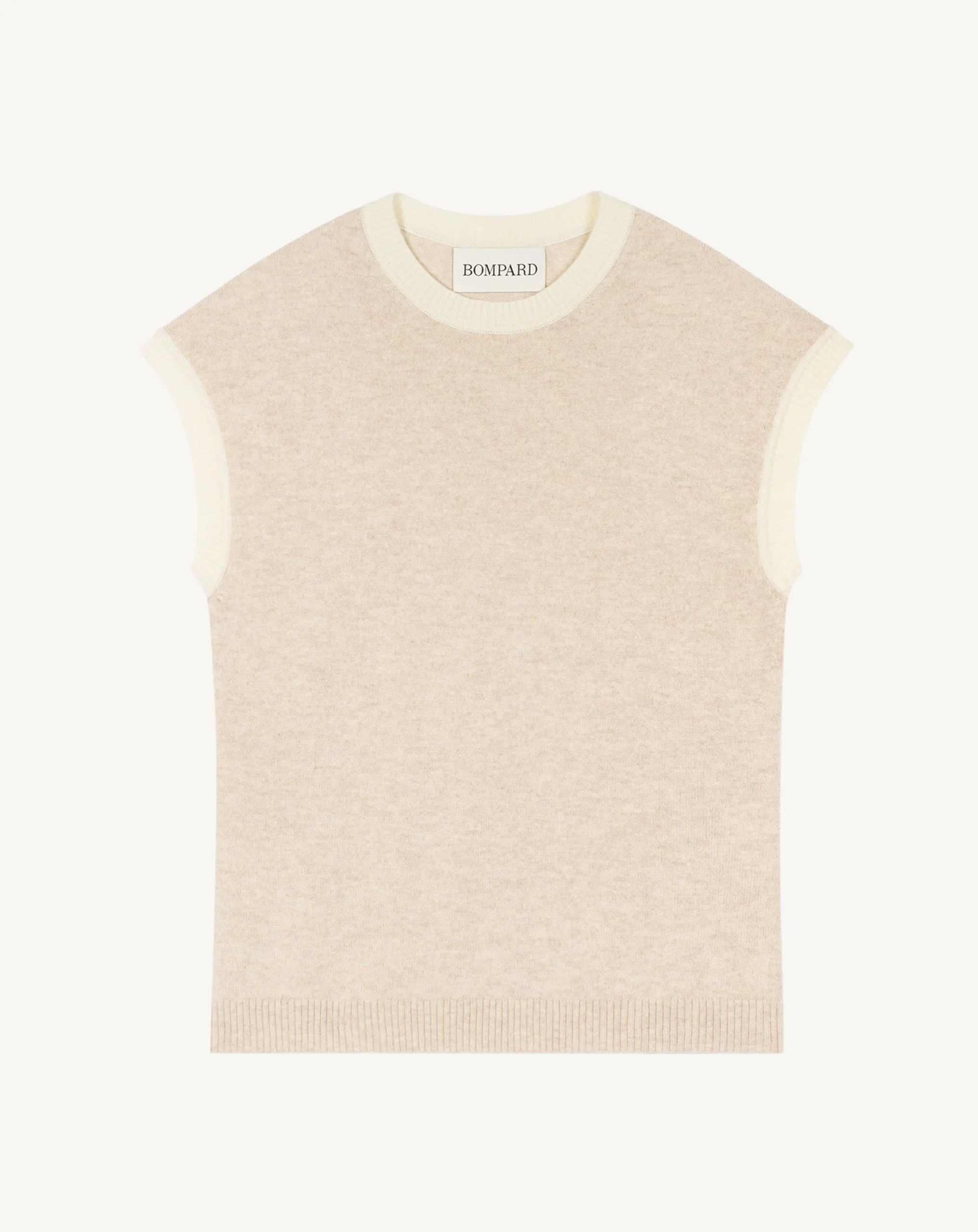 Top en cachemire à manches courtes orné d’un détail contrasté. Coupe droite intemporelle.