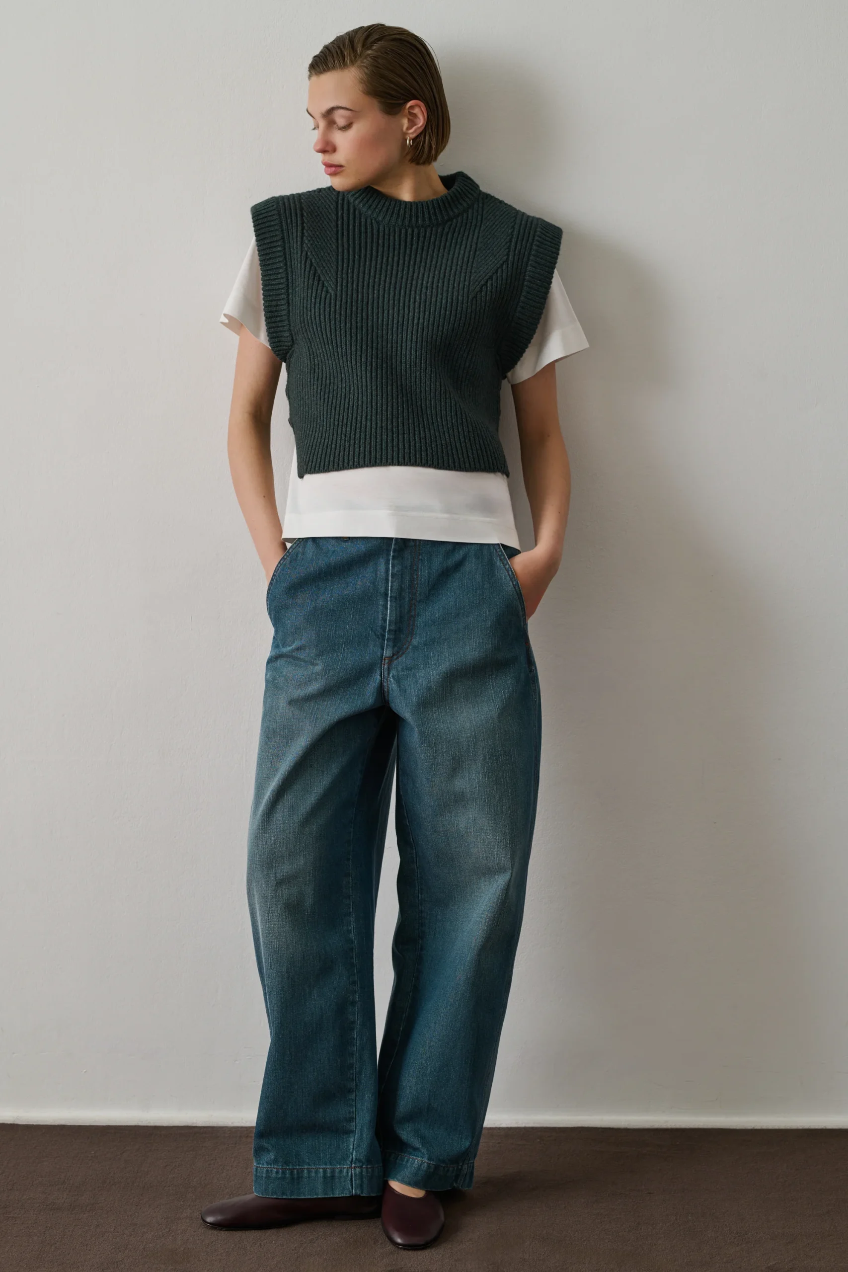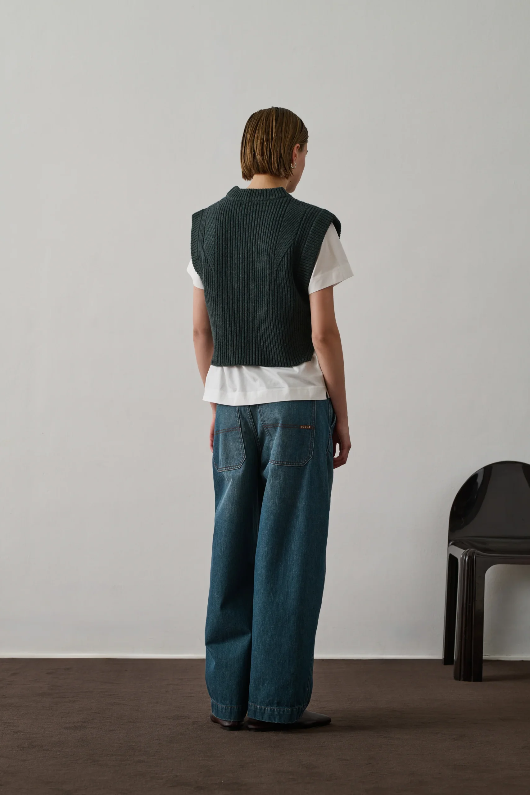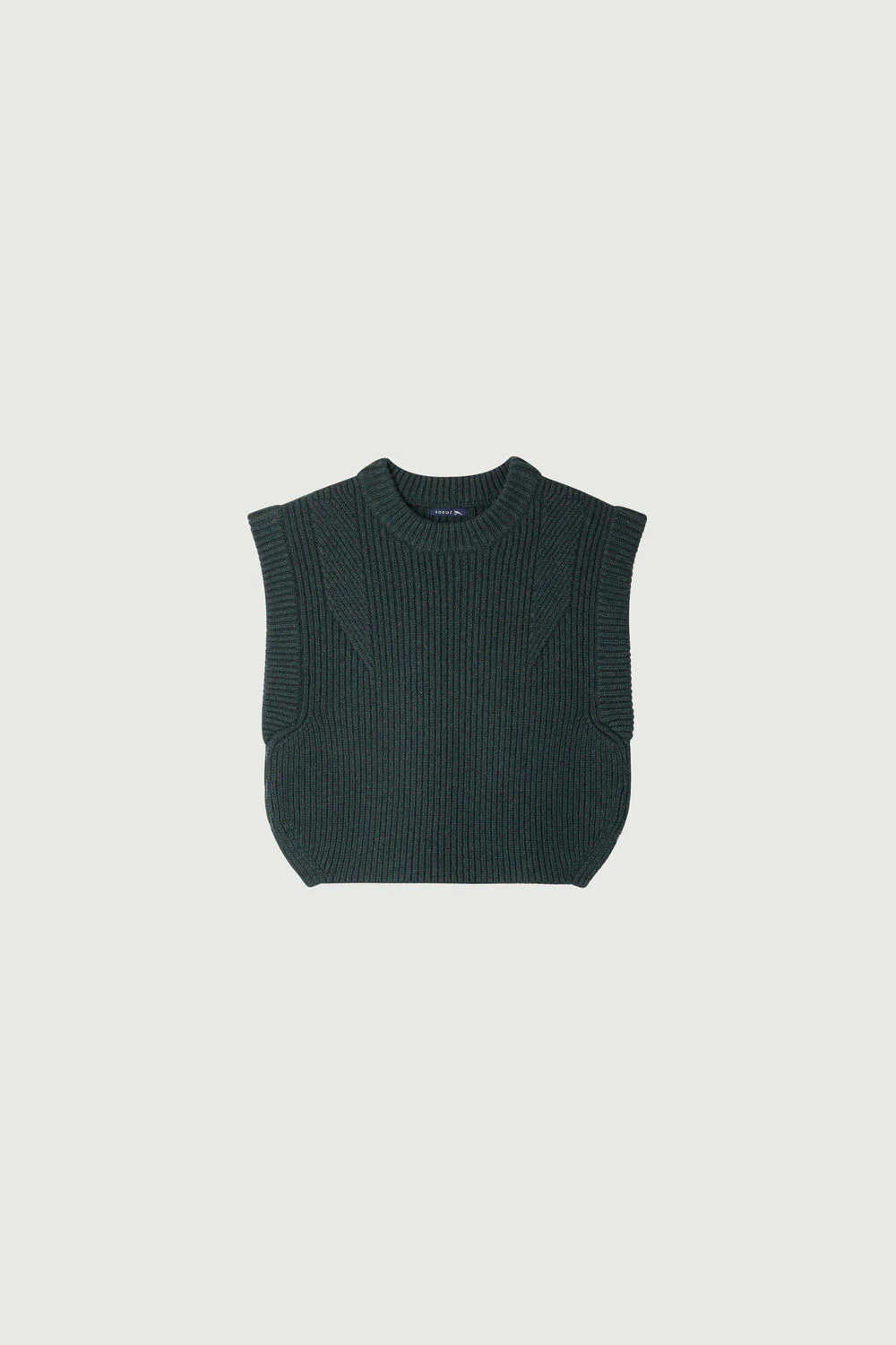 ALKY est un pull sans manche en laine épaisse, dense et compacte. Il est ouvert sur les côtés. À superposer à l’infini pour twister n’importe quelle tenue. Pratique, il se glisse sous une veste ou un manteau pour réchauffer sans contraindre le mouvement des bras.
