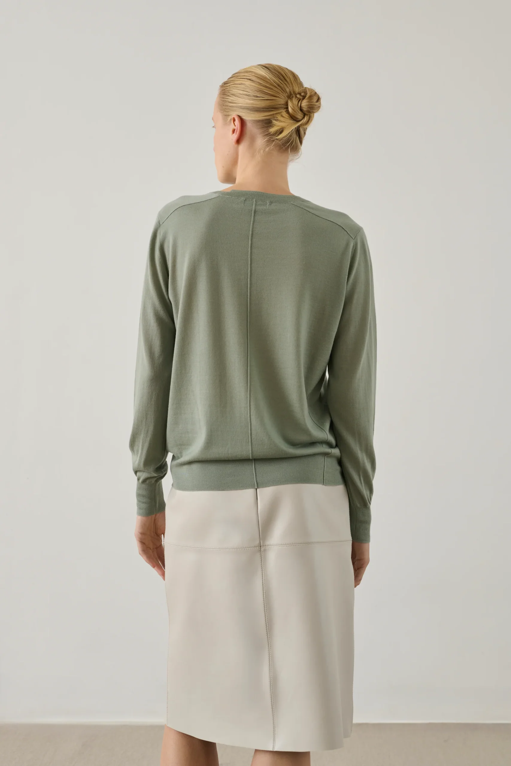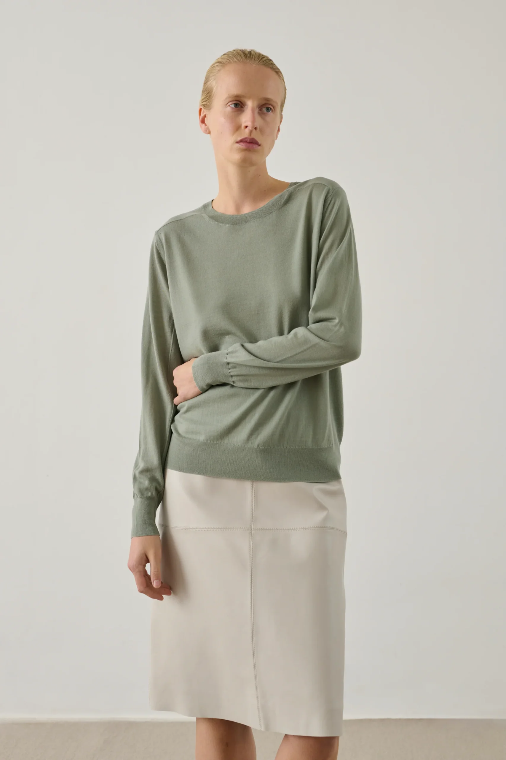 – Coupe droite – Manches longues – Col rond – Finition bord côtes bas de corps et poignets – Fine jauge