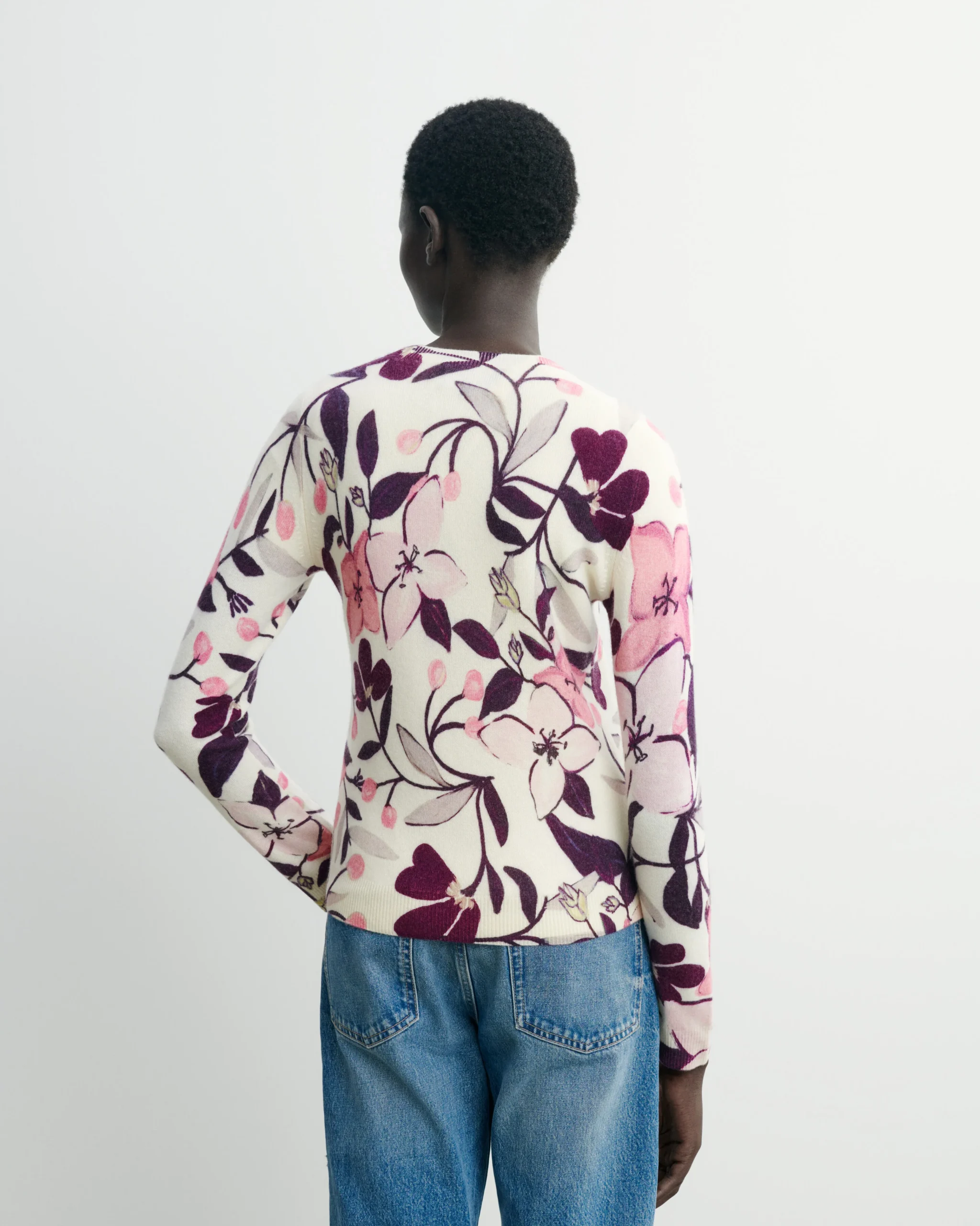 Pull à imprimé floral. Modèle en pur cachemire, muni d’un col rond et d’une coupe droite intemporelle.
