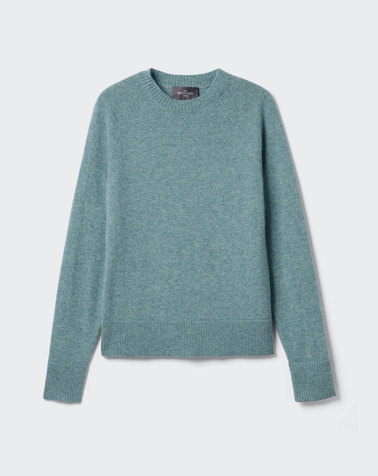Pull col rond à manches raglan et coupe près du corps. Maille 100% cachemire.