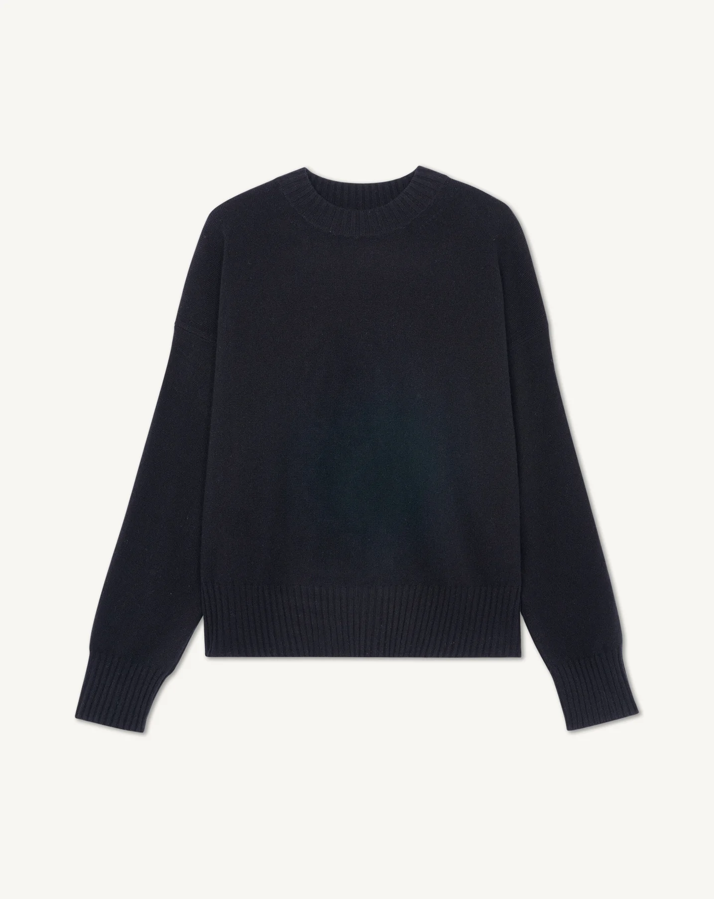 Pull à coupe ample en maille de cachemire et soie. Modèle à encolure ronde, manches longues et coupe raccourcie.