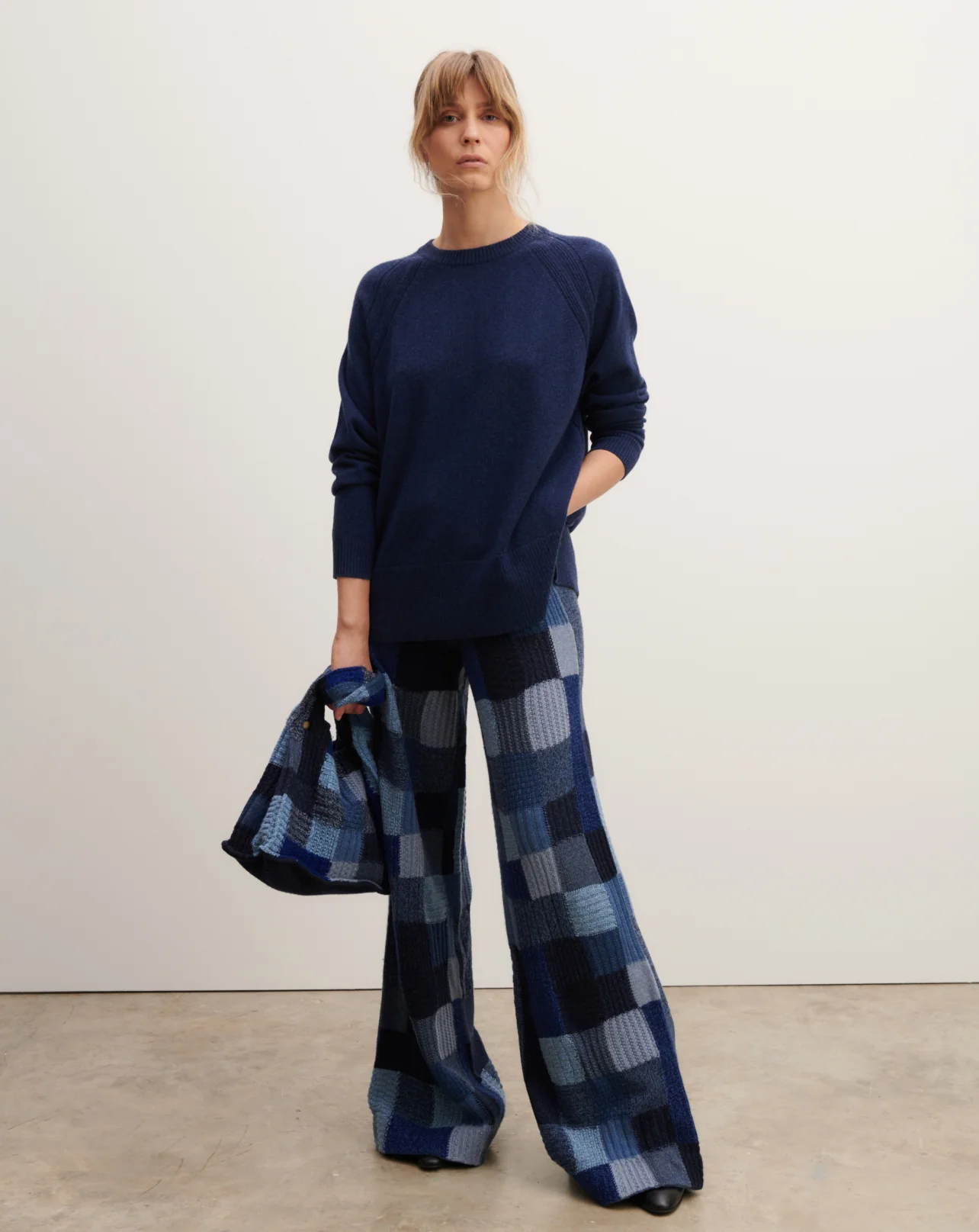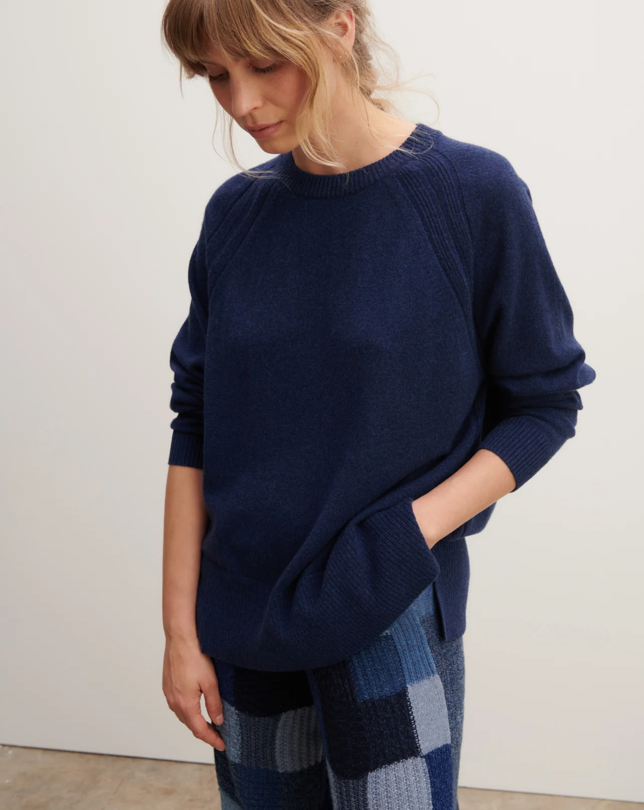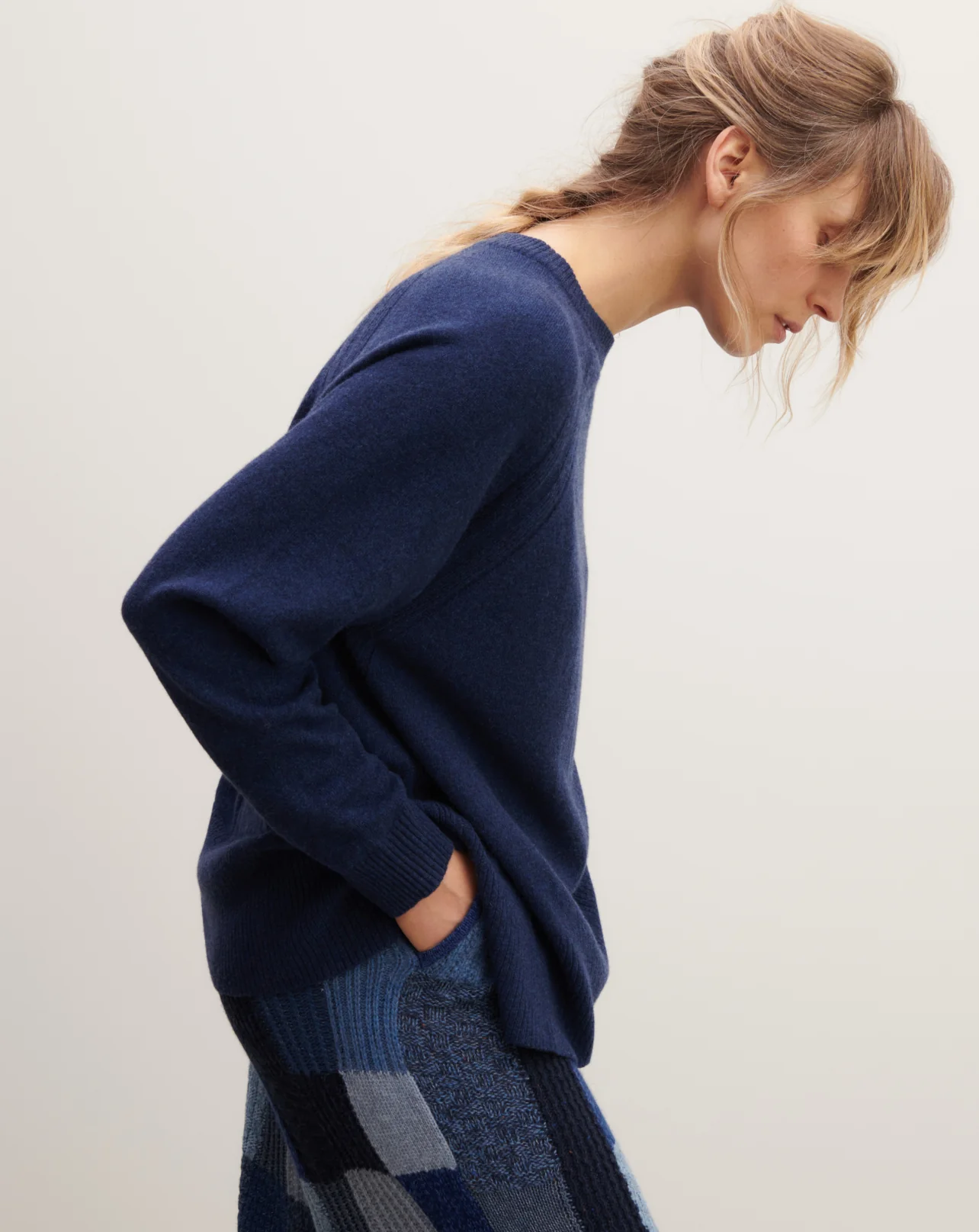 Pull oversize en cachemire. Modèle à col rond, emmanchure raglan et détail en point chevron.