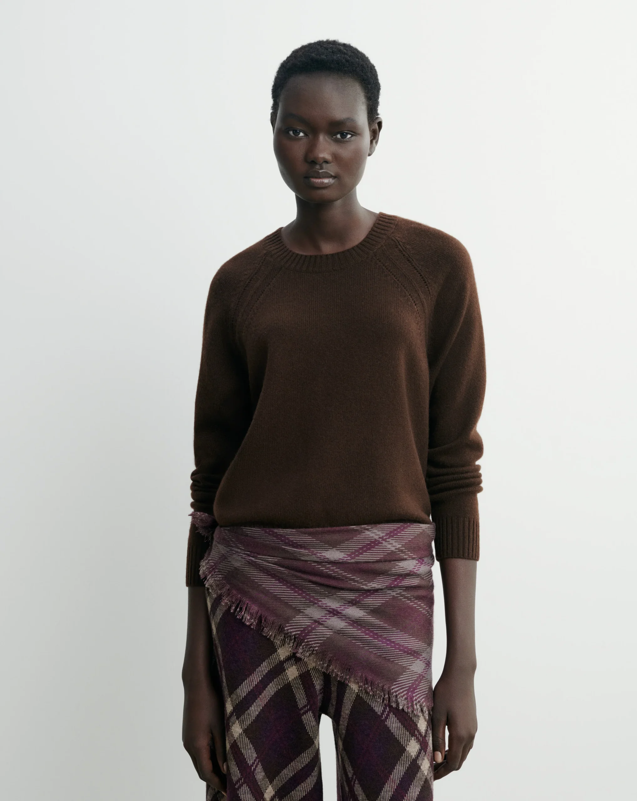 Ce ras de cou en cachemire 4 fils séduit par sa ligne enveloppante et son travail de pointelle aux emmanchures. -Pull ras de cou pour femme -Coupe droite ample -Longueur classique -Emmanchure raglan -Manches longues -Ligne de tricot pointelle aux emmanchures