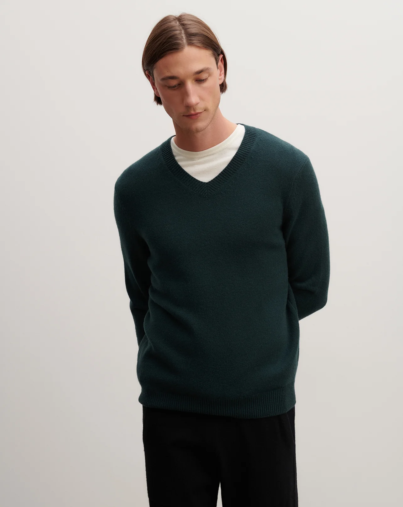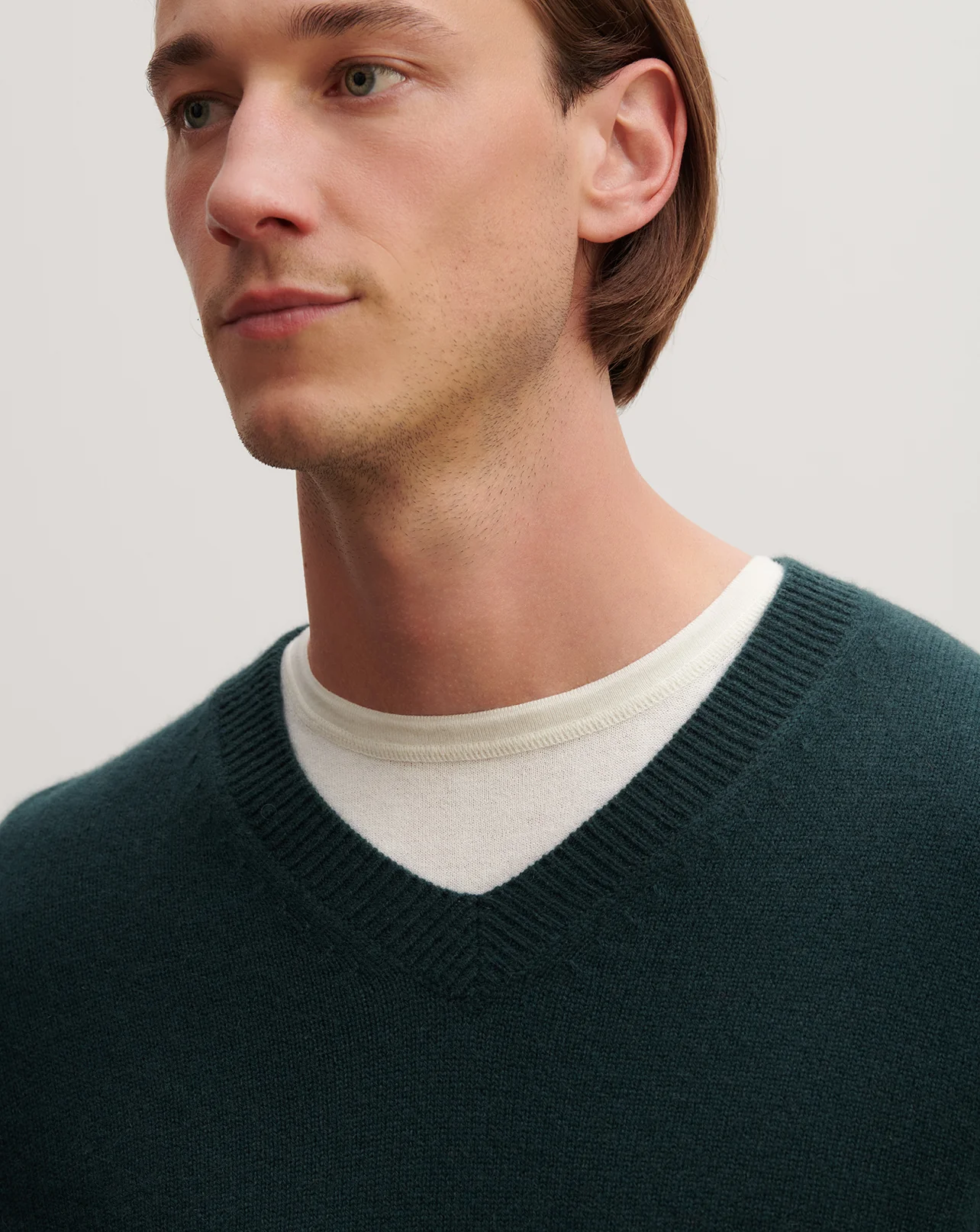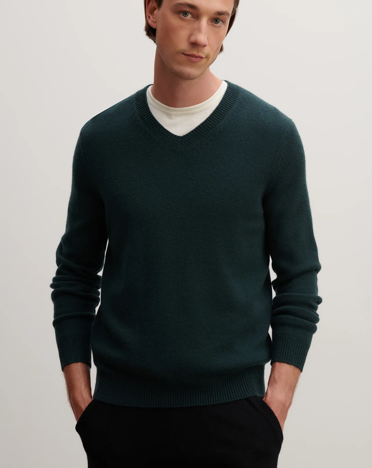 Pull V homme en cachemire 4 fils et coupe intemporelle.