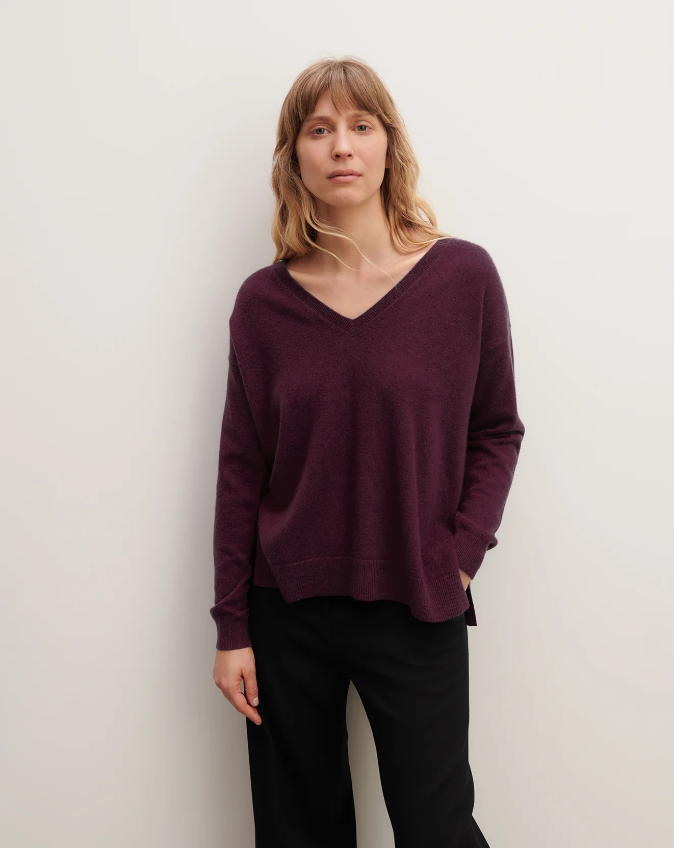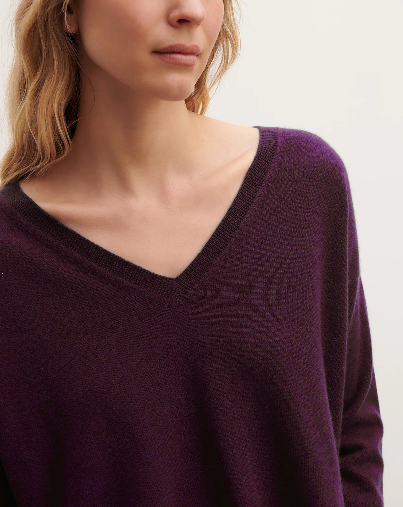 Pull V ample en pur cachemire. Coupe fluide et ample.