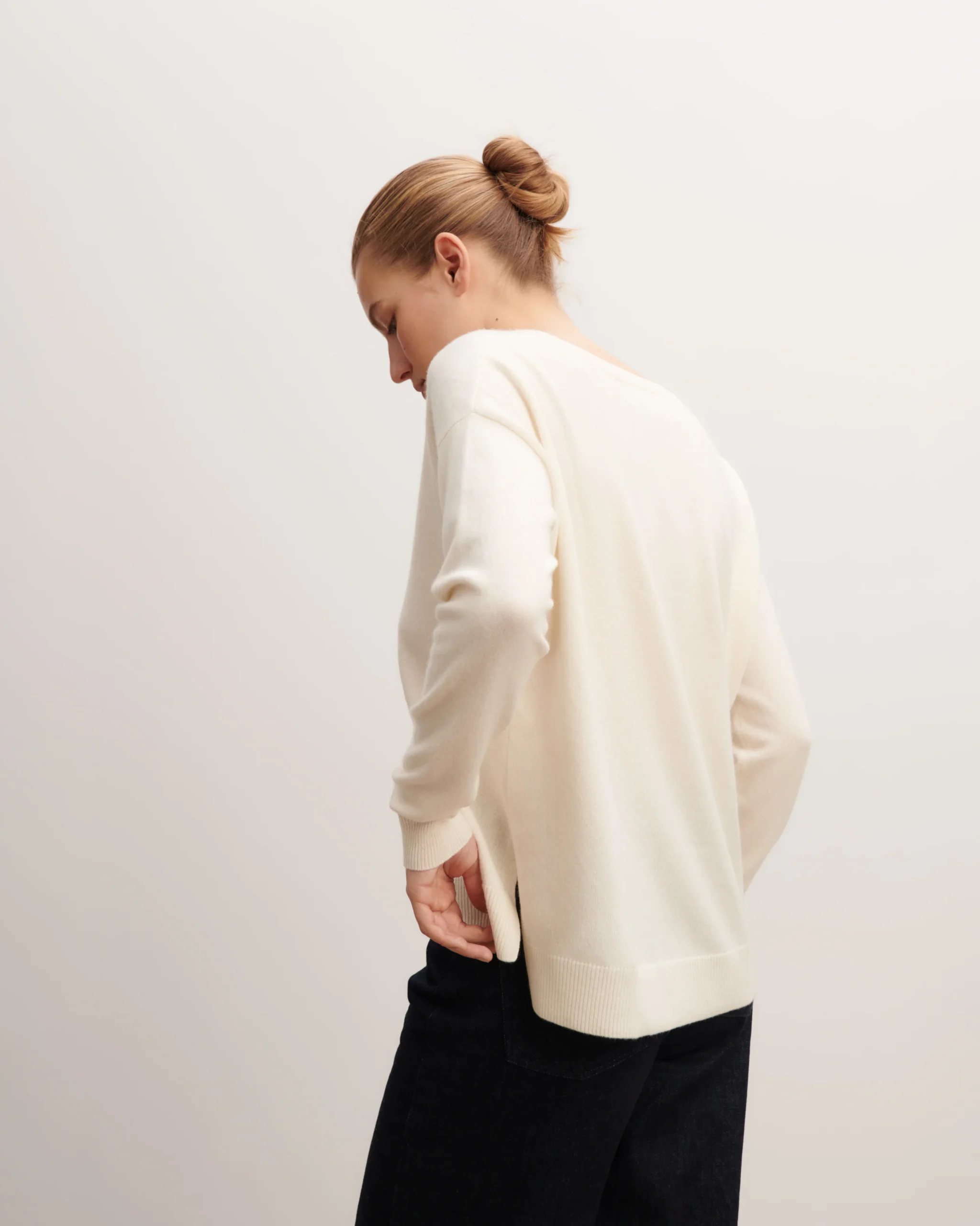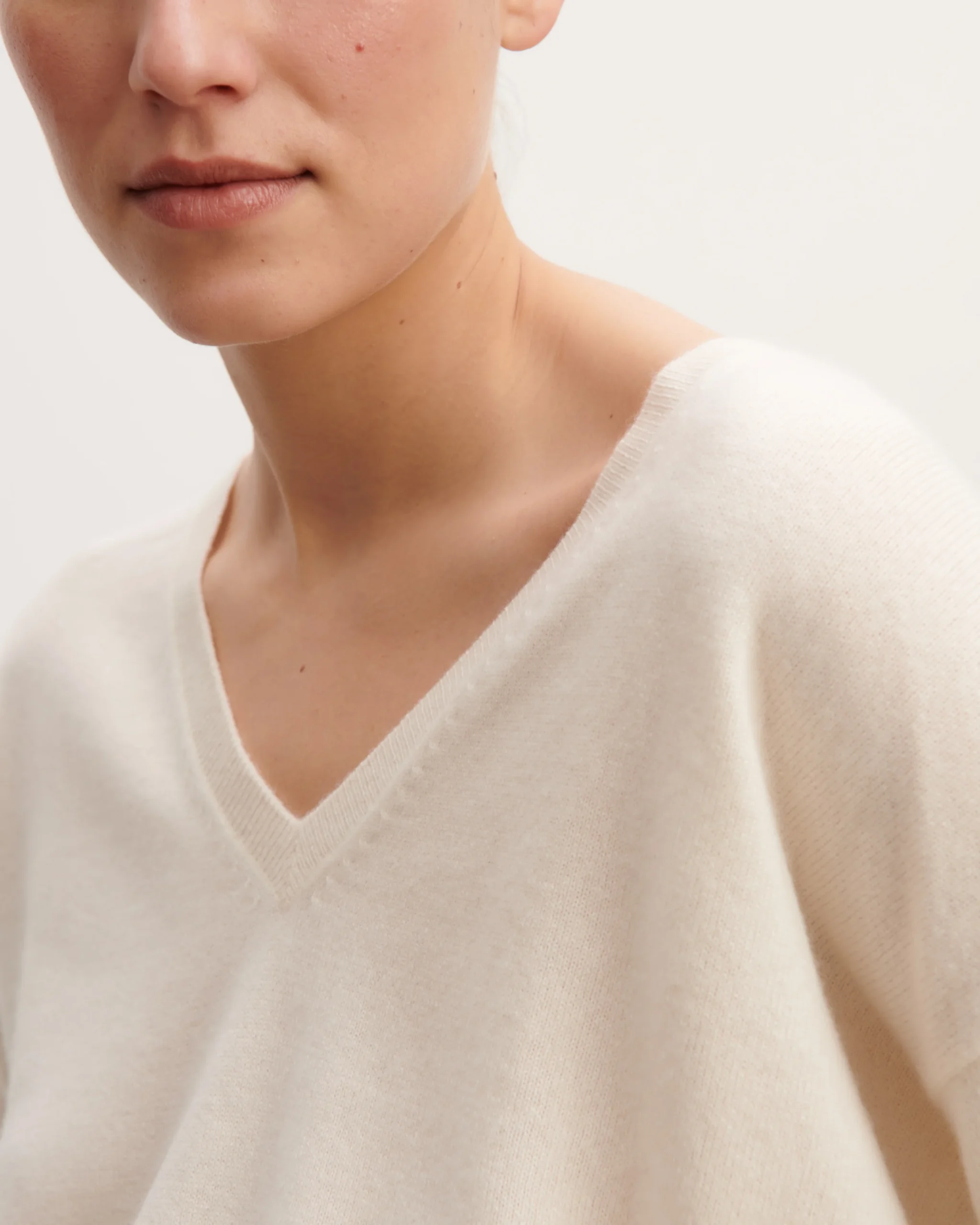 Pull V ample en pur cachemire. Coupe fluide et ample.