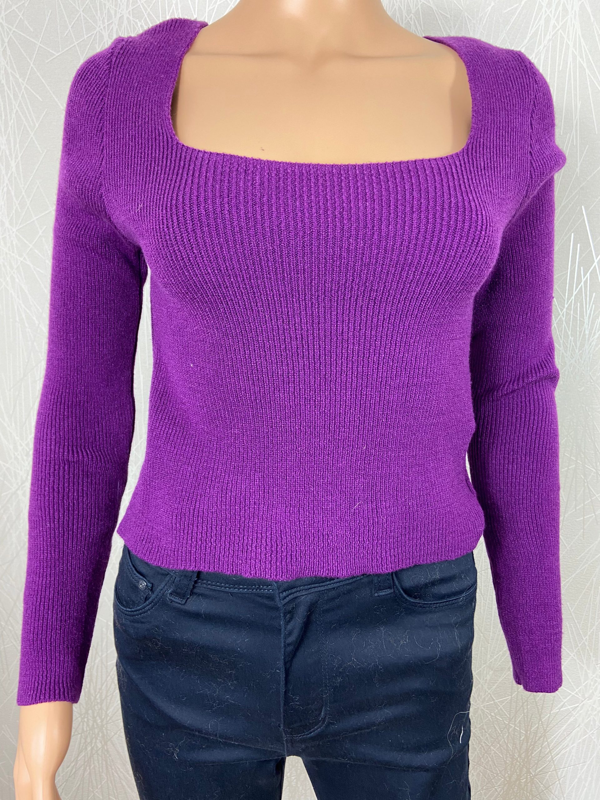 Pull court violet col carré Made In Italy