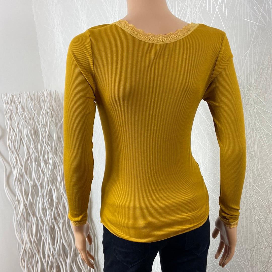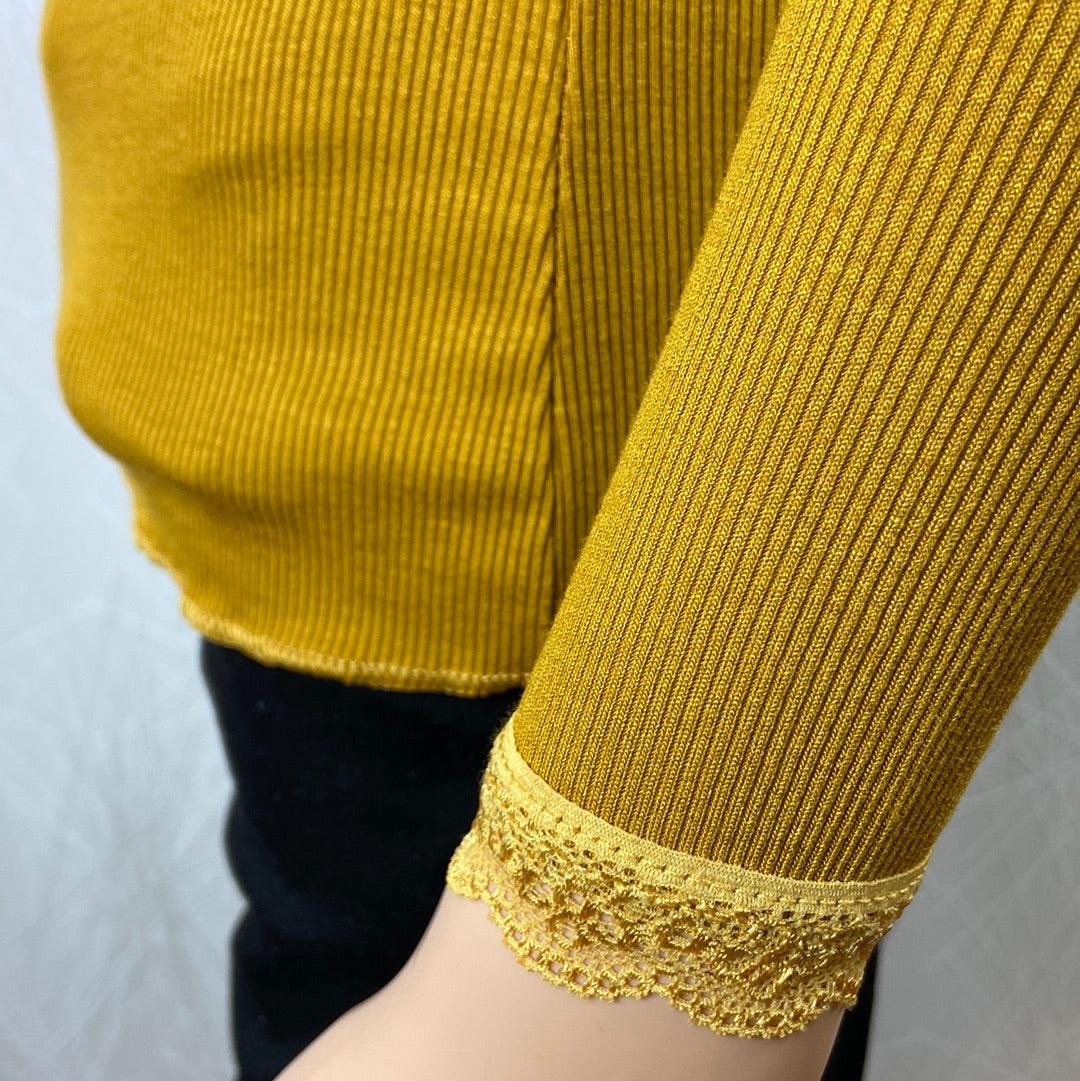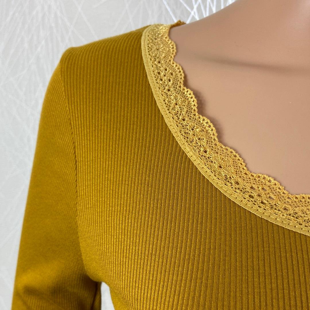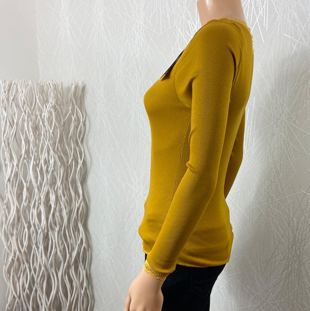 Pull fin moutarde près du corps dentelle Made In Italy