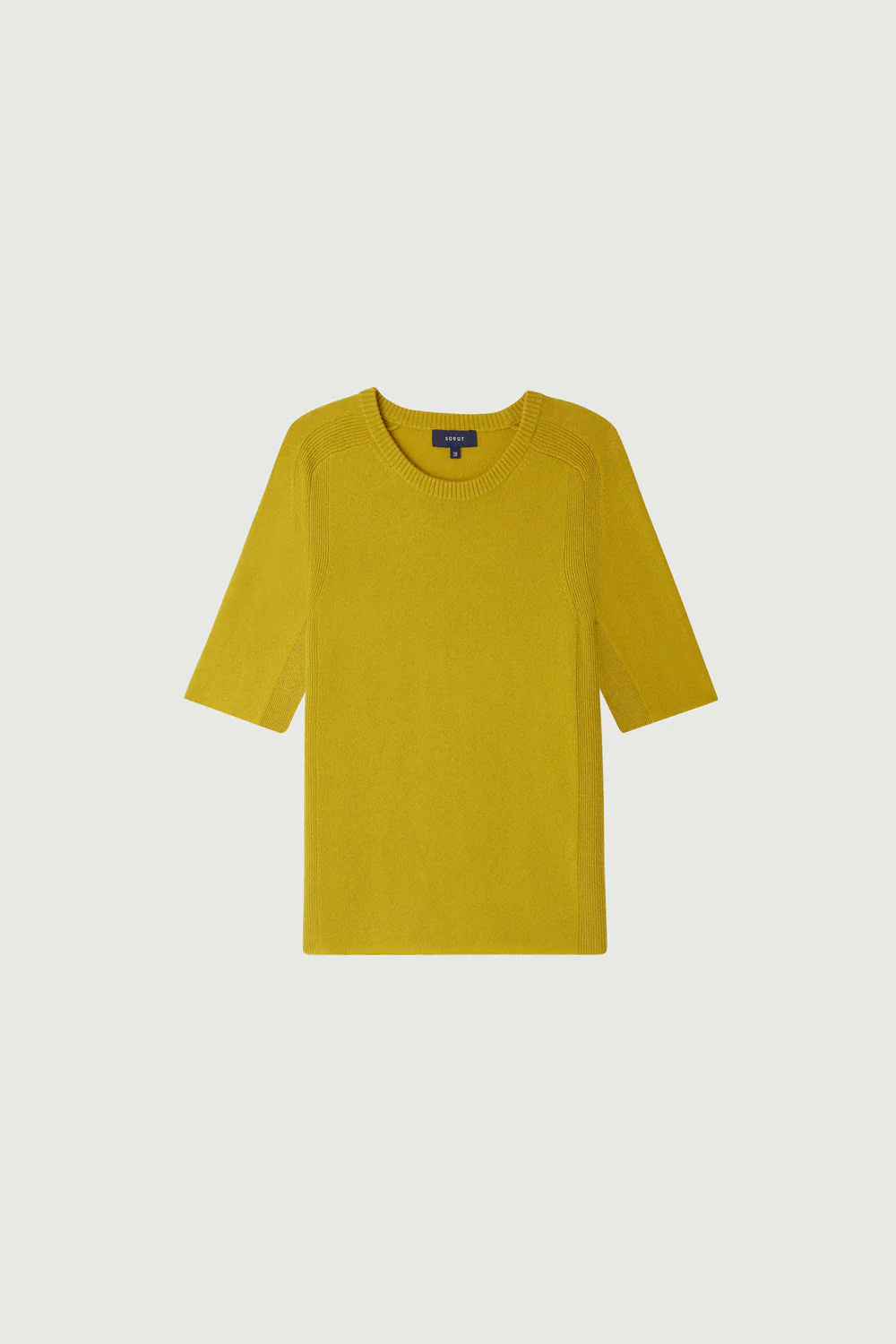 GALANGA est un pull en cachemire fin (deux fils). Sa coupe droite est soulignée par des finitions côtelées qui courent le long des manches pour apporter une touche de fantaisie. Son coloris singulier, développé exclusivement par Soeur, en fait une pièce d’exception qui réchauffera avec lumière n’importe quelle tenue au coeur de l’hiver.