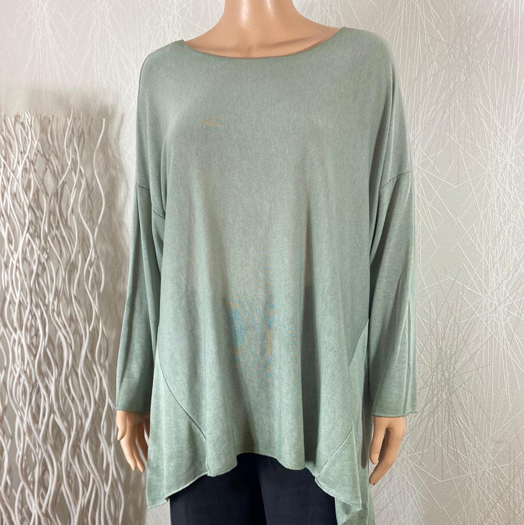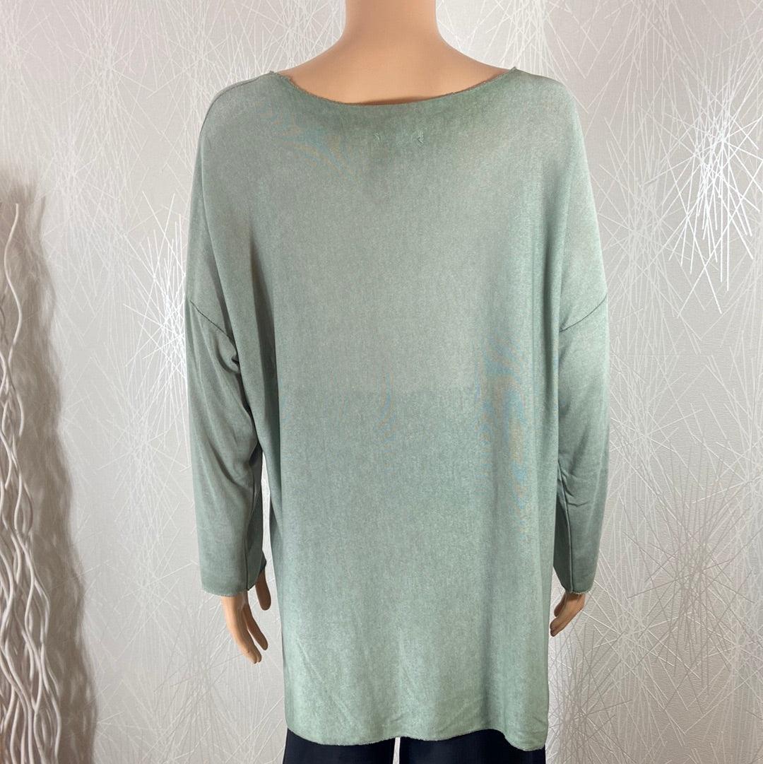 Manches longues, encolure bateau, maille fine et coupe ample.